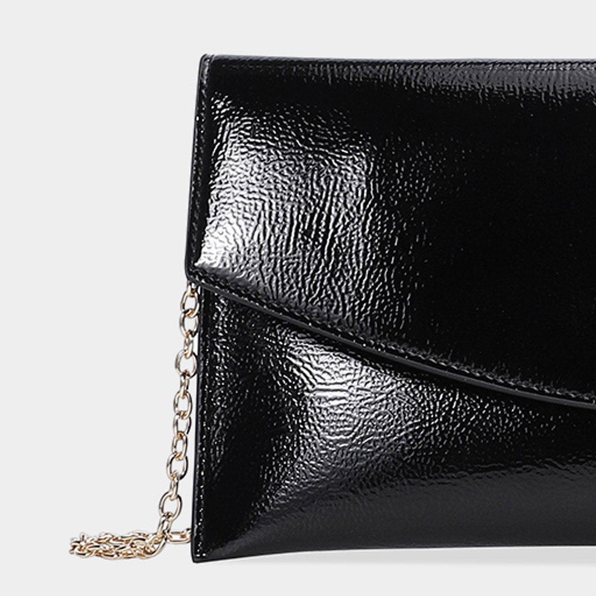 Coimbra handbag made in two different materials, patent leather and metallic pu, available in cava, silver, pink, green, black, ice and nude. You can carry it as a handbag or as a shoulder bag thanks to the chain inside. It has a zipped compartment. All its metallic details are in light gold.