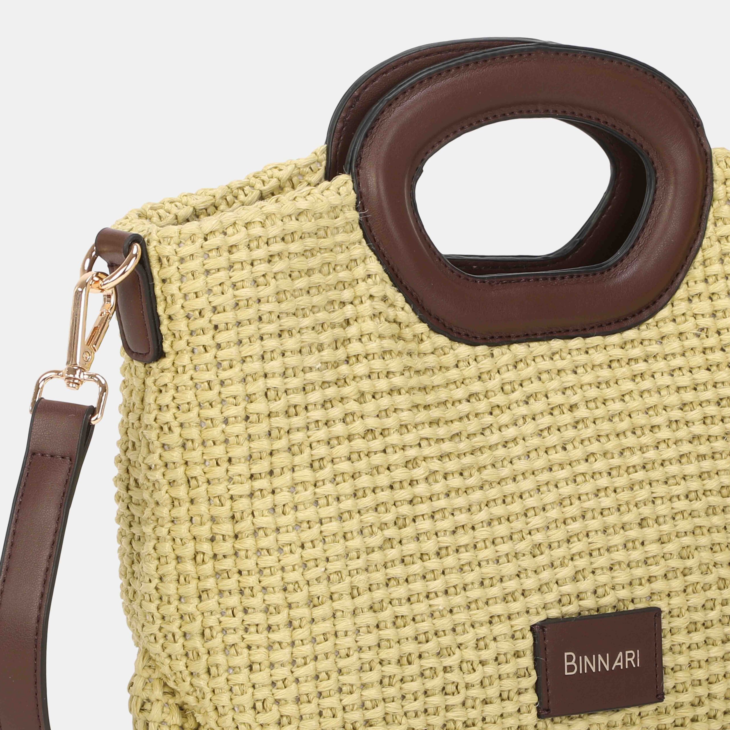 Small Brisa handbag available in 4 colors. It is made of raffia and high-quality pu details. A bag that can accompany you to all summer events. The metallic details are nickel-colored.