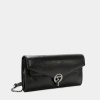 Large size Casilda wallet made of high quality pu. New Binnari closure. The interior can be accessed through the flap and has several pockets, one of which is zipped for added security. The metal details are in black nickel.