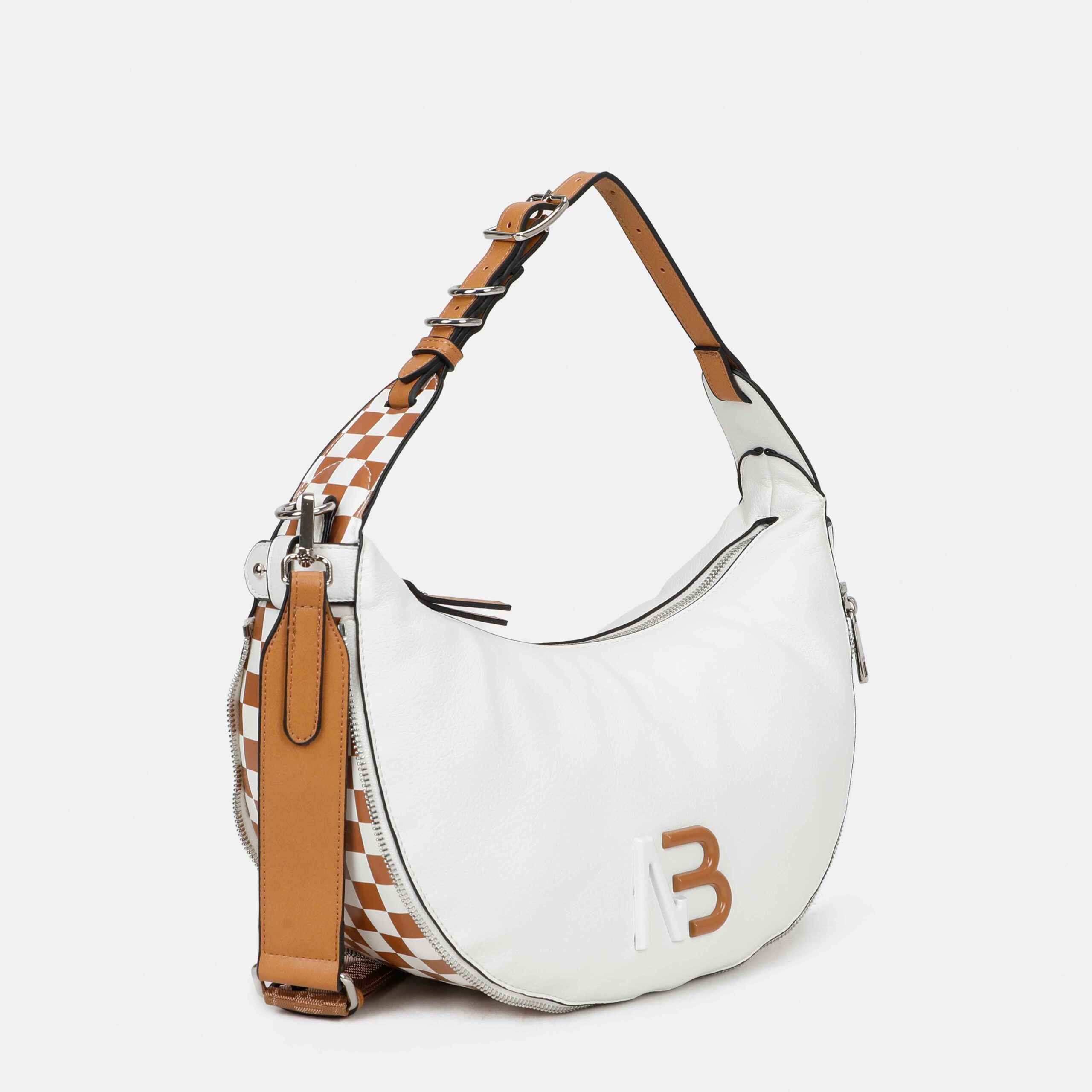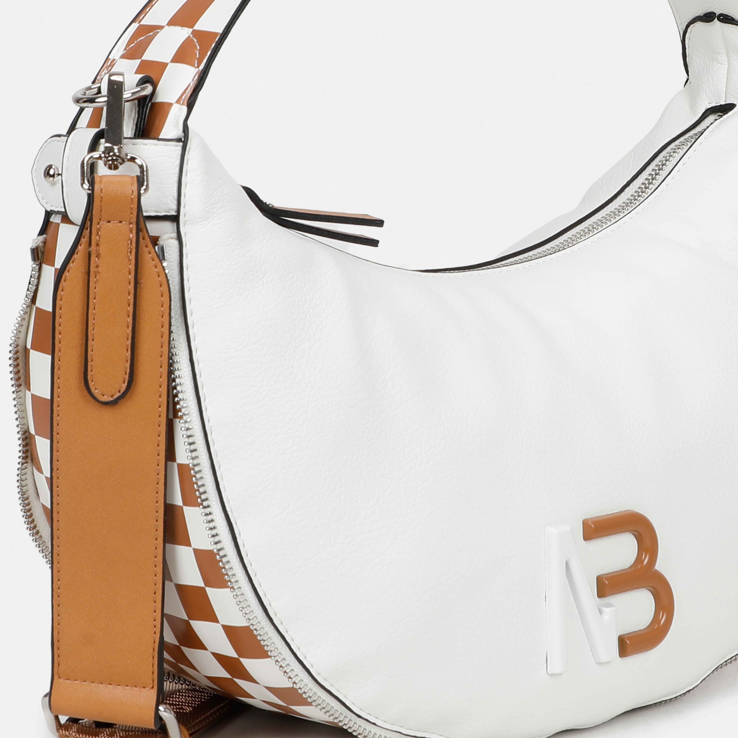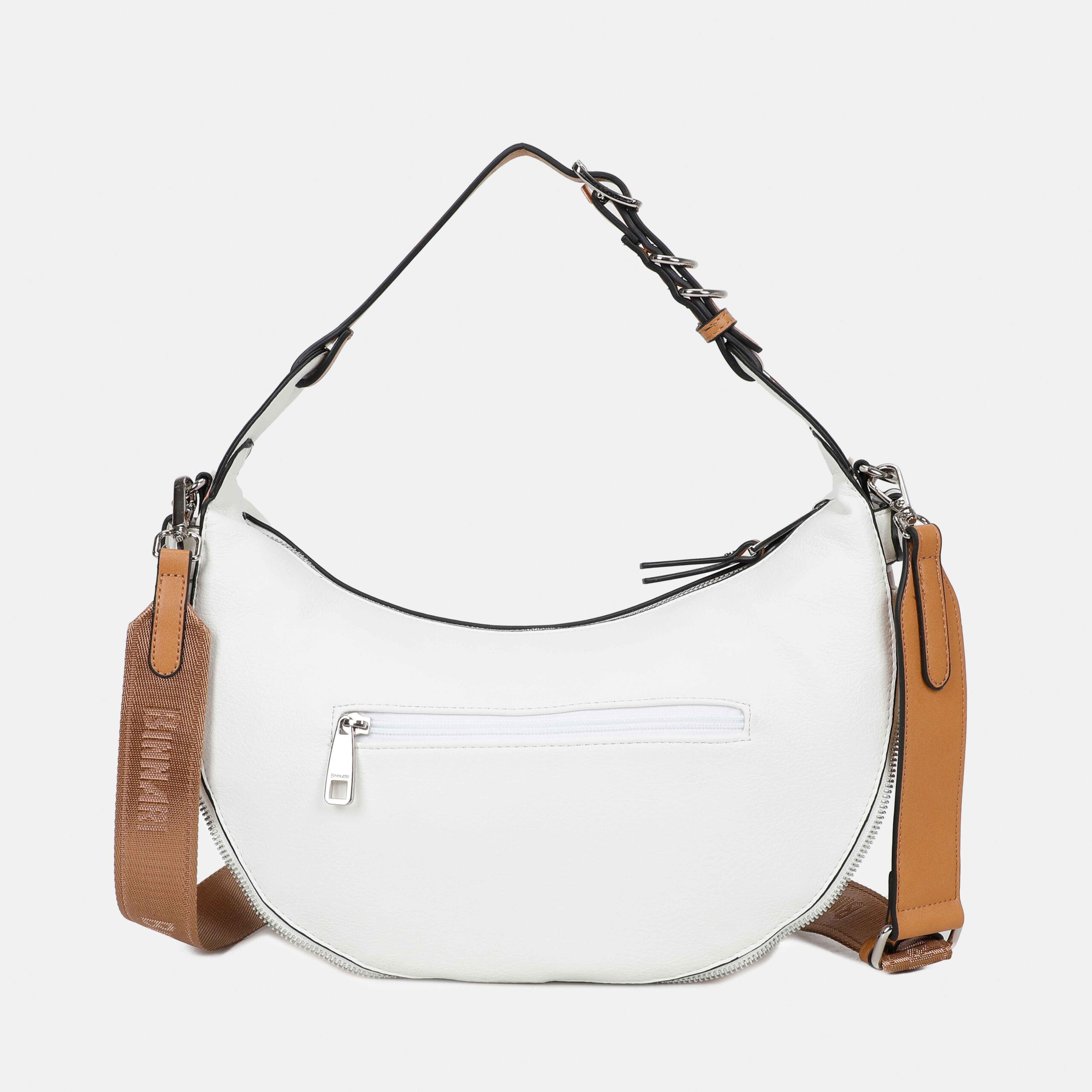 Ebro hobo bag in medium size. It is available in 4 colours. It has 2 compartments. Also, its handle is adjustable and the interior is accessed by means of a top zip. Inside there are 3 pockets, one of them with zip. The metallic details are nickel coloured.
