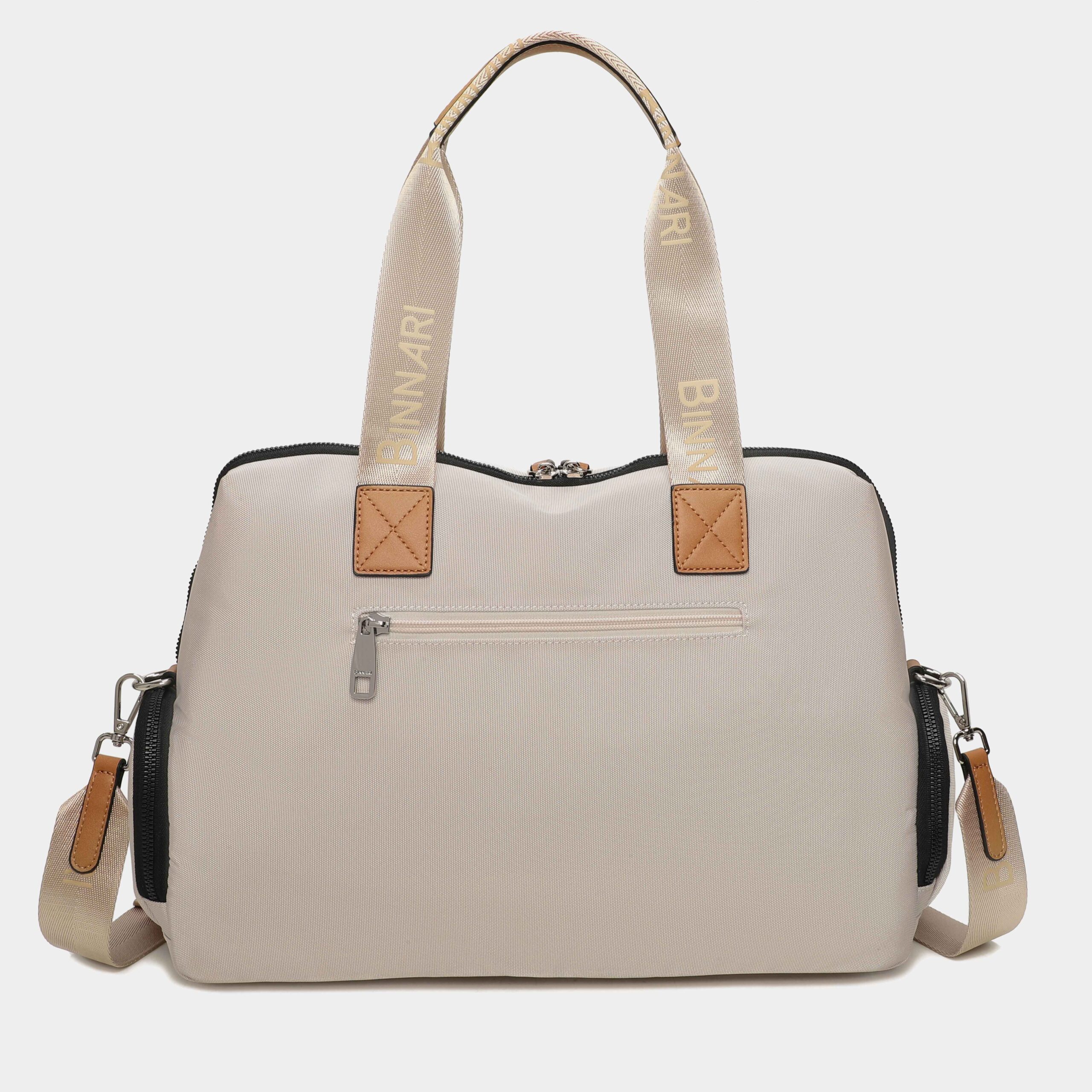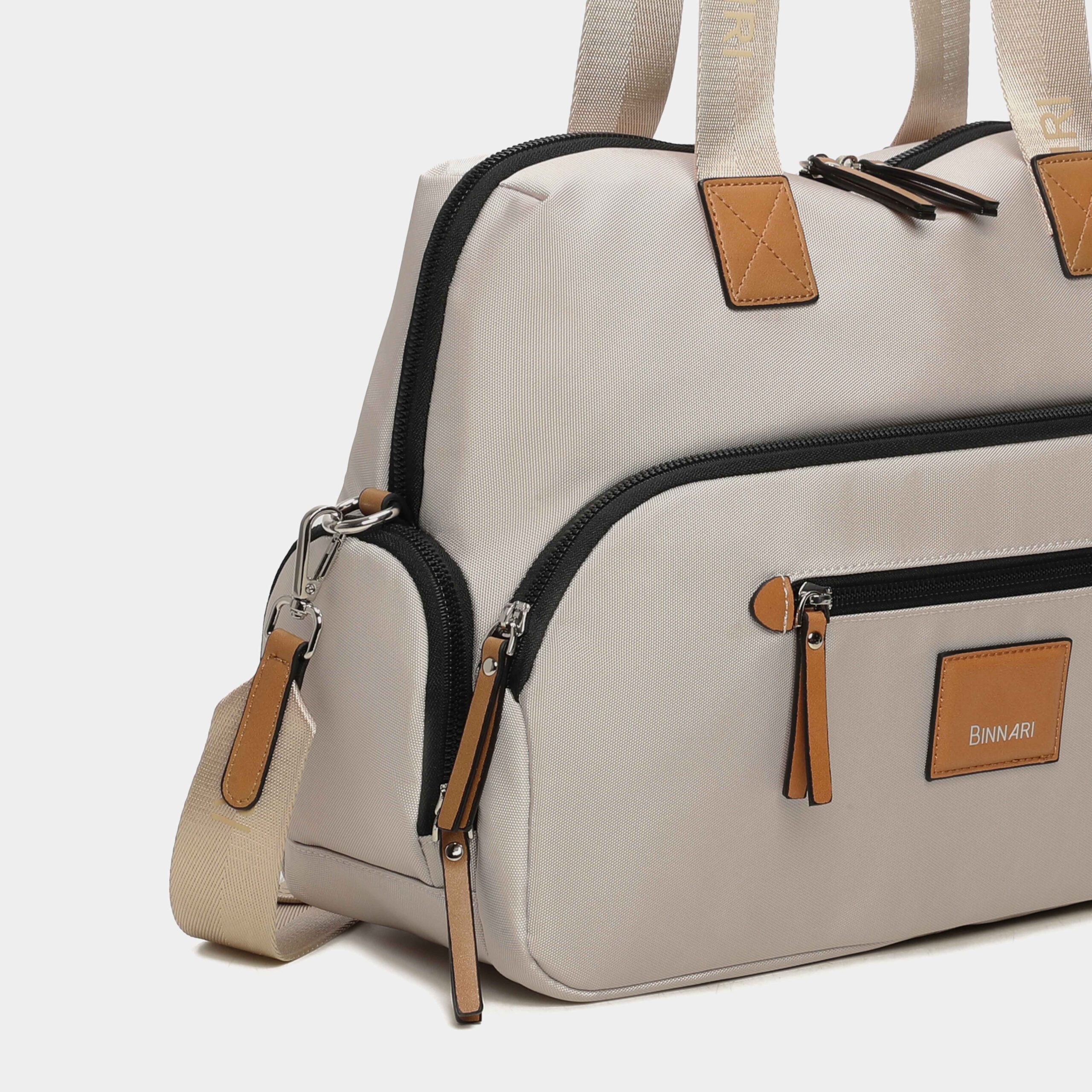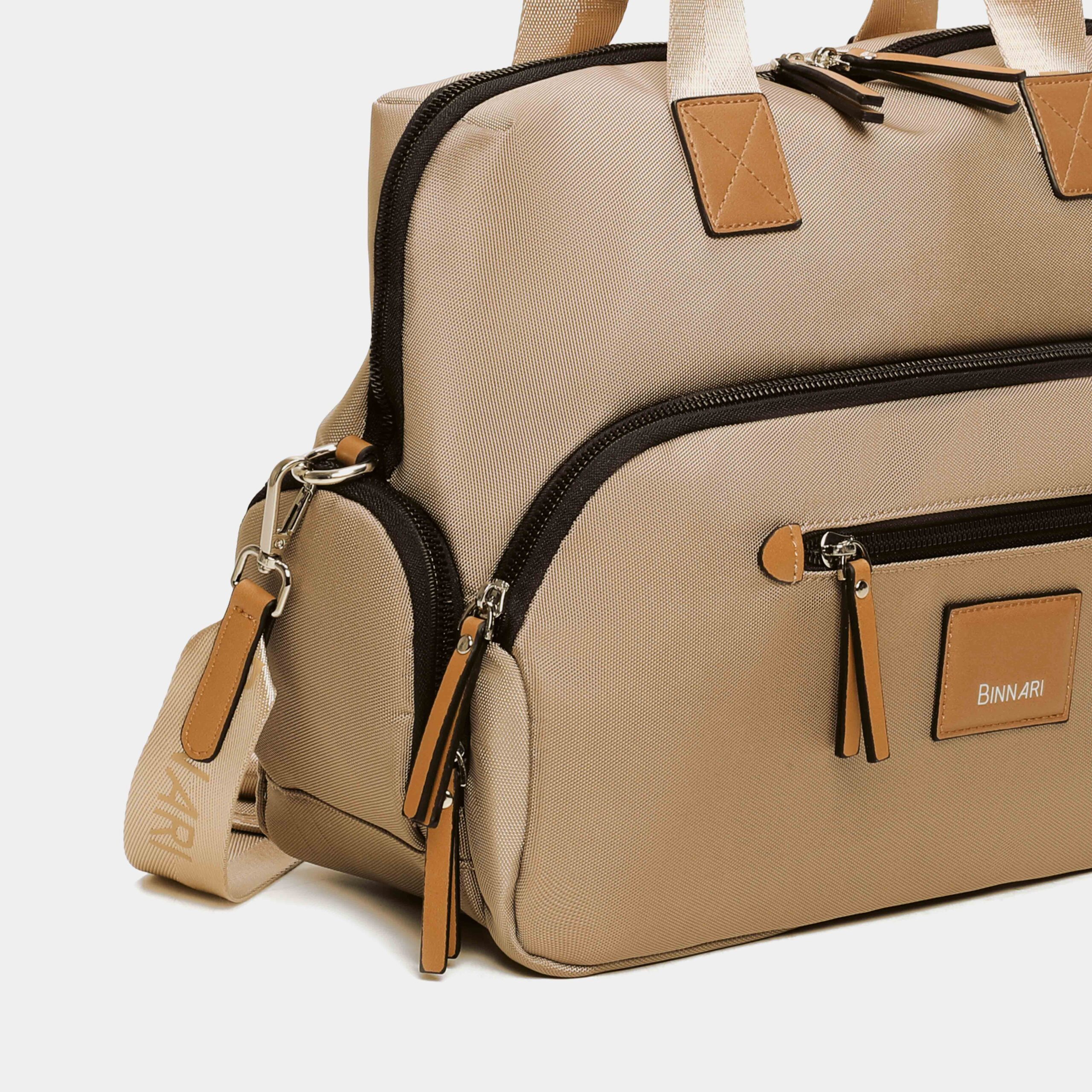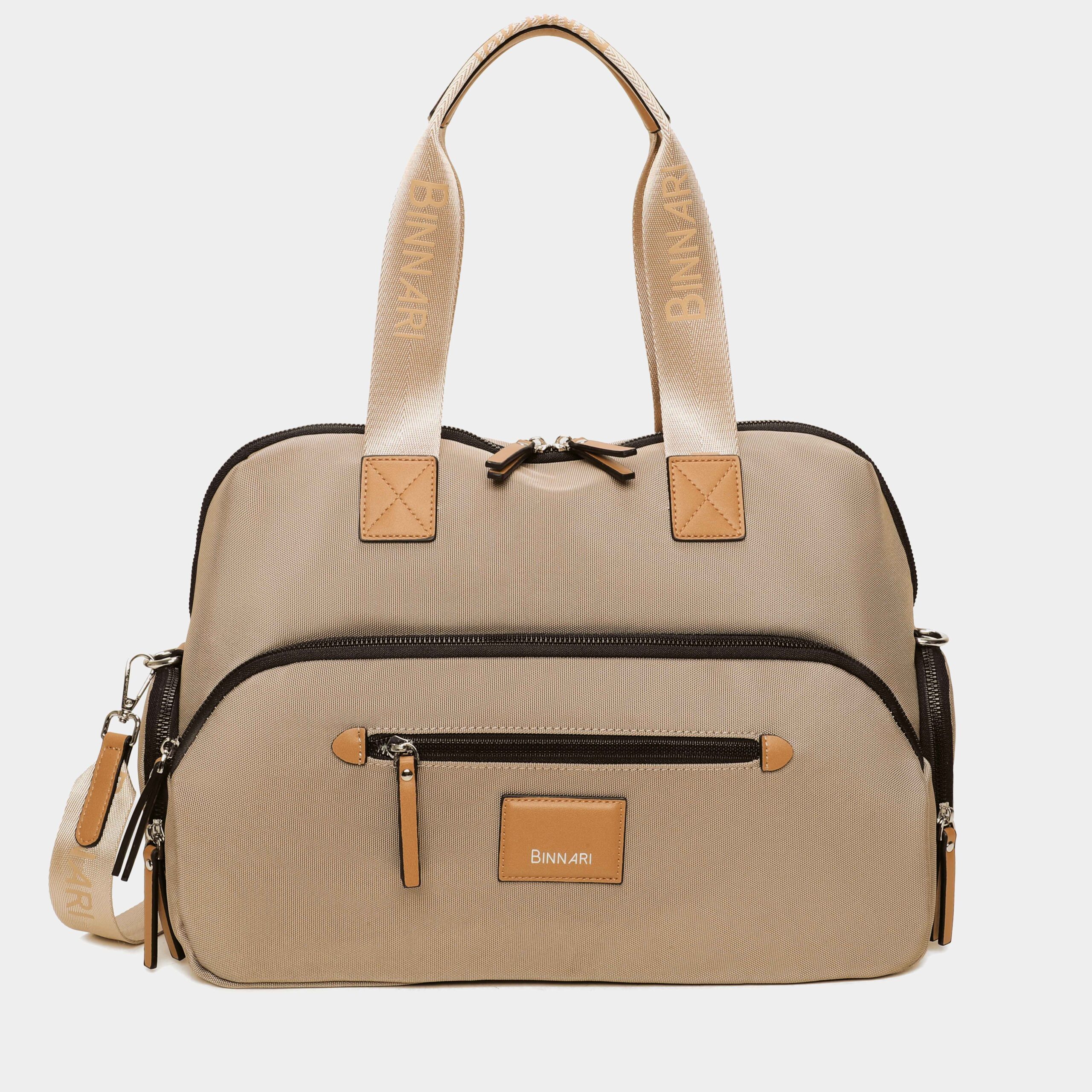 Guadiana bowling bag made of recycled nylon and high quality pu details. It has two positions: shoulder and shoulder strap. Adjustable handle on the inside. On the front there is the Binnari logo in print and on the back there is a zipped pocket. Inside the bag there are more compartments, one of them with zip. Metallic details in nickel colour.