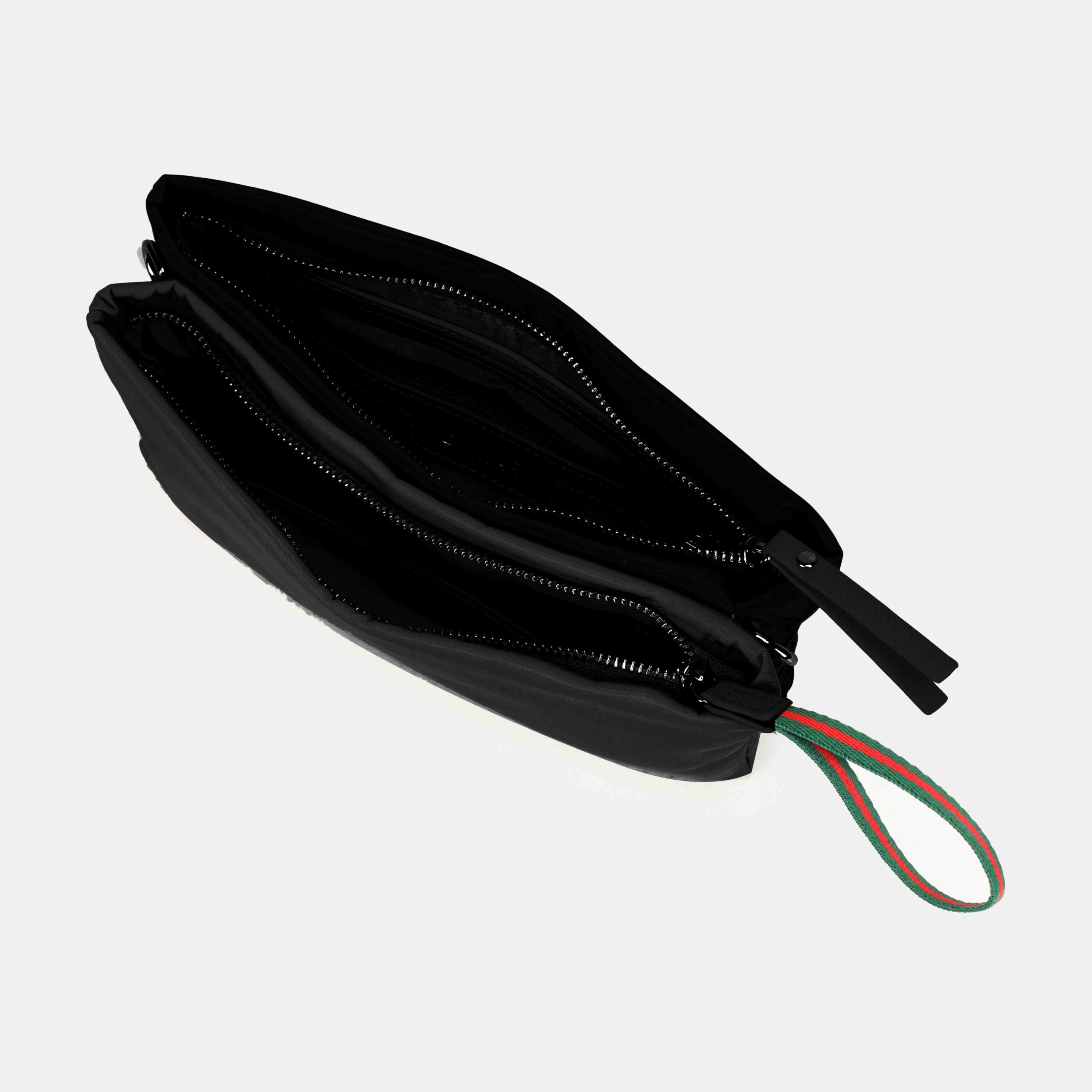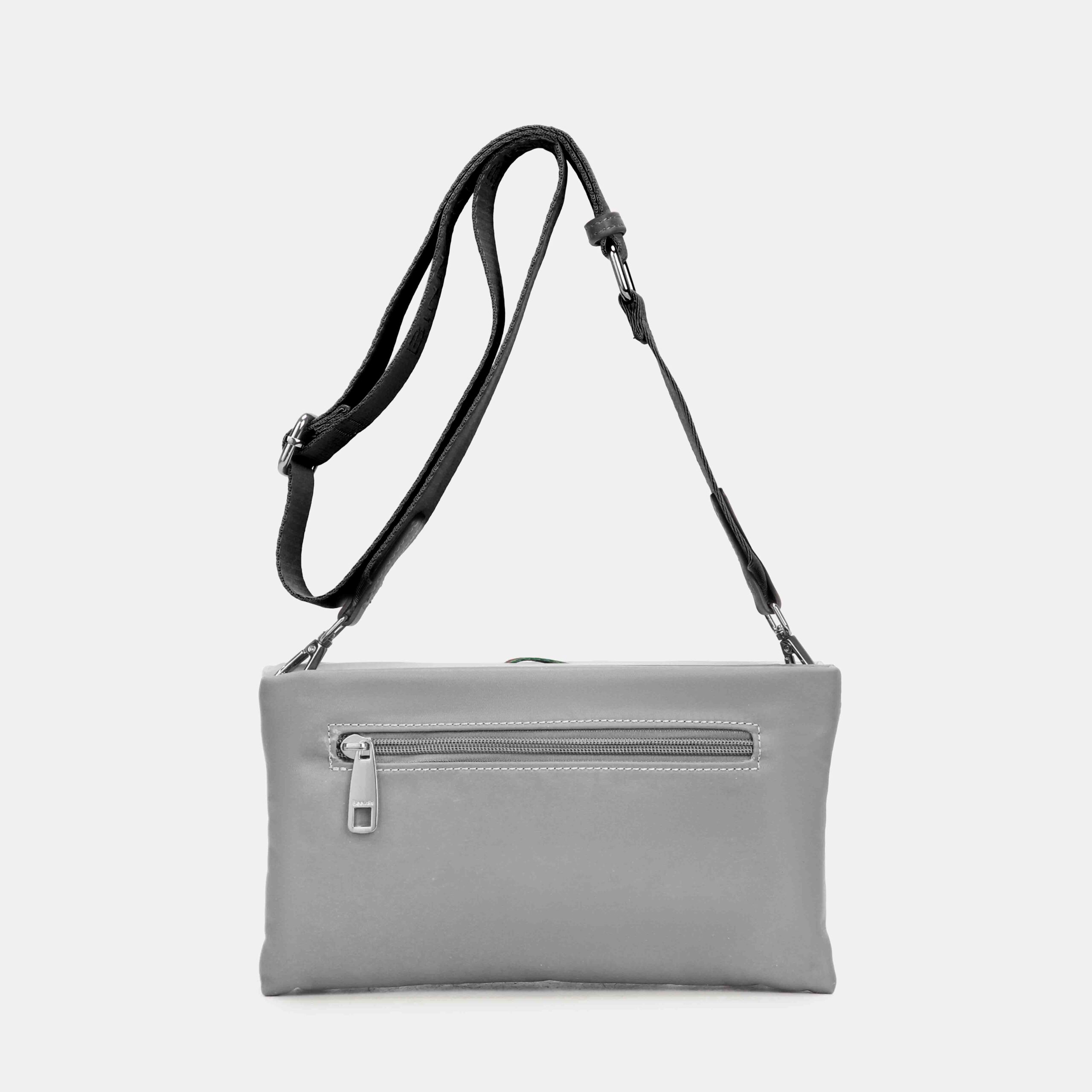 Hiedra shoulder bag made of nylon and high-quality pu details. It is available in 3 colors. It has 2 compartments, both with zippers. Adjustable handle for added comfort. The metallic details are nickel-colored.