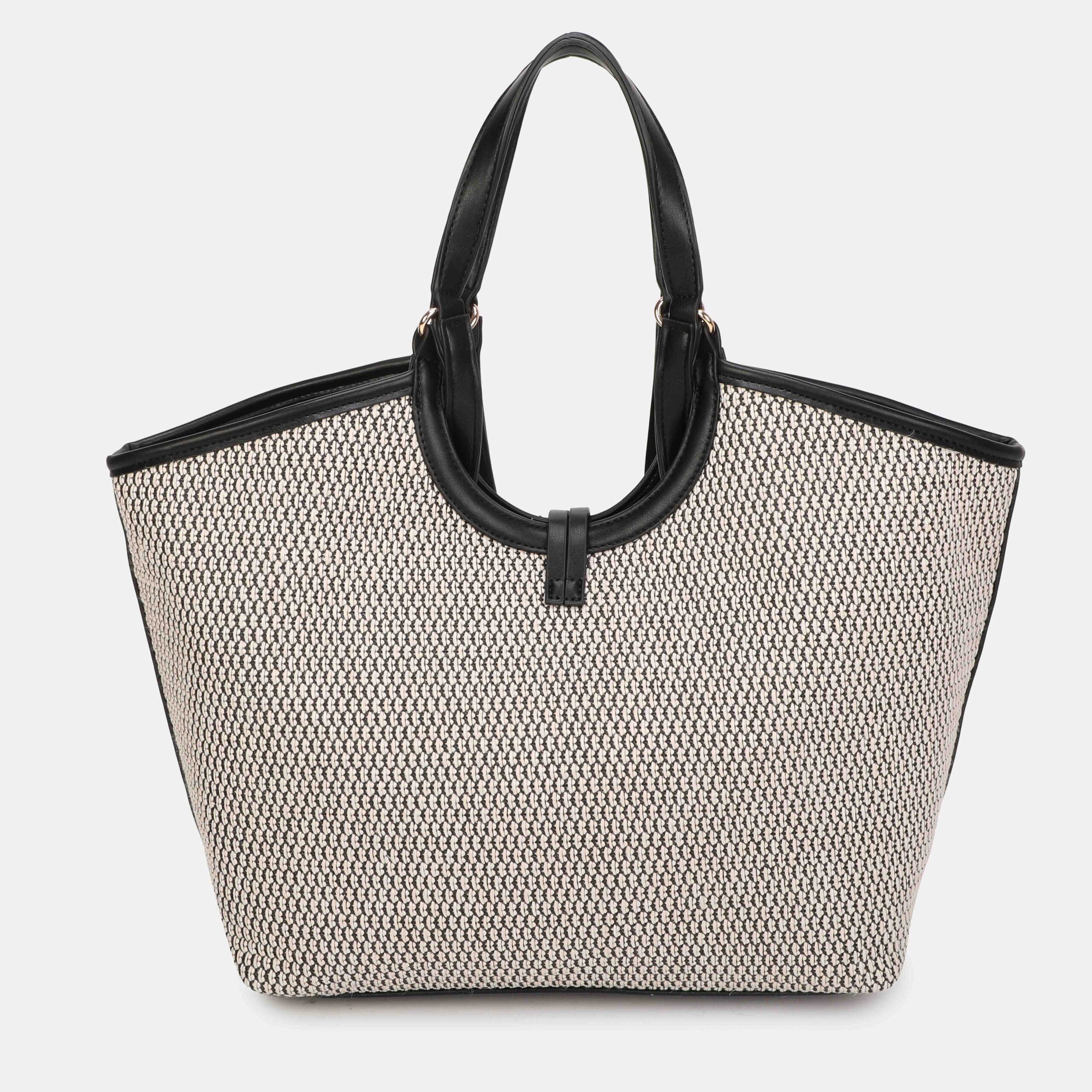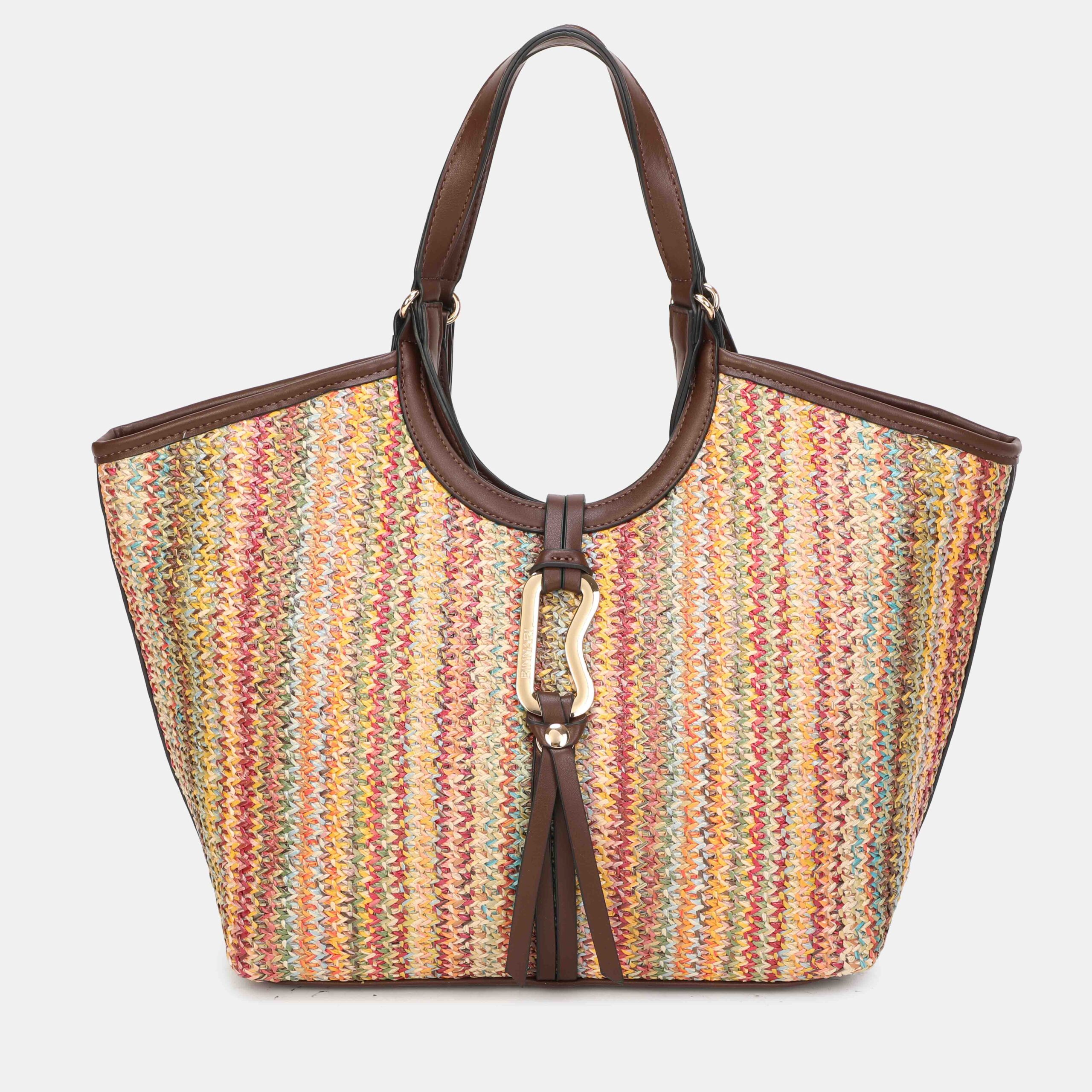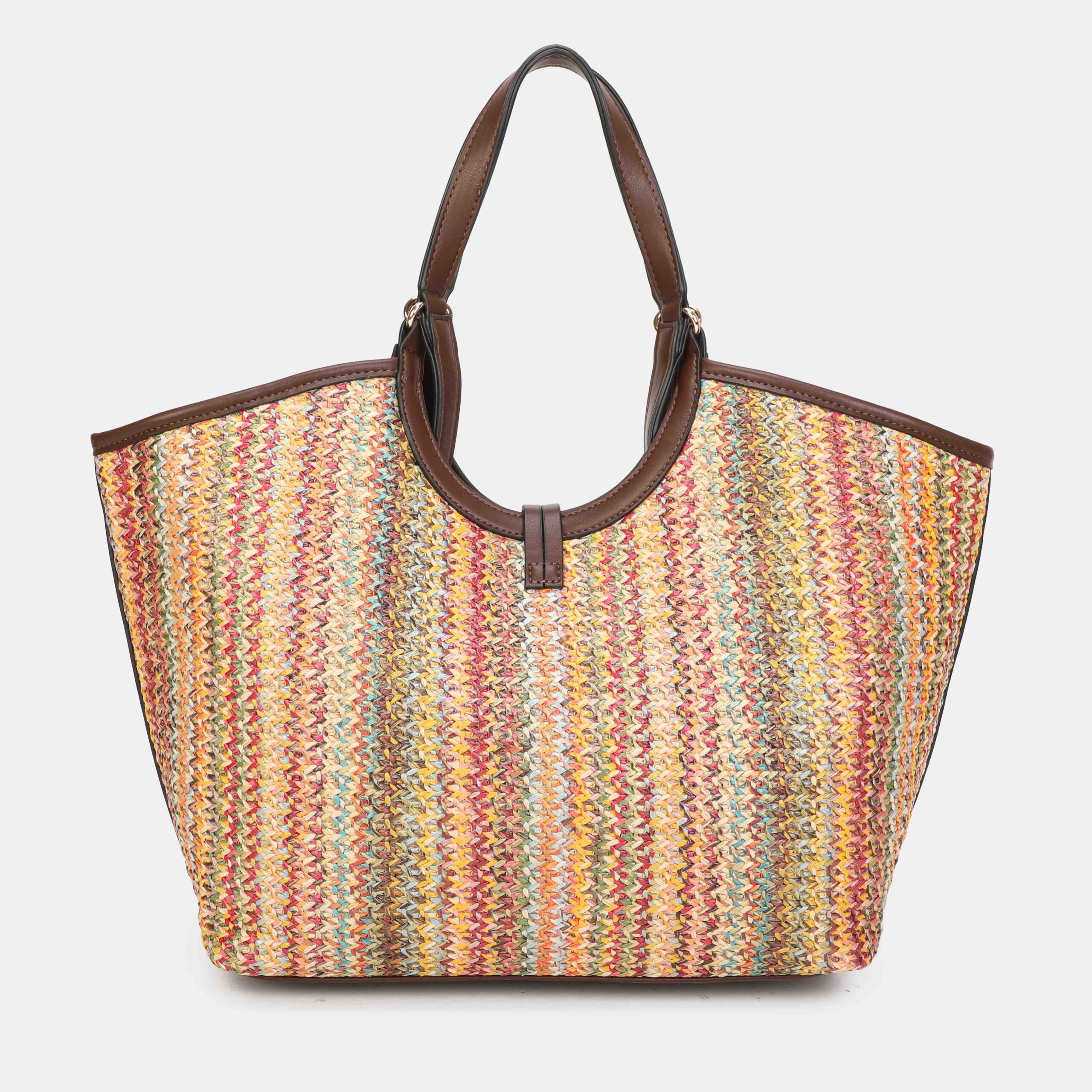 One of this season’s trending bags, the small Lina handbag. It is made of raffia and pu details. It has 2 positions: hand and shoulder strap. Exterior has closure with B. The metallic details are light gold. Don’t miss yours!