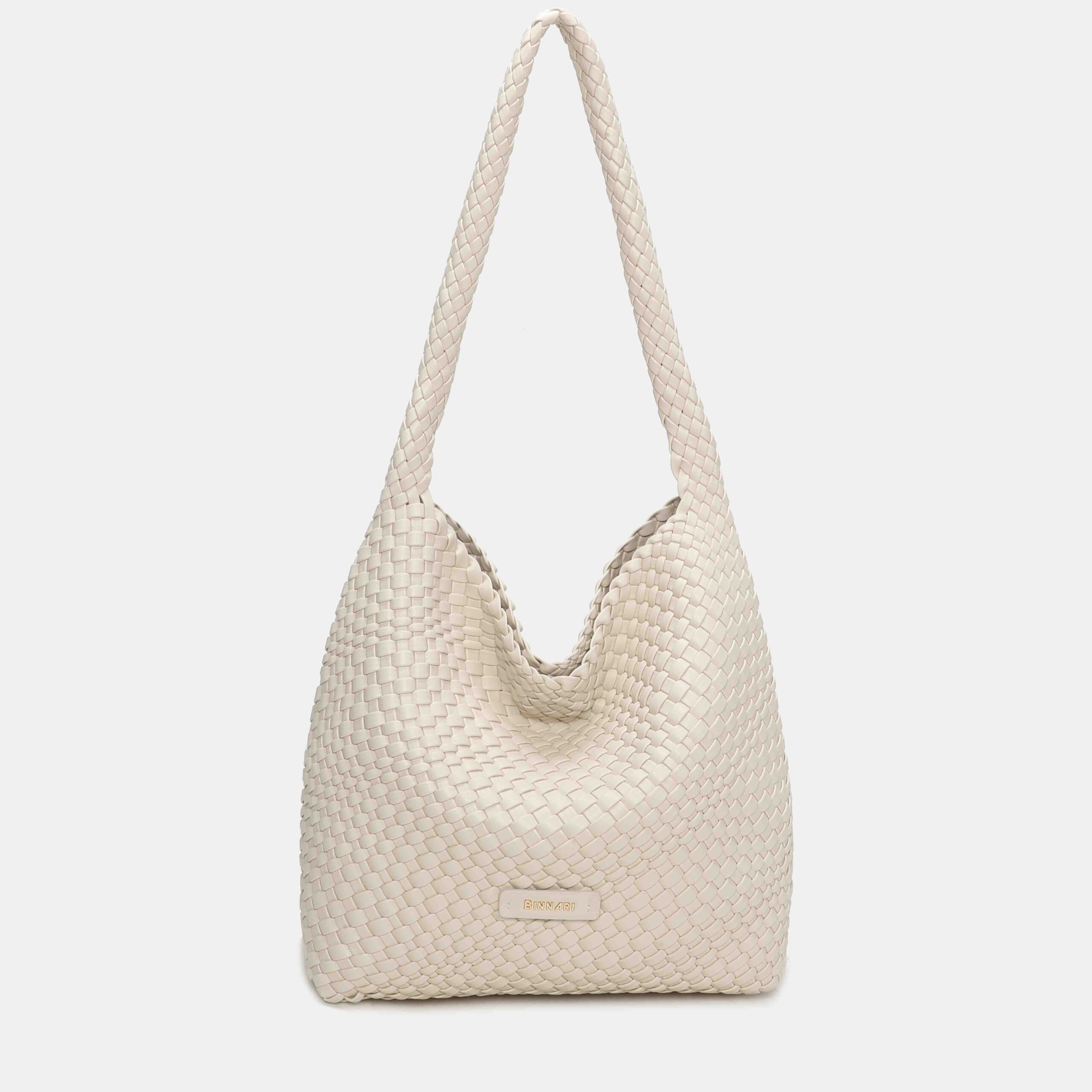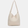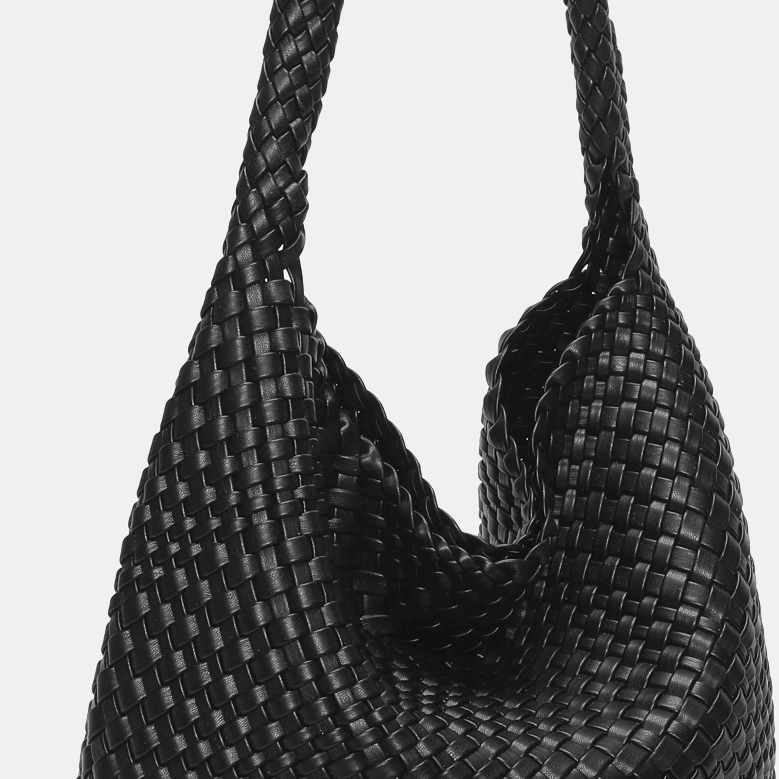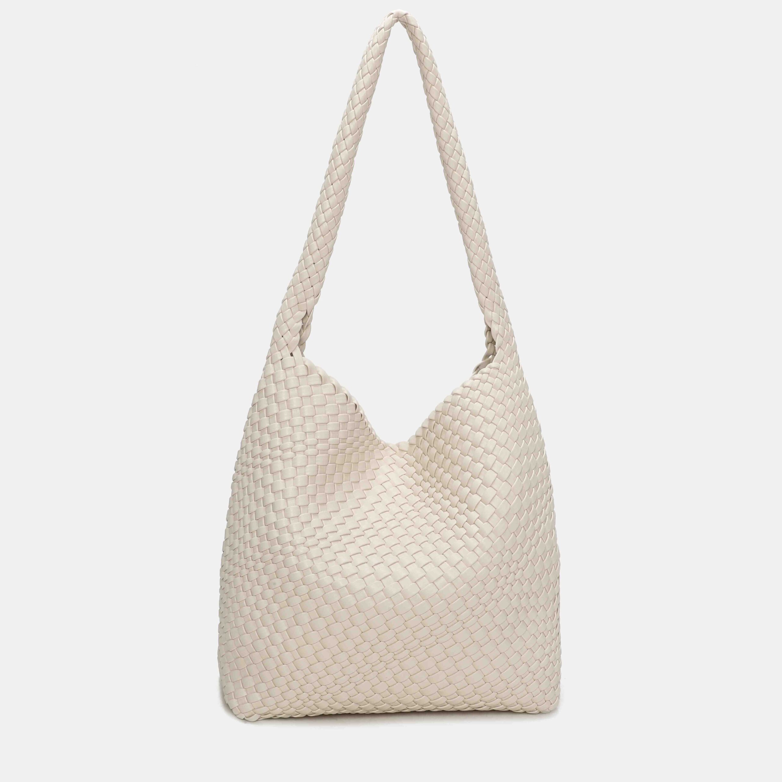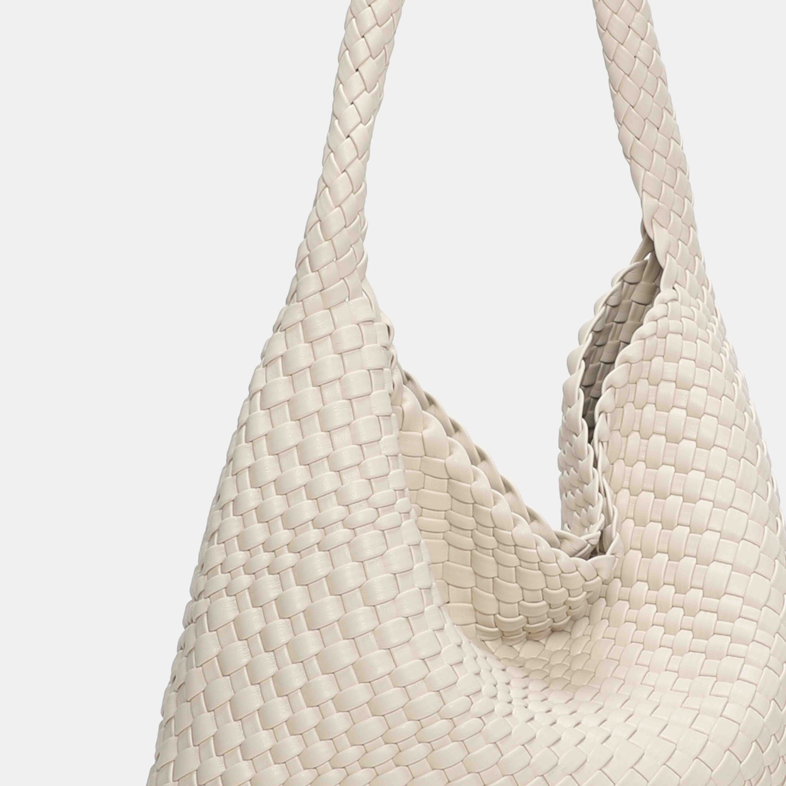 This large braided PU bag is a real best seller thanks to its comfortable, lightweight and super versatile design. Its long handle allows it to be carried on the shoulder with total comfort, adapting perfectly to the body. The interior is spacious, ideal for everyday use, and the light gold-tone metallic details add an elegant touch.