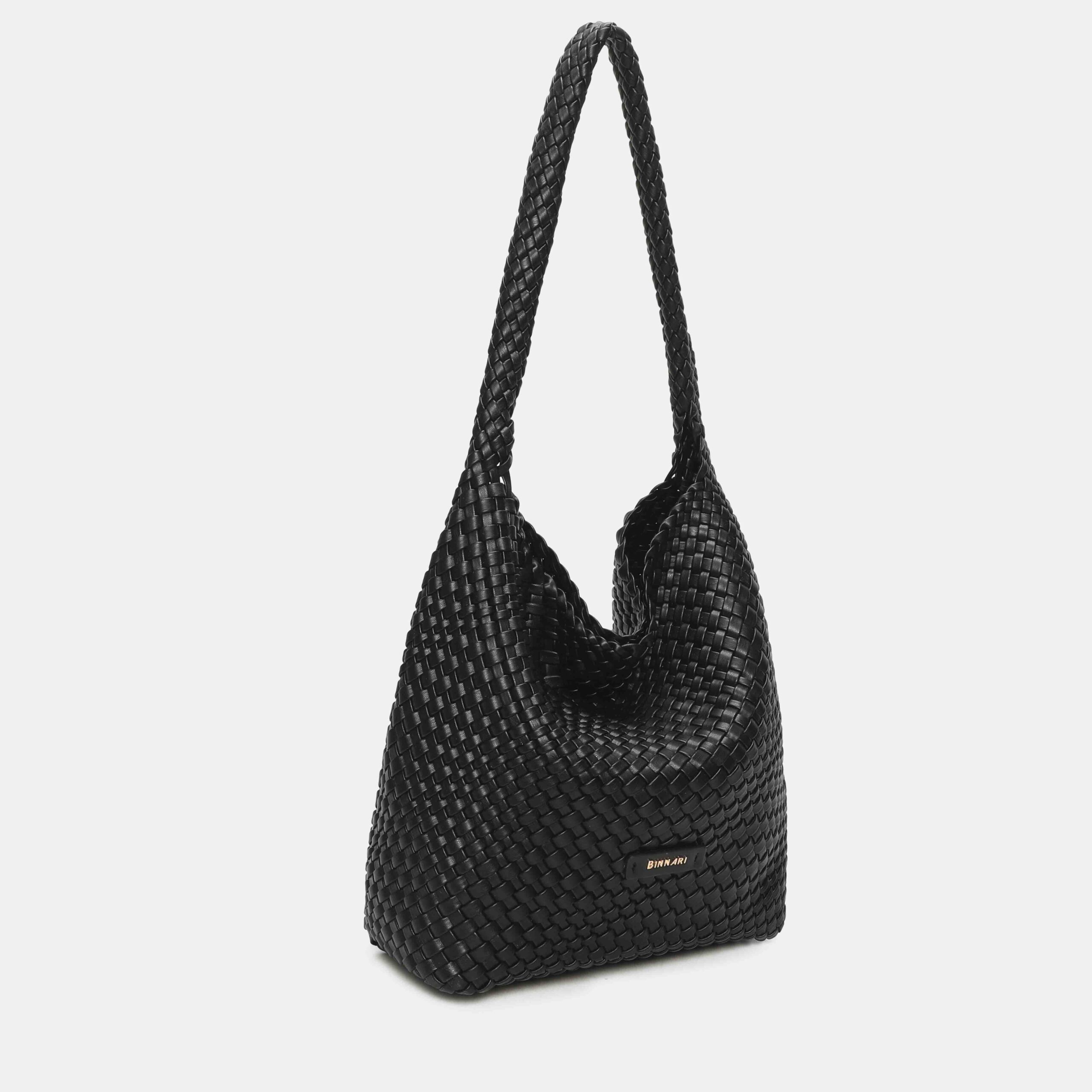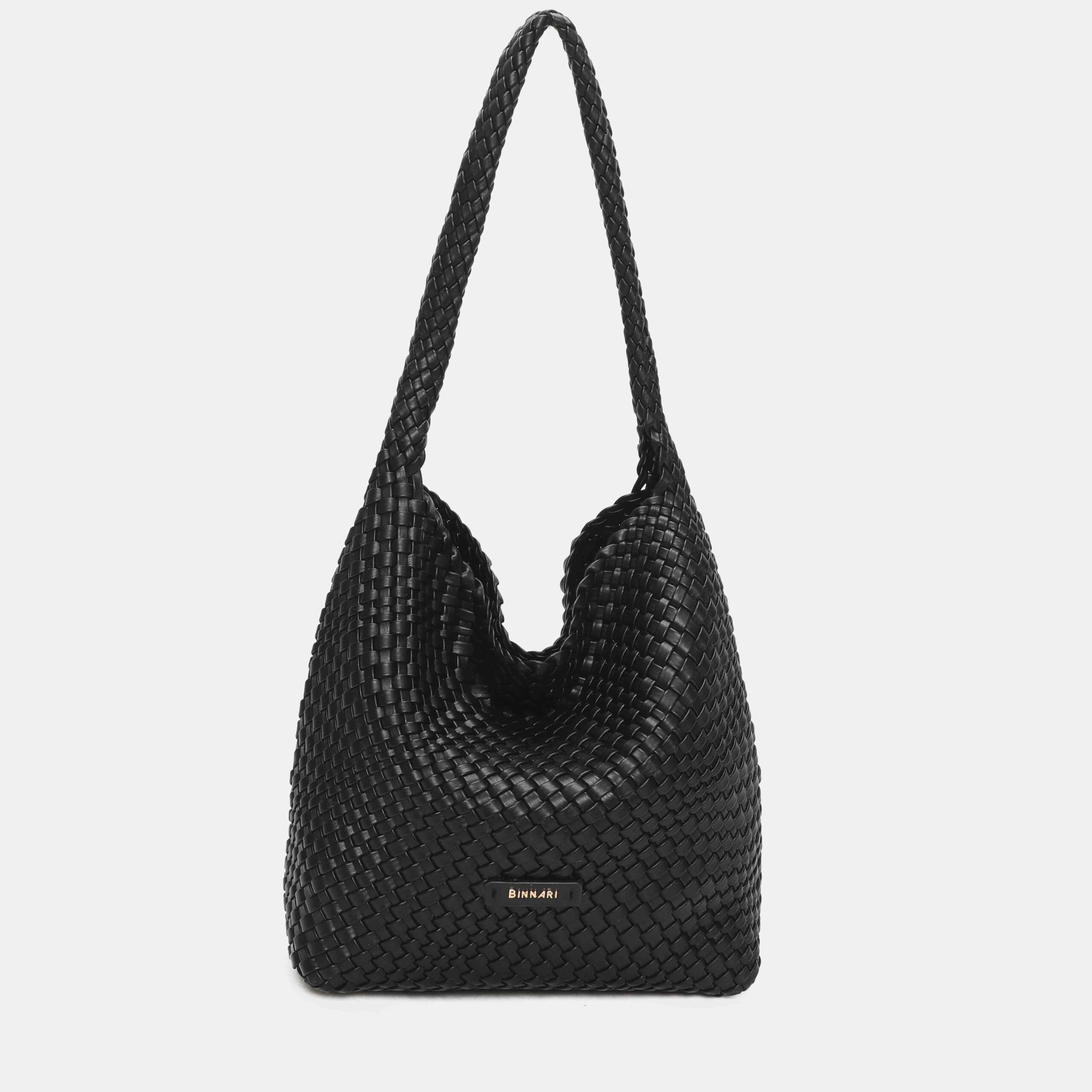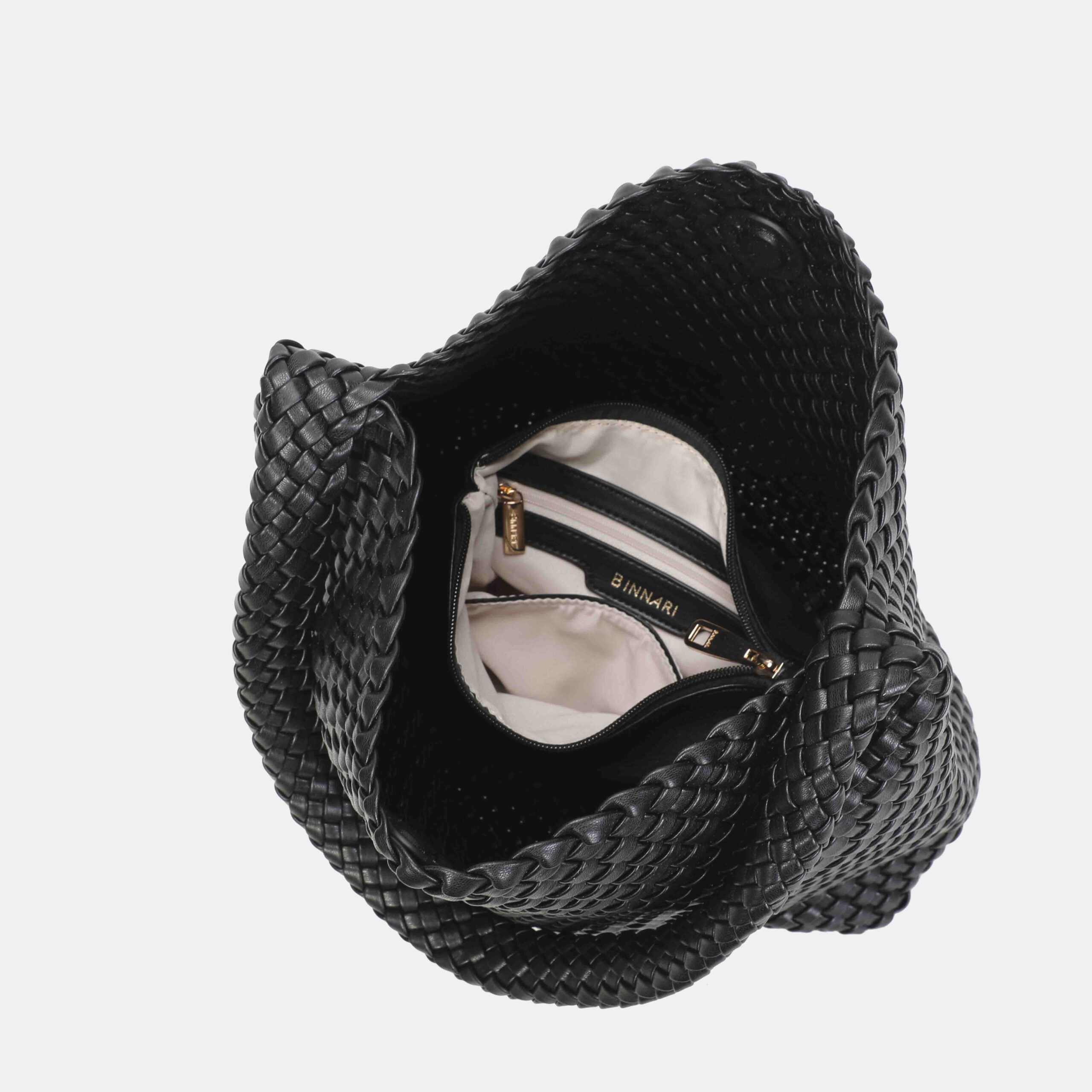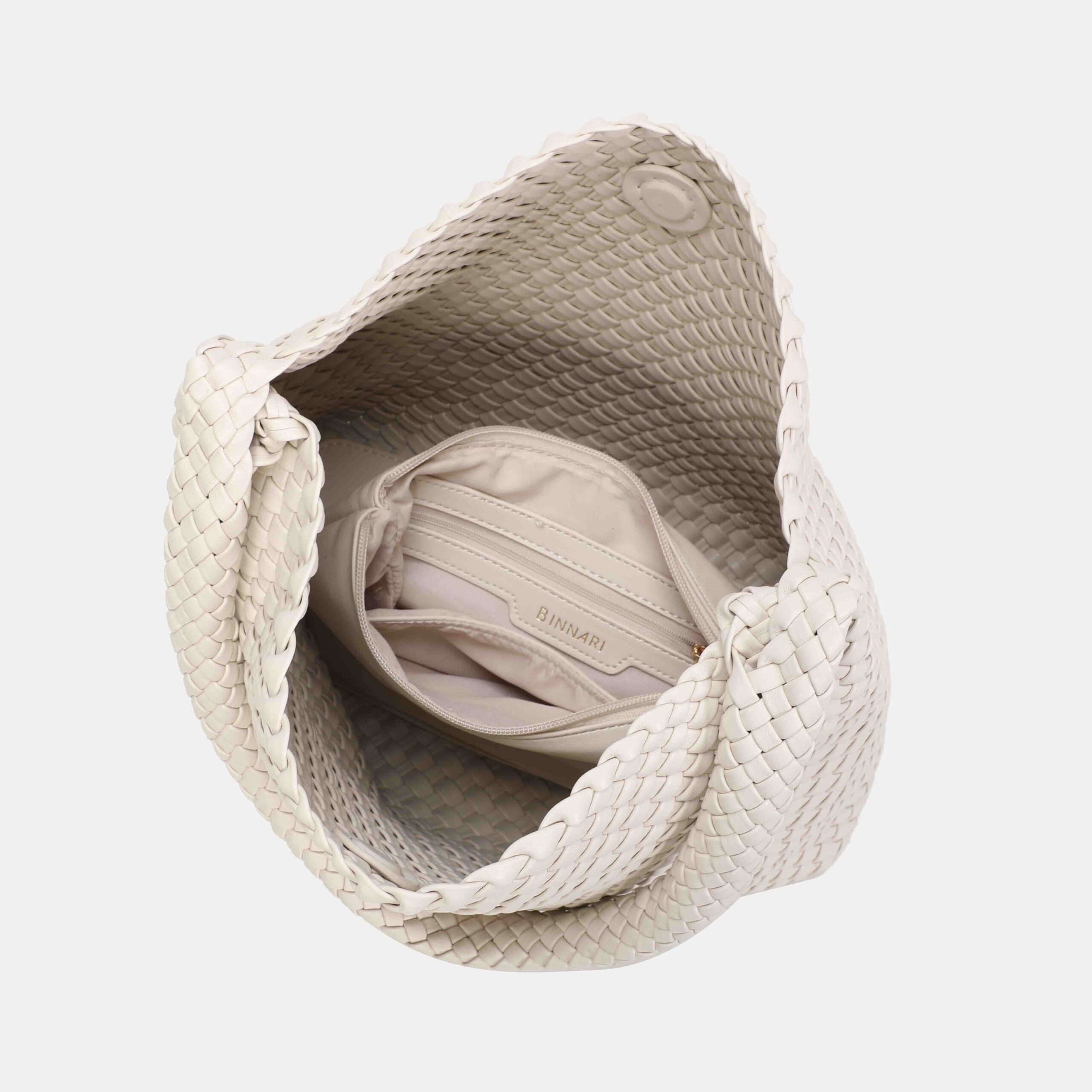 This large braided PU bag is a real best seller thanks to its comfortable, lightweight and super versatile design. Its long handle allows it to be carried on the shoulder with total comfort, adapting perfectly to the body. The interior is spacious, ideal for everyday use, and the light gold-tone metallic details add an elegant touch.