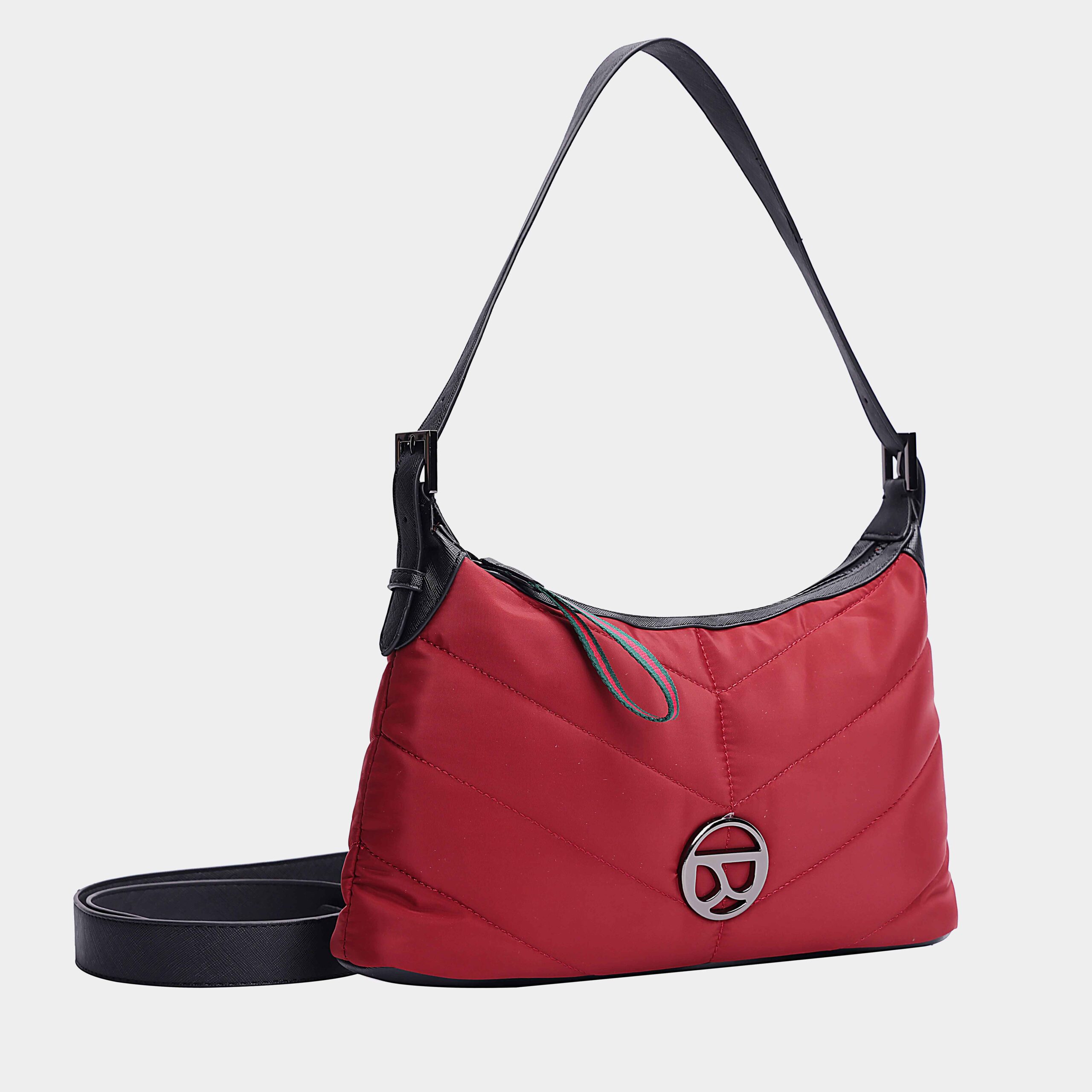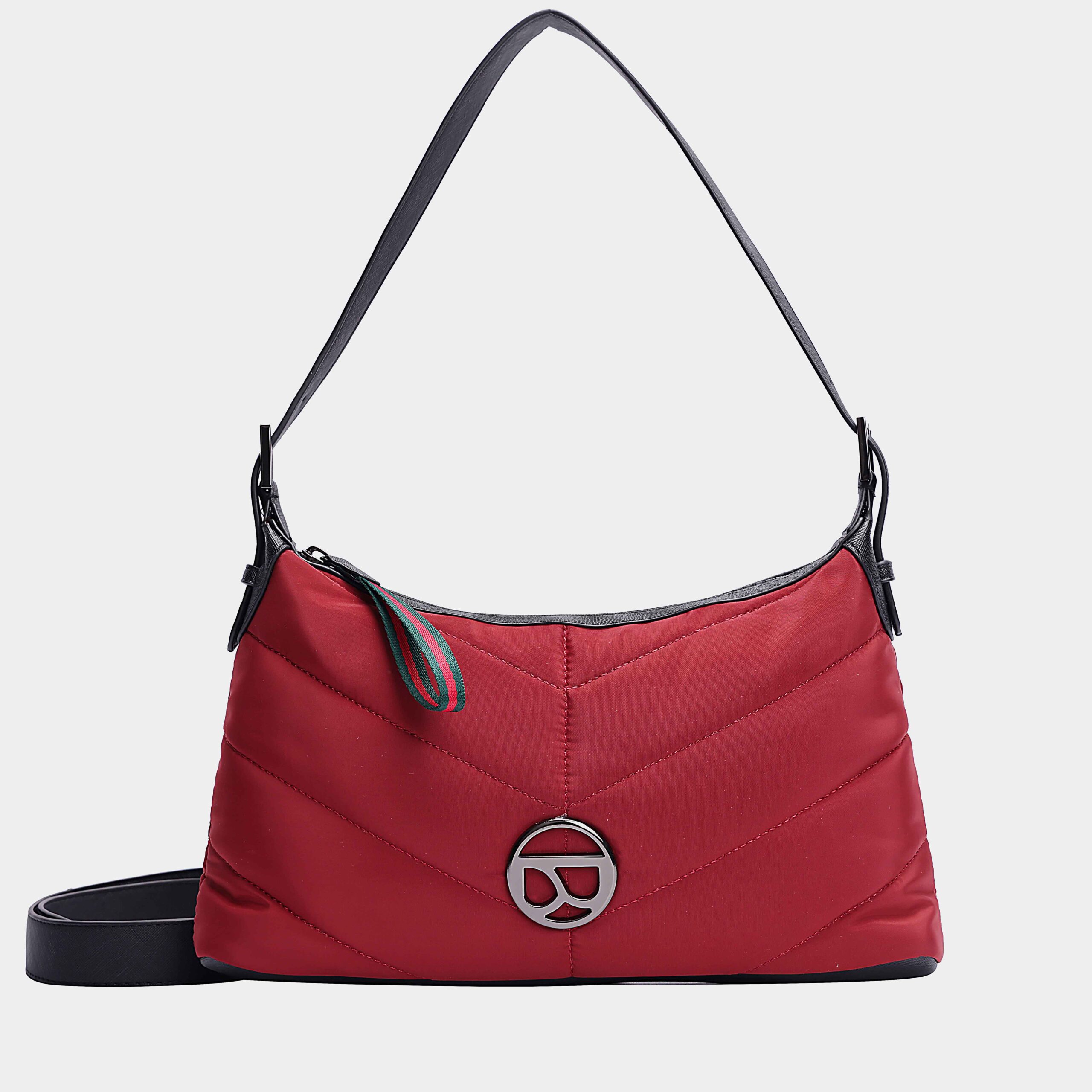 Lucena shoulder bag made of high quality nylon and details in pu. It is available in several colors: black, bordo, khaki, and caneña. It has a webbing inside so that it can be carried as a shoulder bag and thus provide extra comfort. Metallic details in black nickel color.
