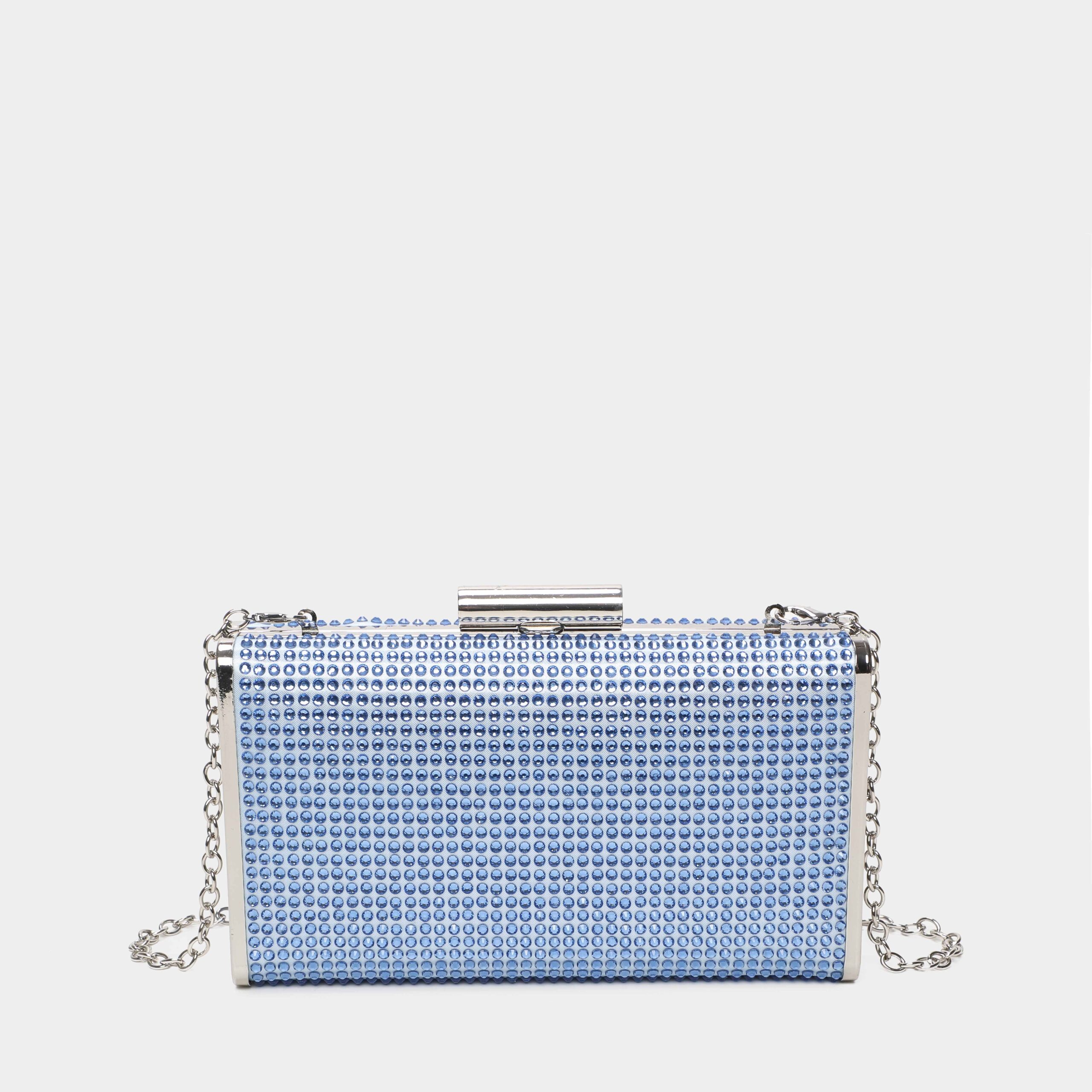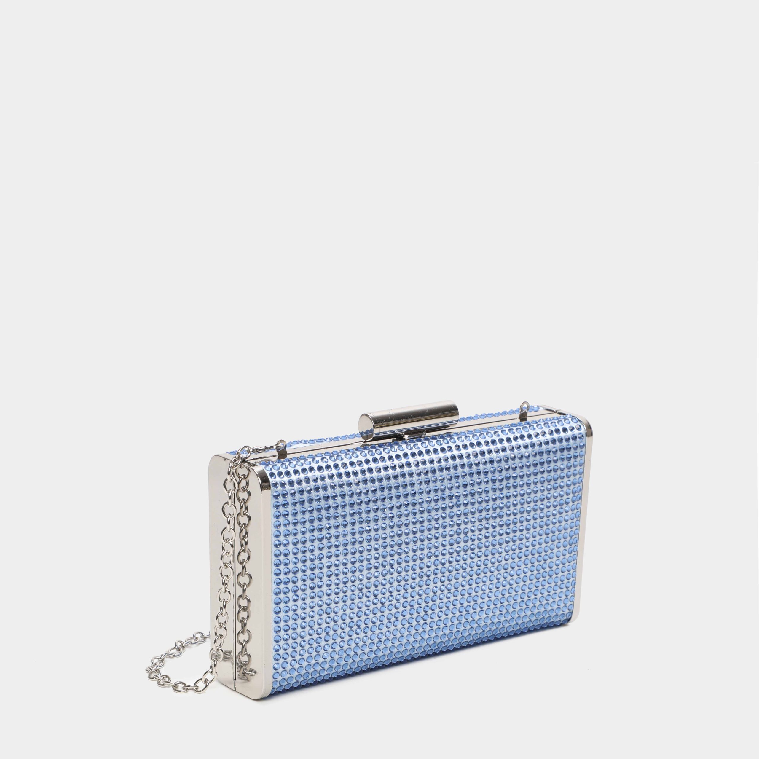 Luna clutch available in several colours. Inside there is 1 pocket  and a chain. The metal detail on the top is nickel coloured.