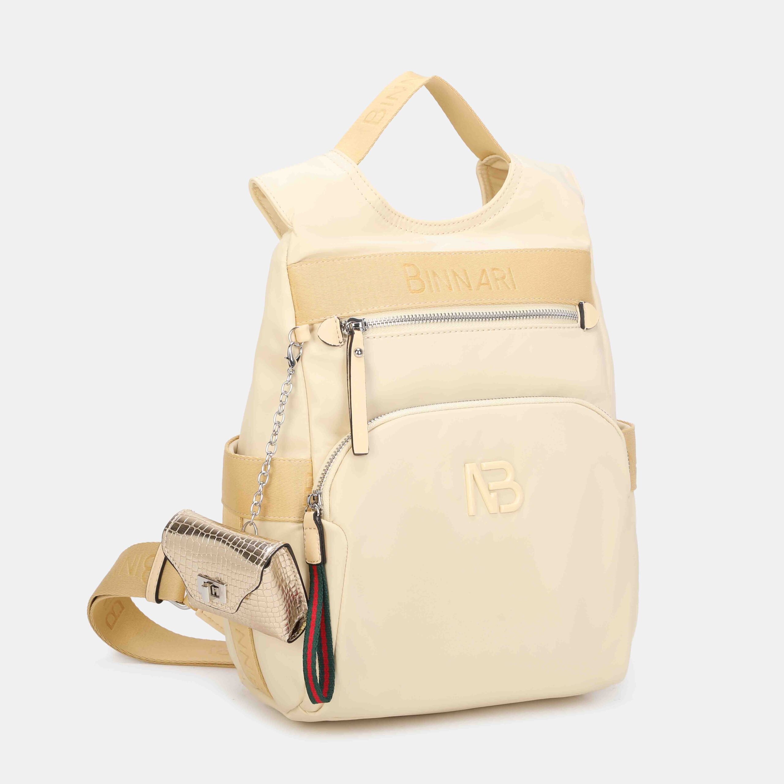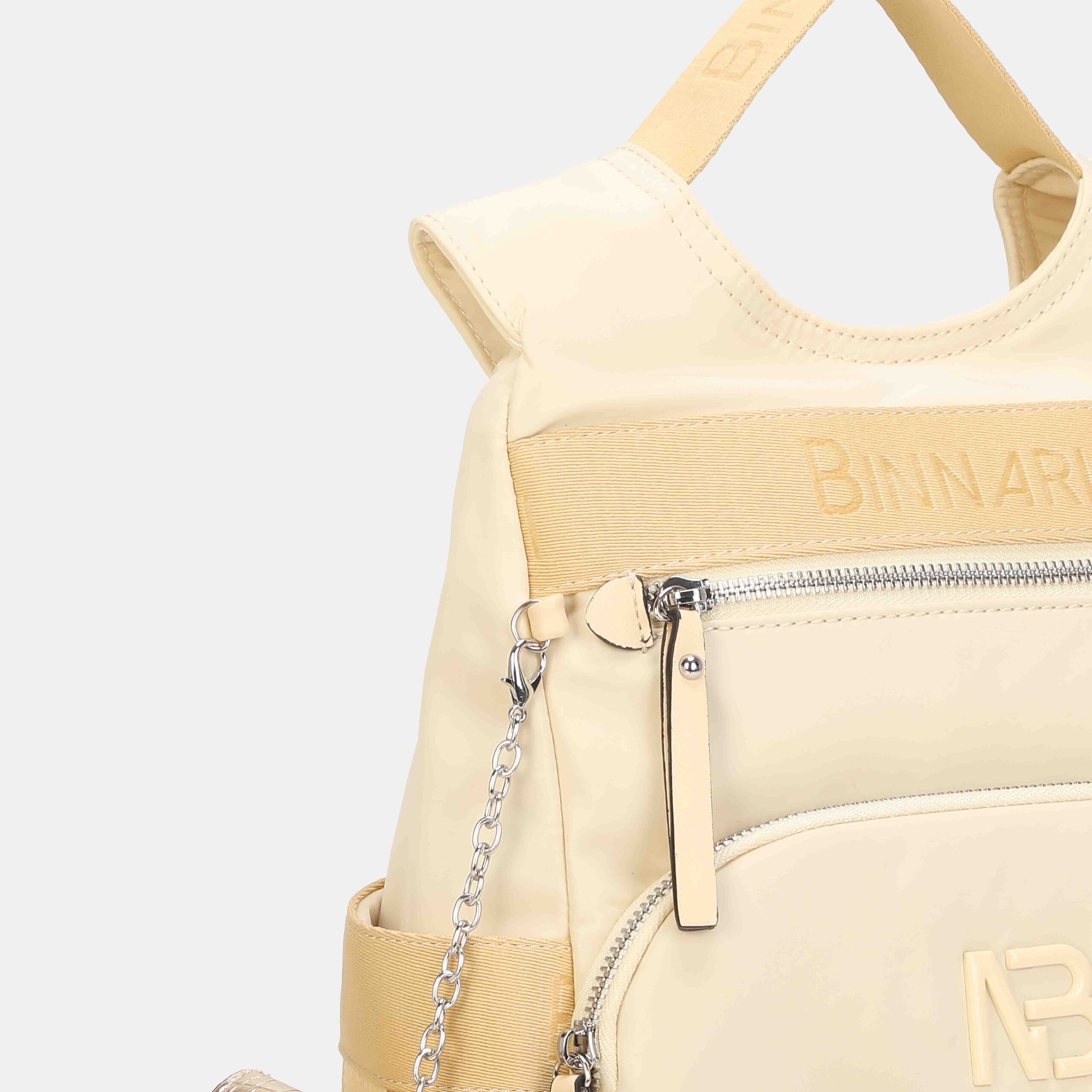 This backpack stands out for its anti-theft design, as the main opening is located at the back, offering greater security on a daily basis. It is made of resistant nylon with PU details, and incorporates a small removable bag with a leather effect finish. The matching NB logo and the adjustable wide straps complete this comfortable, modern and very practical model for any occasion.