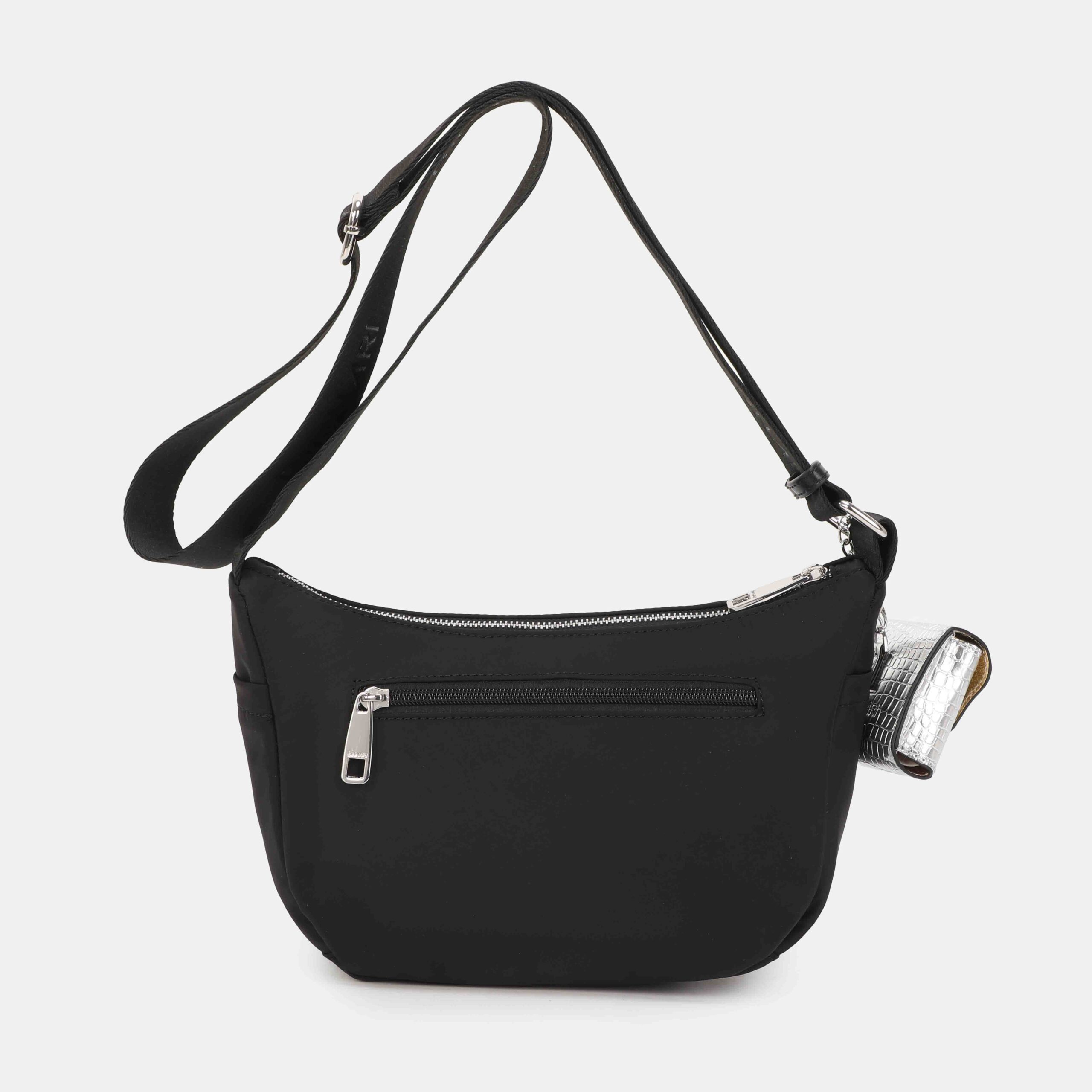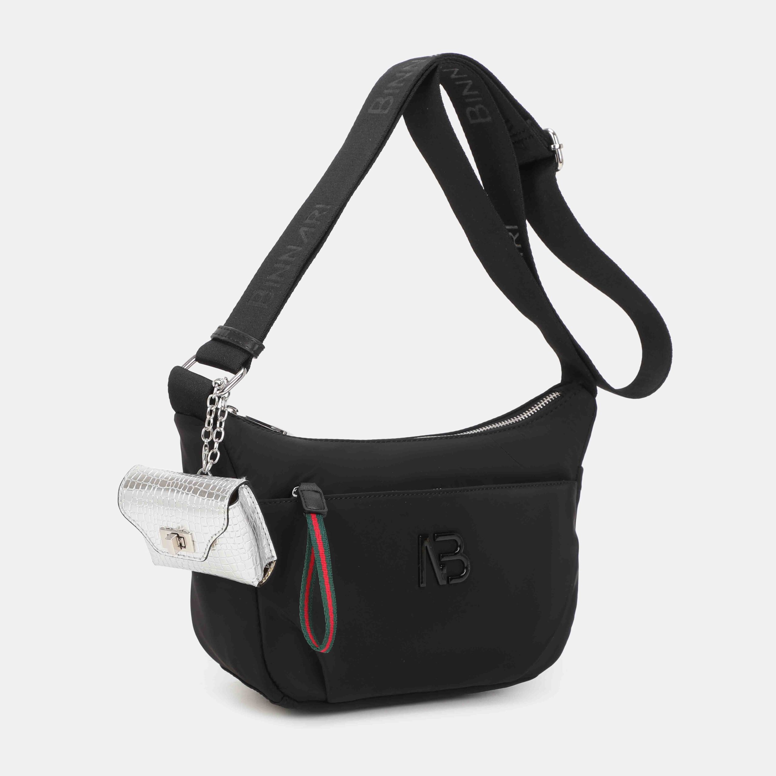 This crossbody bag model combines resistant nylon with PU details, offering lightness and style on a daily basis. It includes a small removable bag with a leather-effect finish and the matching NB logo on the front. The wide adjustable strap ensures comfort with each use. A practical, modern design perfect for any look.