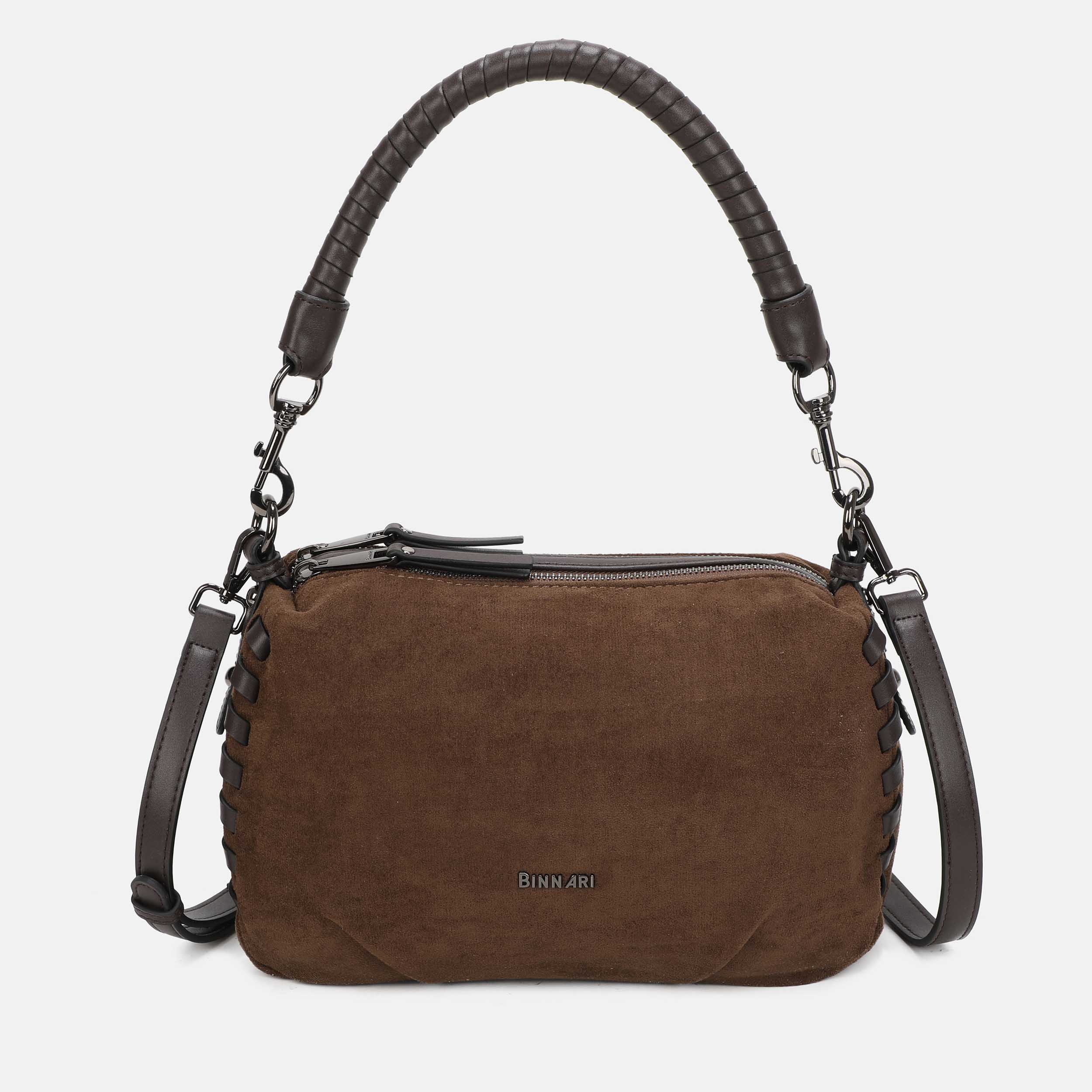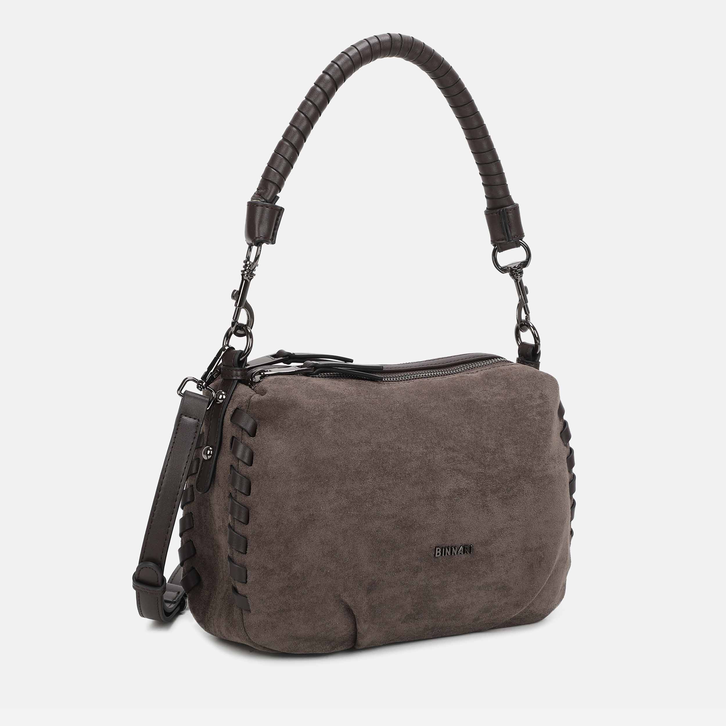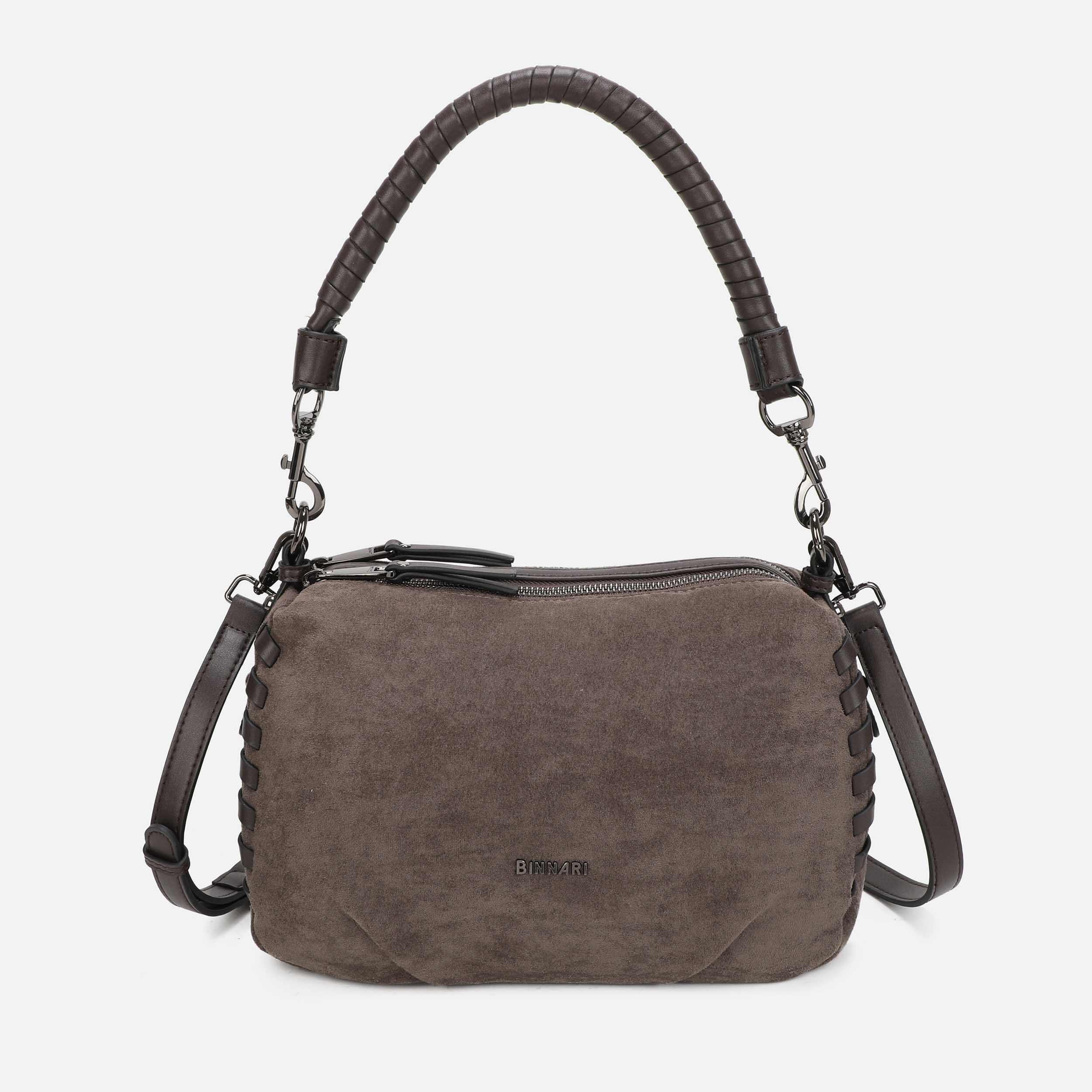 Bolso bandolera Flavia disponible en 4 colores. Está confeccioando en antelina y detalles en pu de alta calidad. Sus dos asas trenzadas principales son regulables aportando así mucha más comodidad. Tiene 2 compartimentos pricipales, ambos con cremallera. Los detalles son de color nickel.