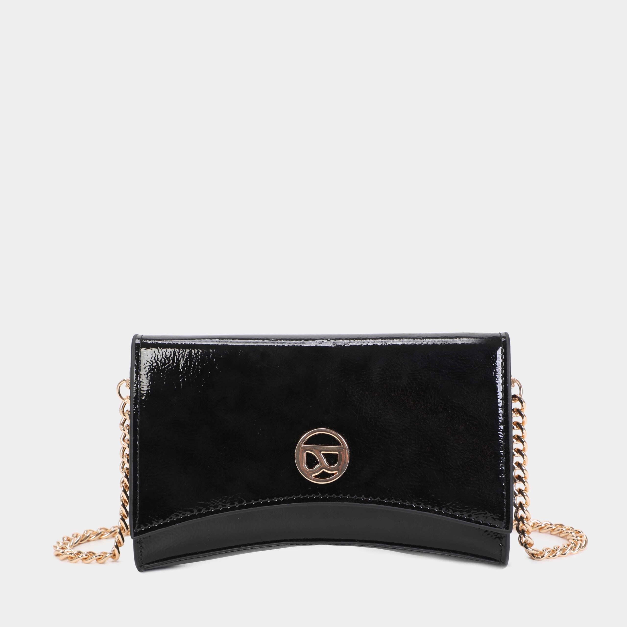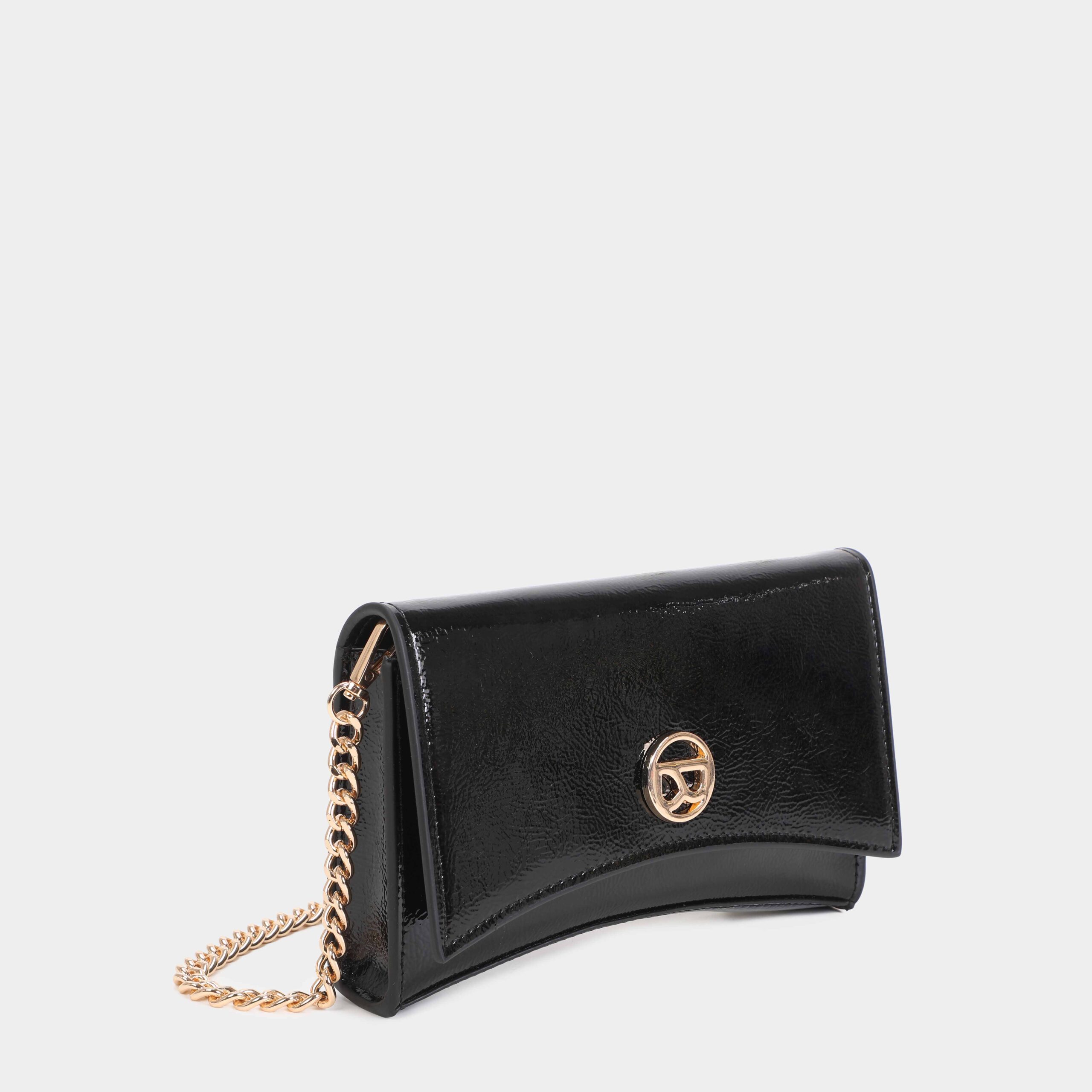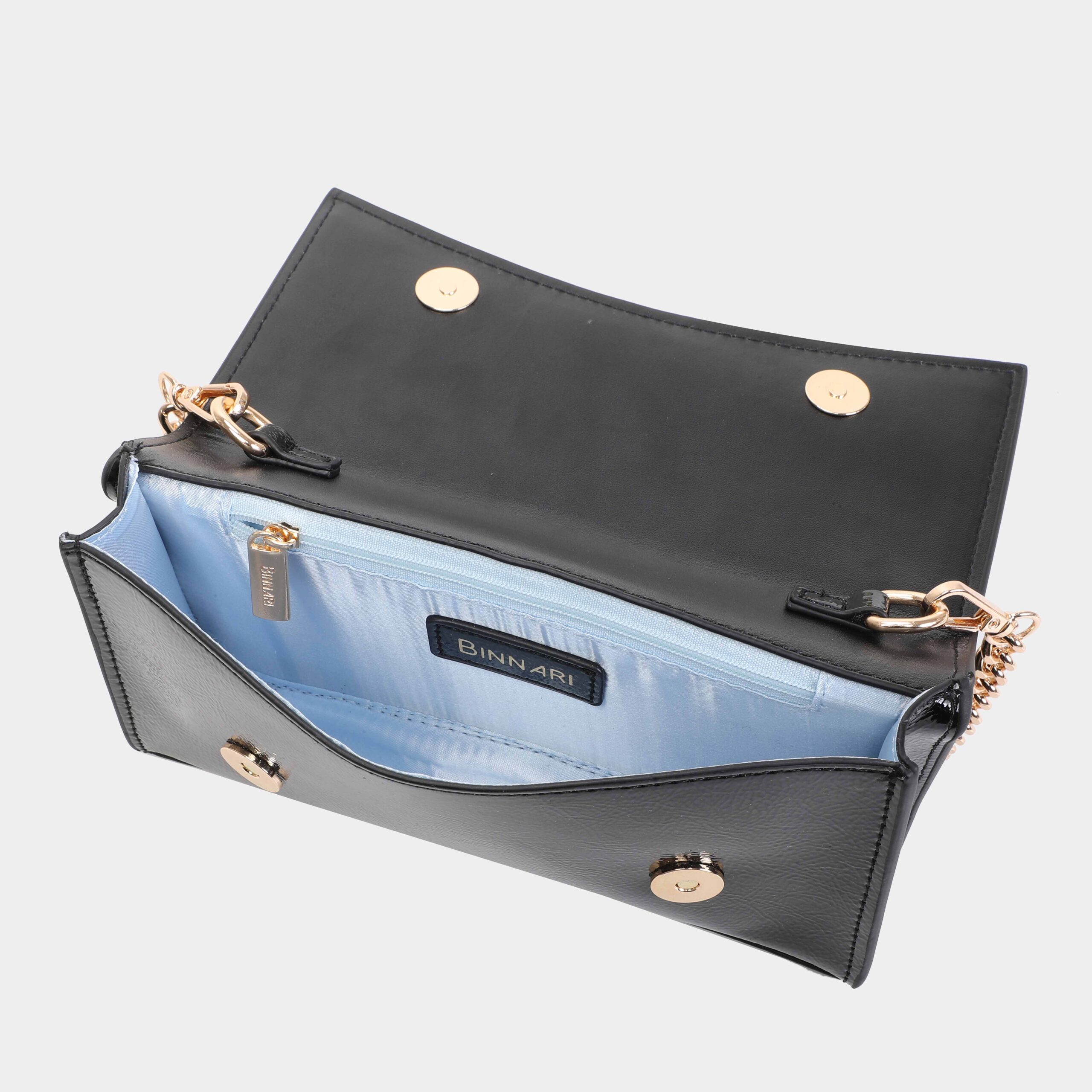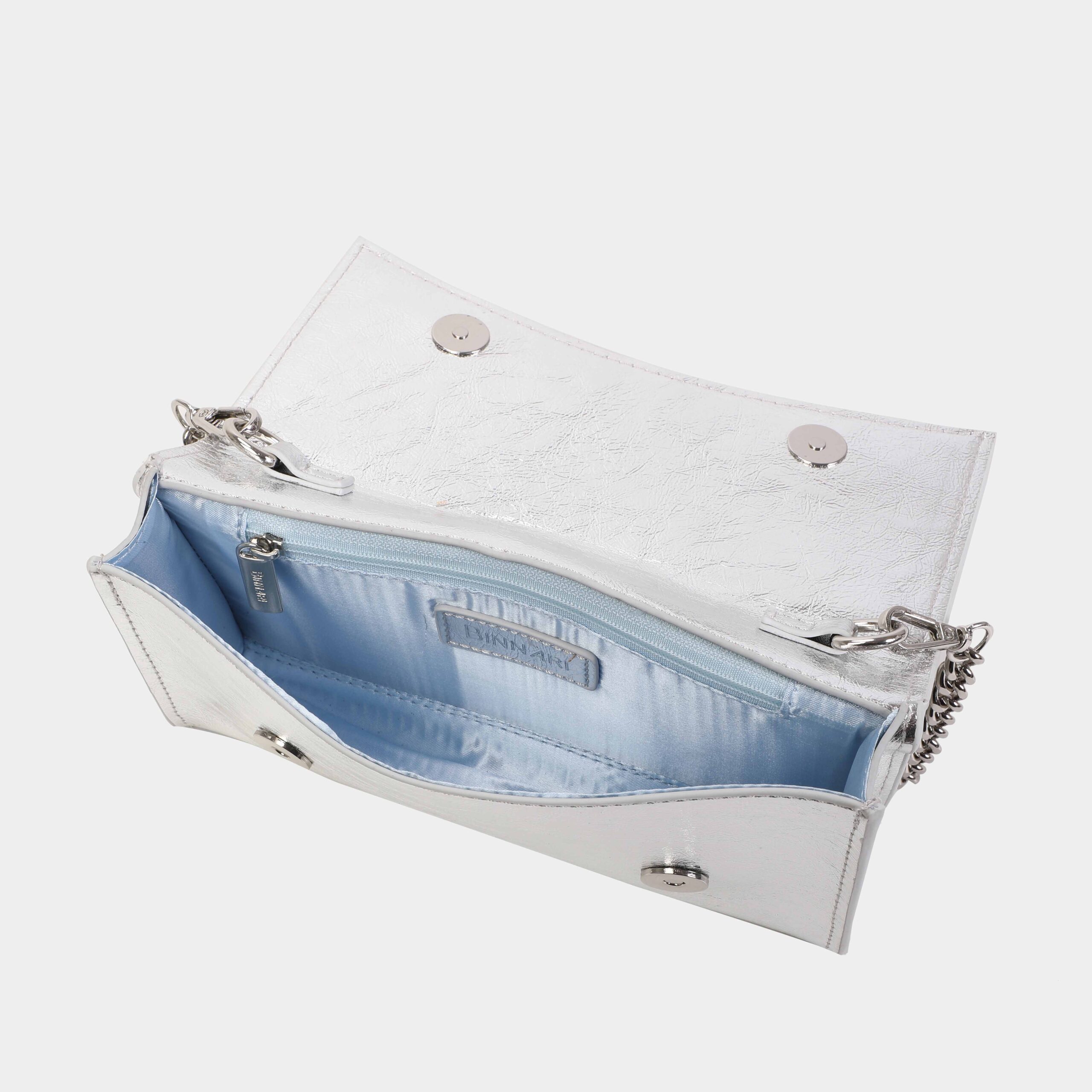 Bolso bandolera Lisa confeccionada en pu de alta calidad.Se accede a su interior por medio de la solapa y en él encontramos varios bolsillos, uno de ellos con cremallera para aportar así una seguridad mayor. Los detalles metálicos son de color oro claro.