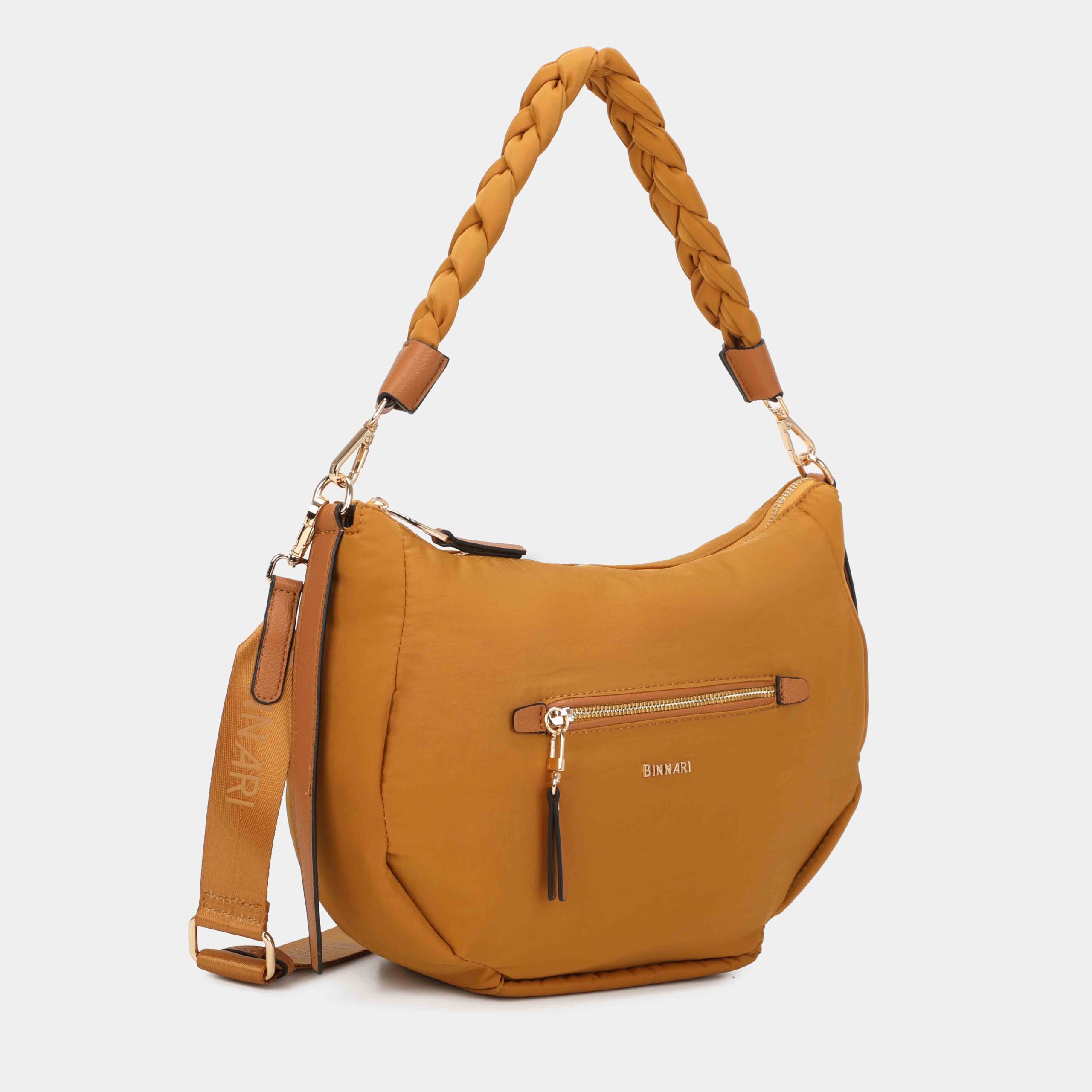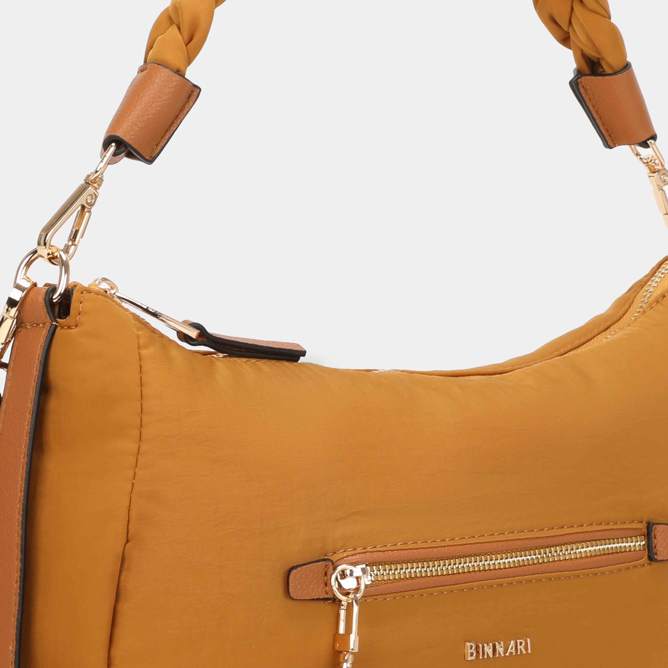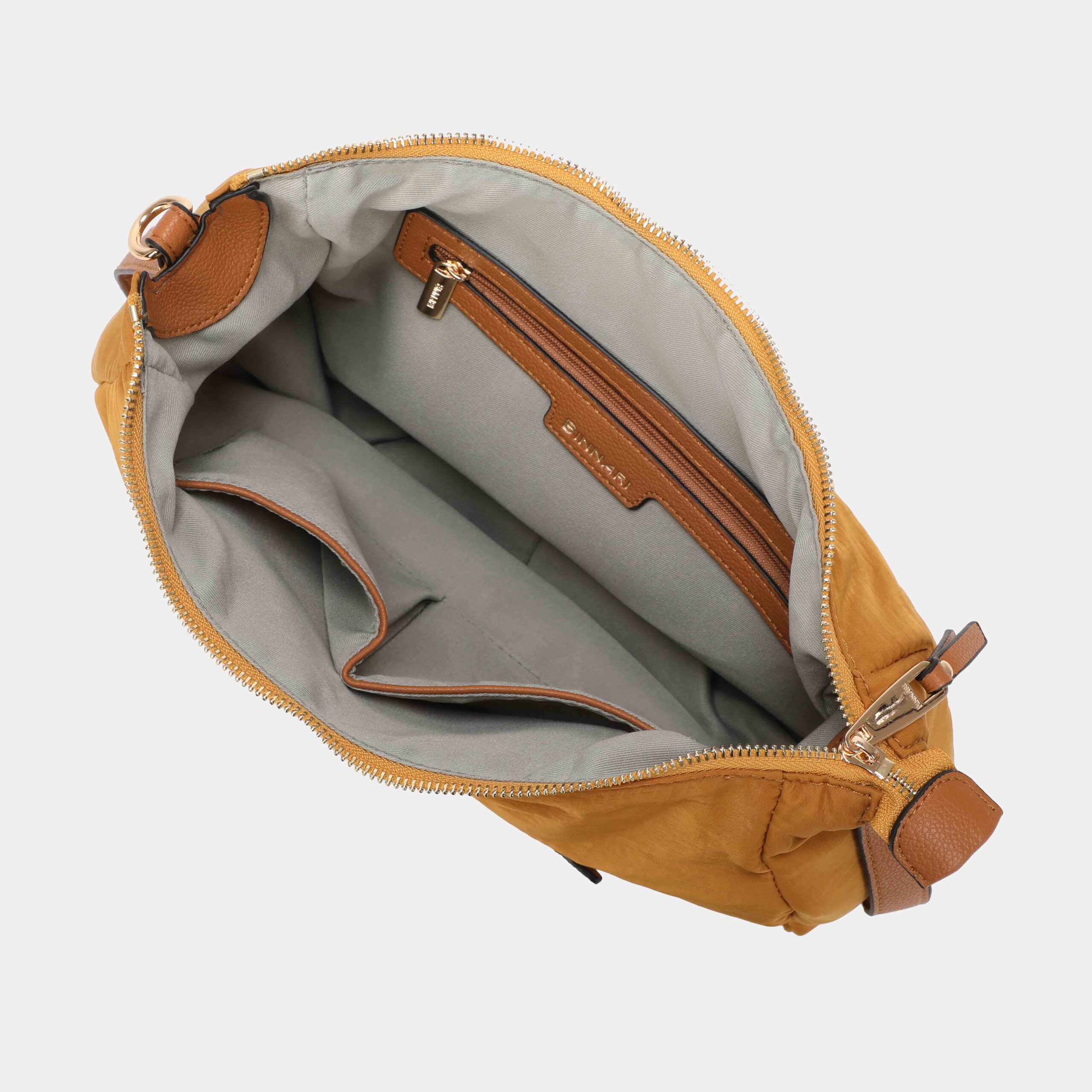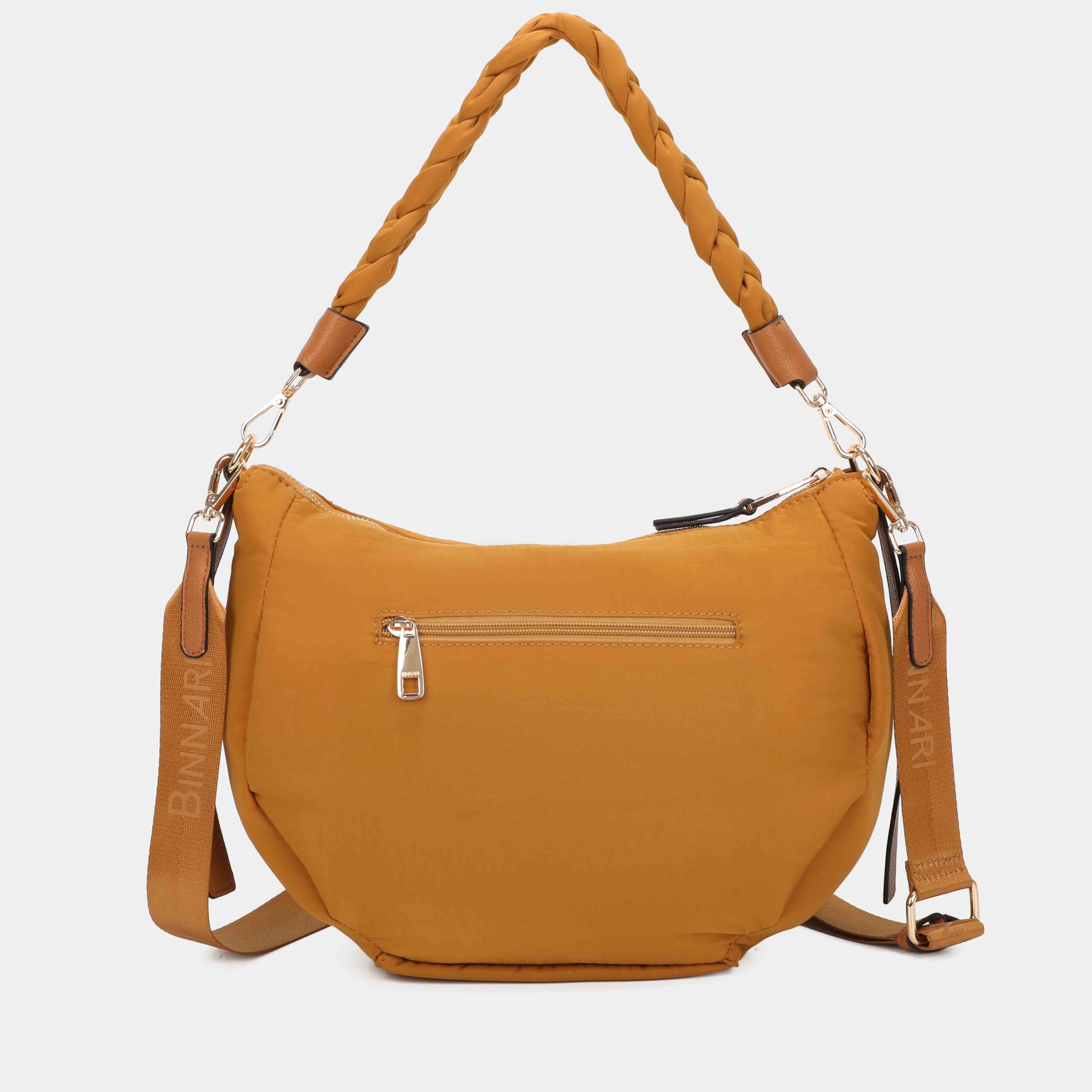 - Parte delantera: logo Binnari y bolsillo con cremallera