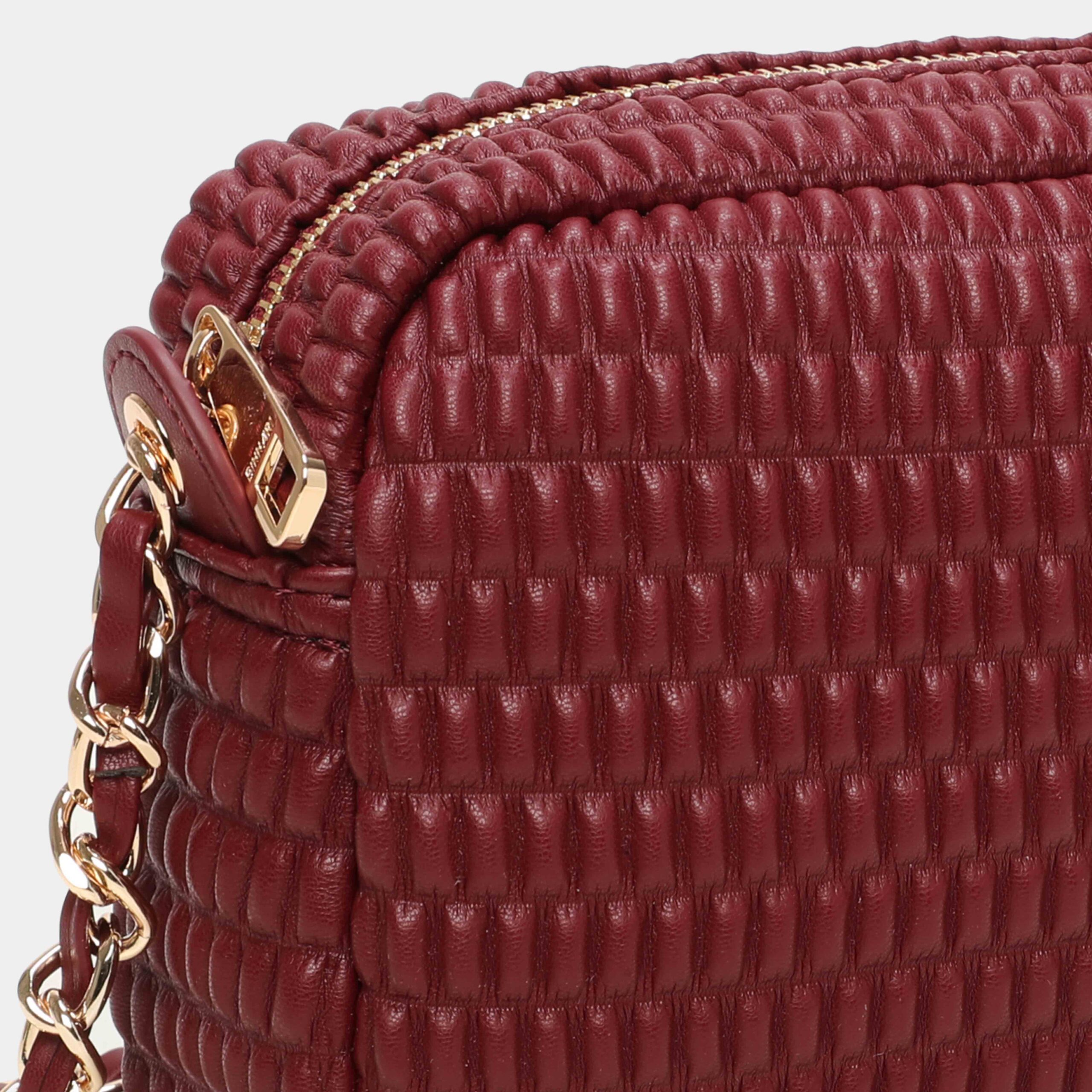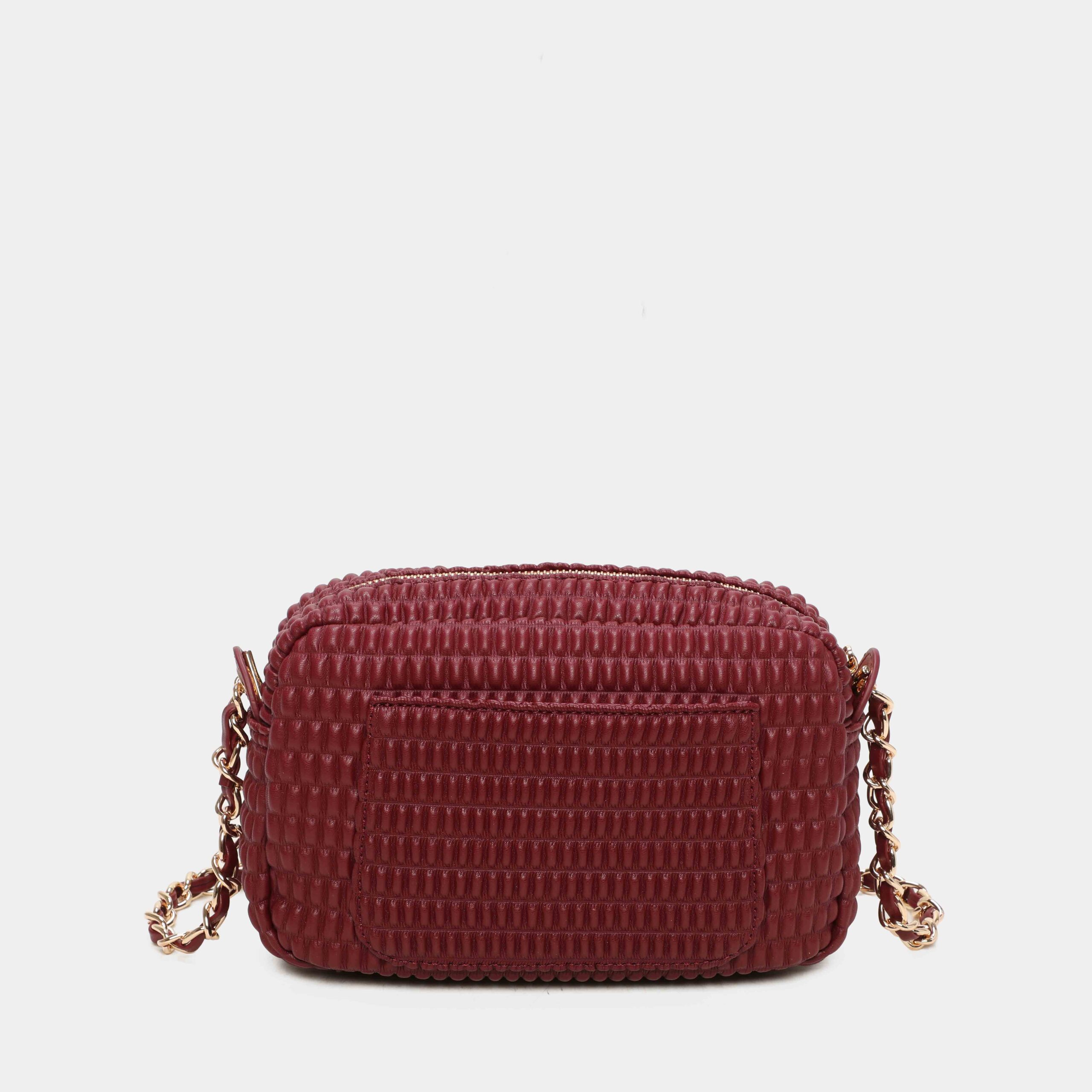 Bolso bandolera Patti disponible en negro, topo y bordo. Diseño confeccionado en pu acolchado de alta calidad.Parte delantera con el logo. Se accede a su interior por medio de una cremallera. En él encontramos varios bolsillos, uno de ellos con cremallera para mayor seguridad. El asa es ajustable y es de polipiel, a excepción de un trozo del lateral izquierdo y derecho que es cadena. Detalles metálicos en color oro claro