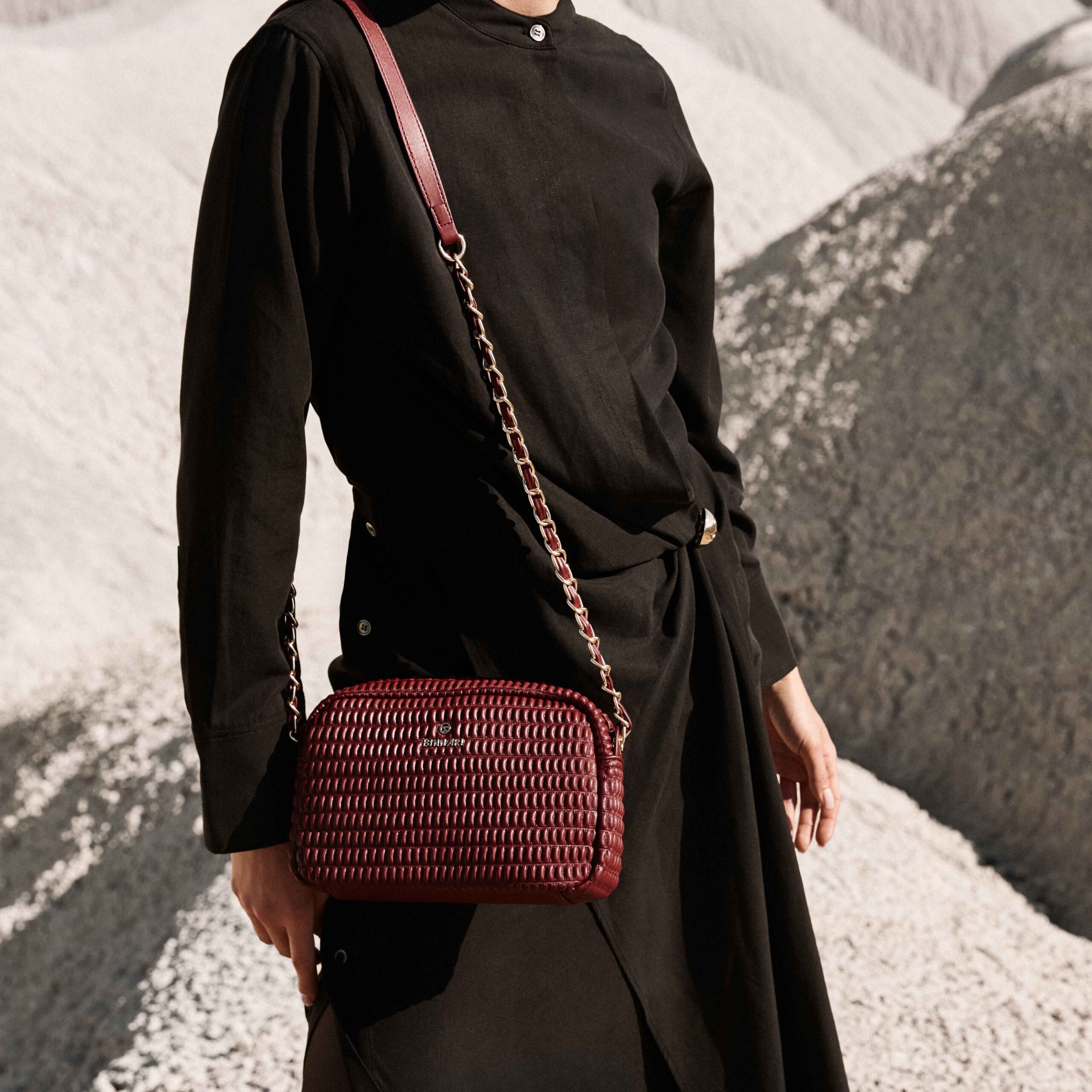 - Interior: cremallera principal en boca del bolso Cadena pasada con pu