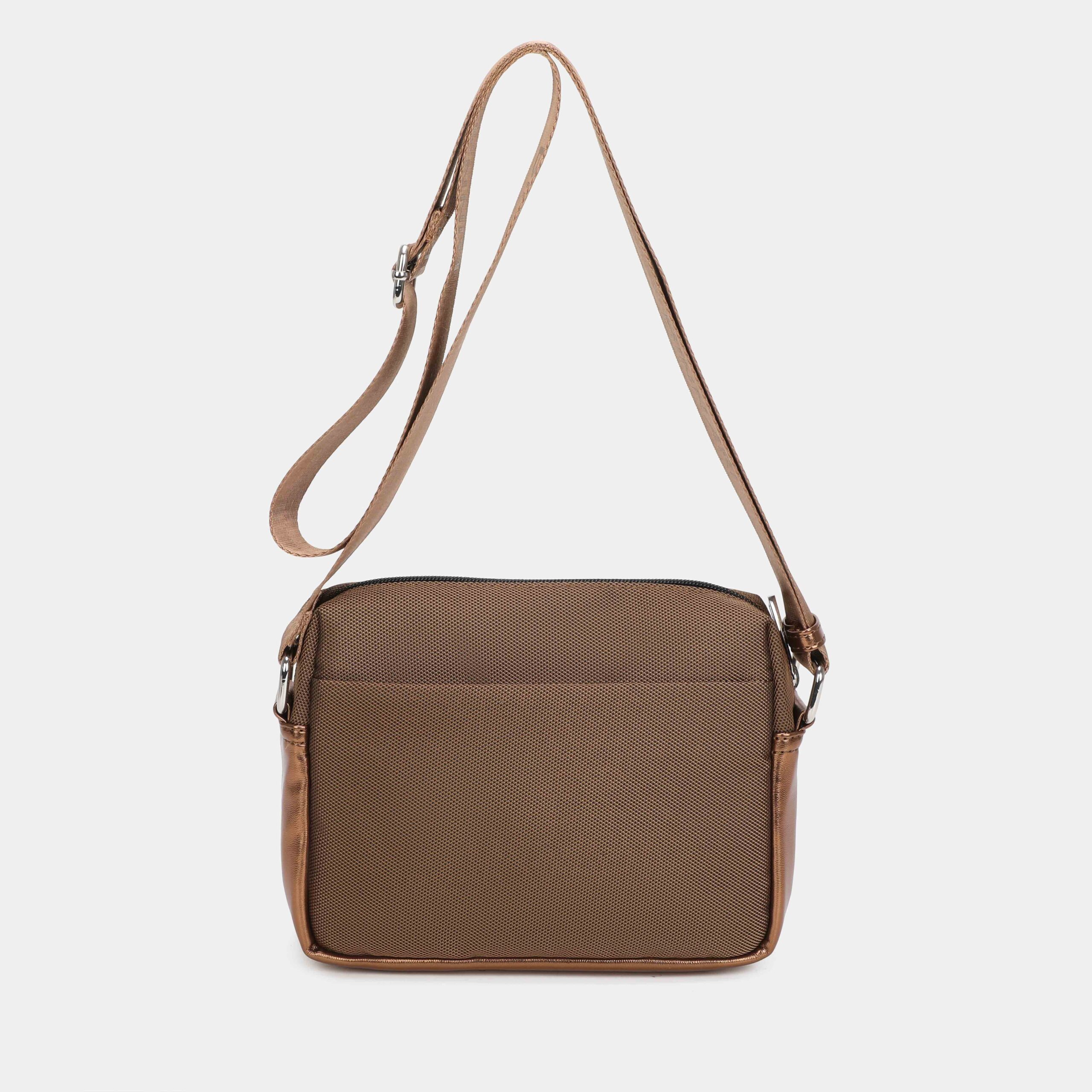 Bolso bandolera Emilie confeccionado en nylon cordura y de talles en pu de alta calidad. Está disponible en 4 colores: negro, toffee, cuero y taupe. En la parte frontal hay dos bolsillos con cremallera, además de un tirador decorativo. Se accede a su interior por medio de una cremallera superior. En él, encontramos 3 bolsillos. Sus asas son ajustables para mayor comodidad. ¡Una bandolera super versátil! Los detalles metálicos son de color nickel.