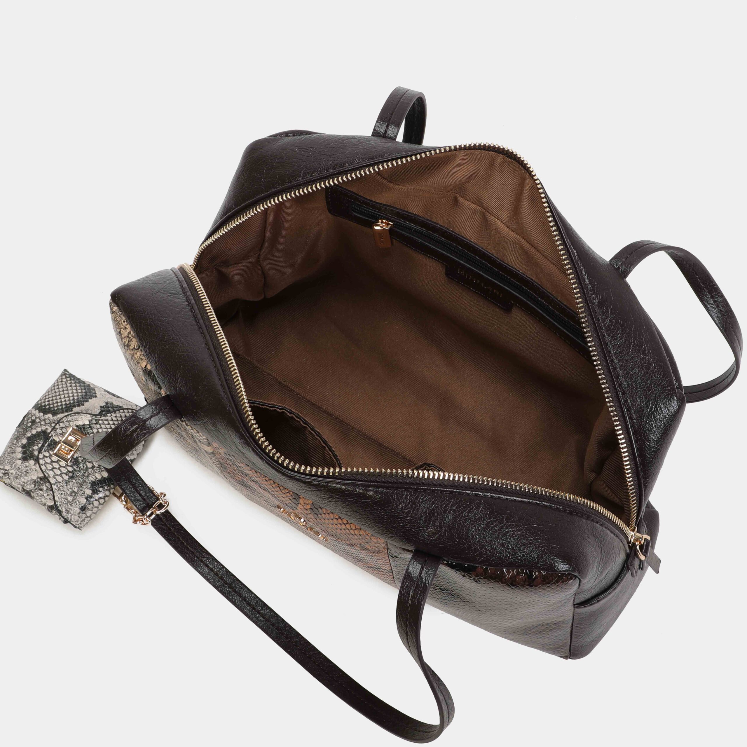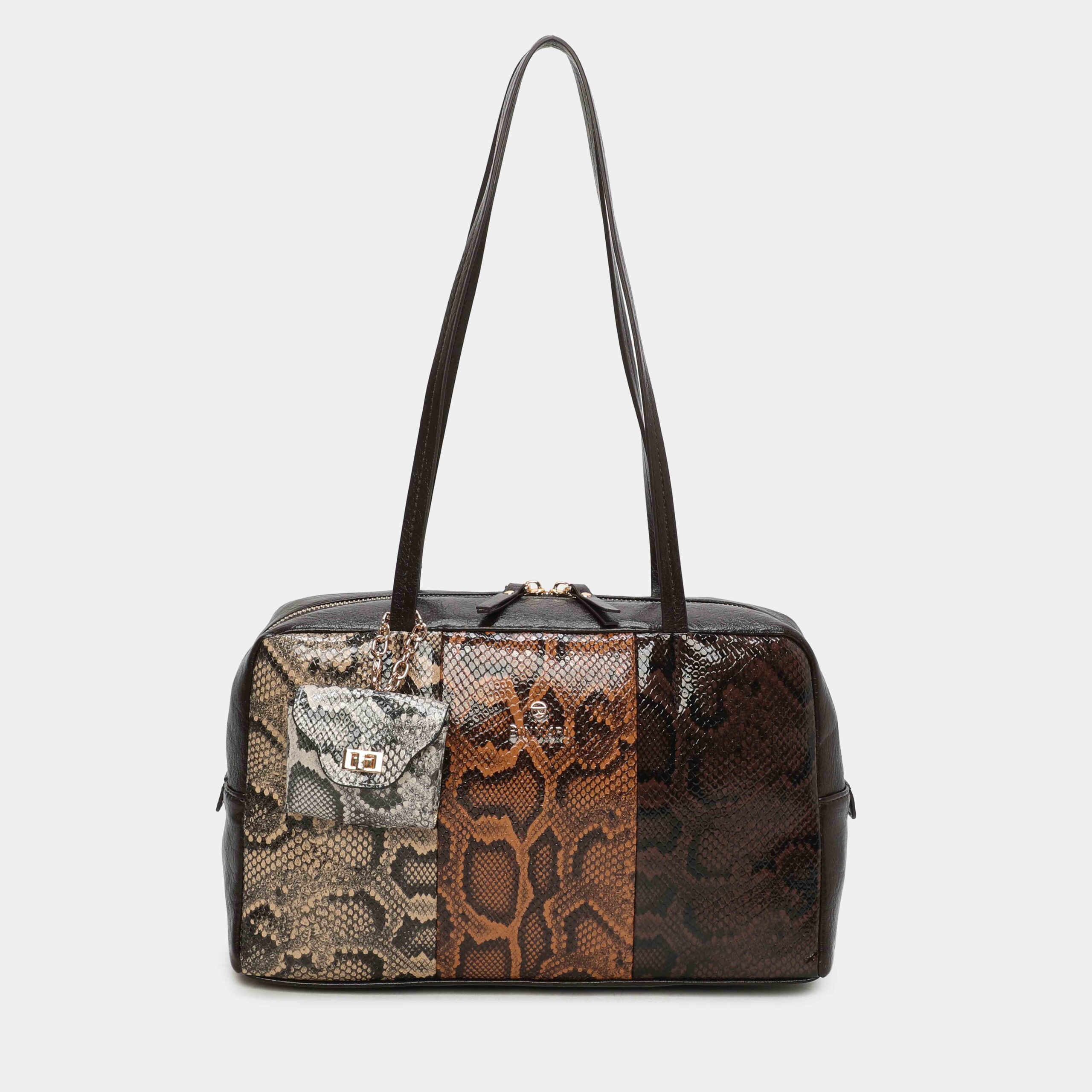 Si estás buscando un bowling de tamaño mediano pero con gran capcidad , nuestro bolso Levy es el acertado. Lo podrás encontrar en multi negro y multi marron. Lleva un charm decorativo en la parte delantera. Confeccionado en material sintético con efecto serpierte. Dos compartimentos interiores, uno de ellos con cremallera. ¡Top ventas!