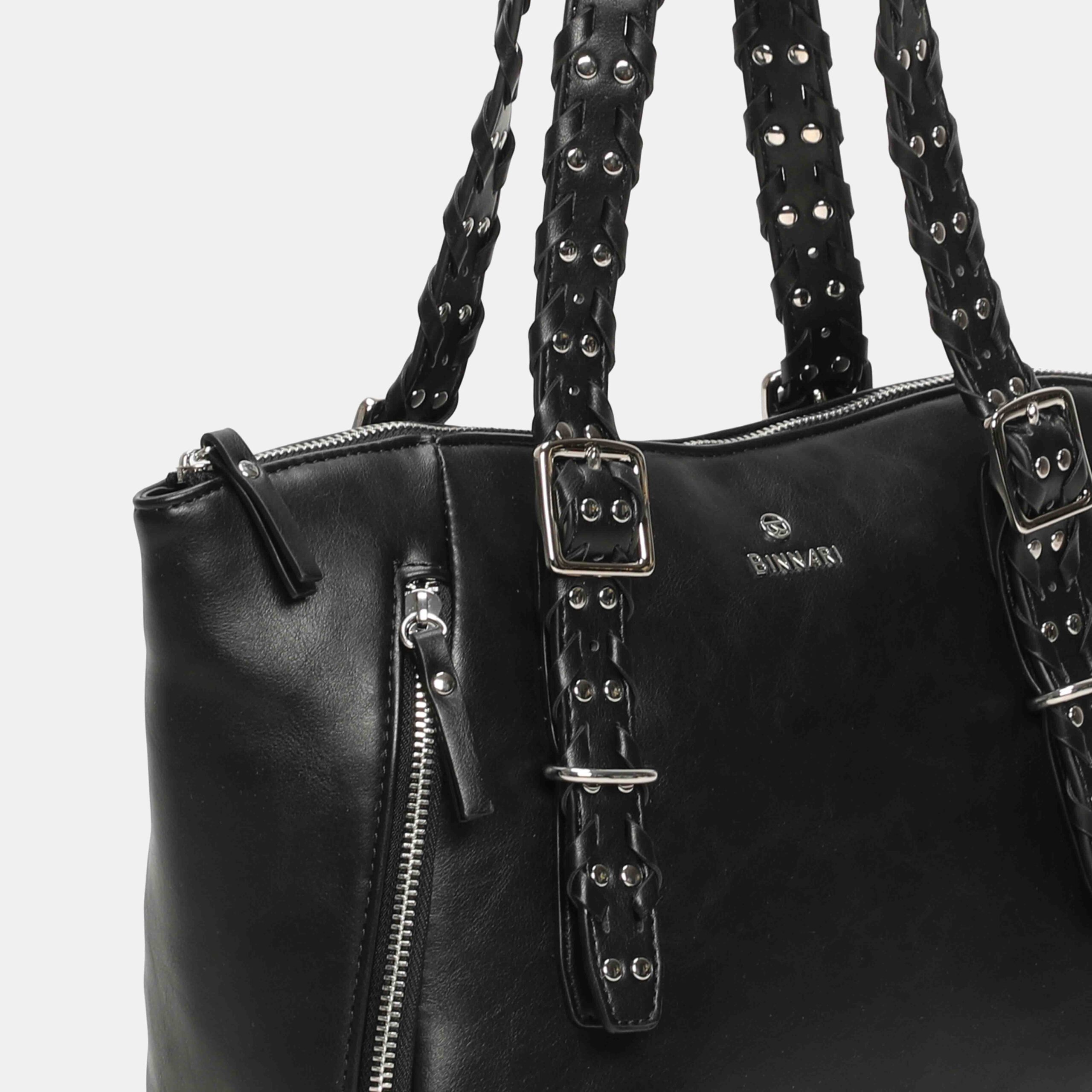 ¡Esta temporada las bolsos con detalles trenzados vienen pisando fuerte! Nuestro bolso 2 asas Isla está disponible en 3 colores. Tiene 1 bolsillo con cremallera Binnari en la parte trasera, así como un bolsillo grande que es el principal. Los detalles metálicos son de color nickel.