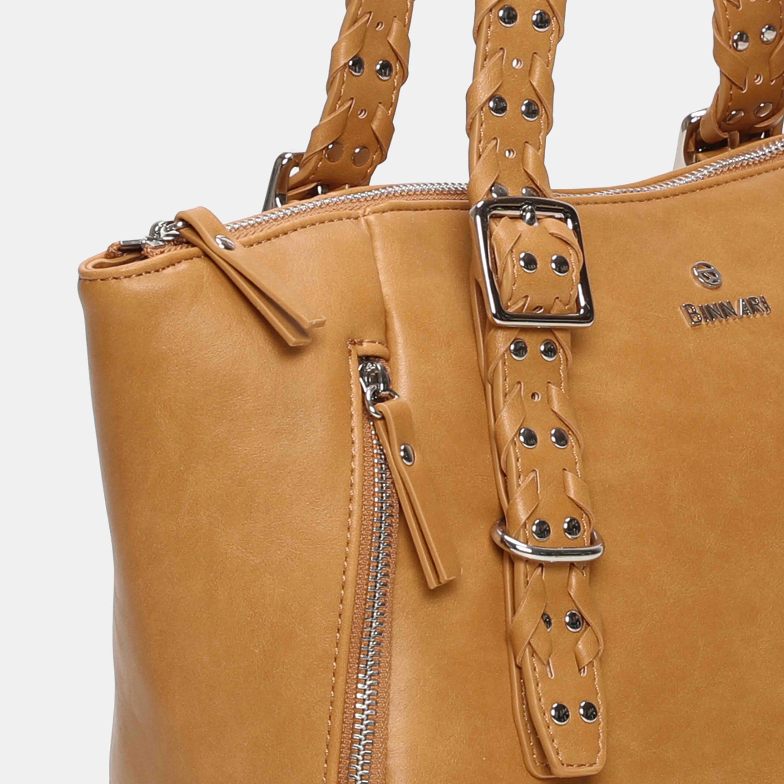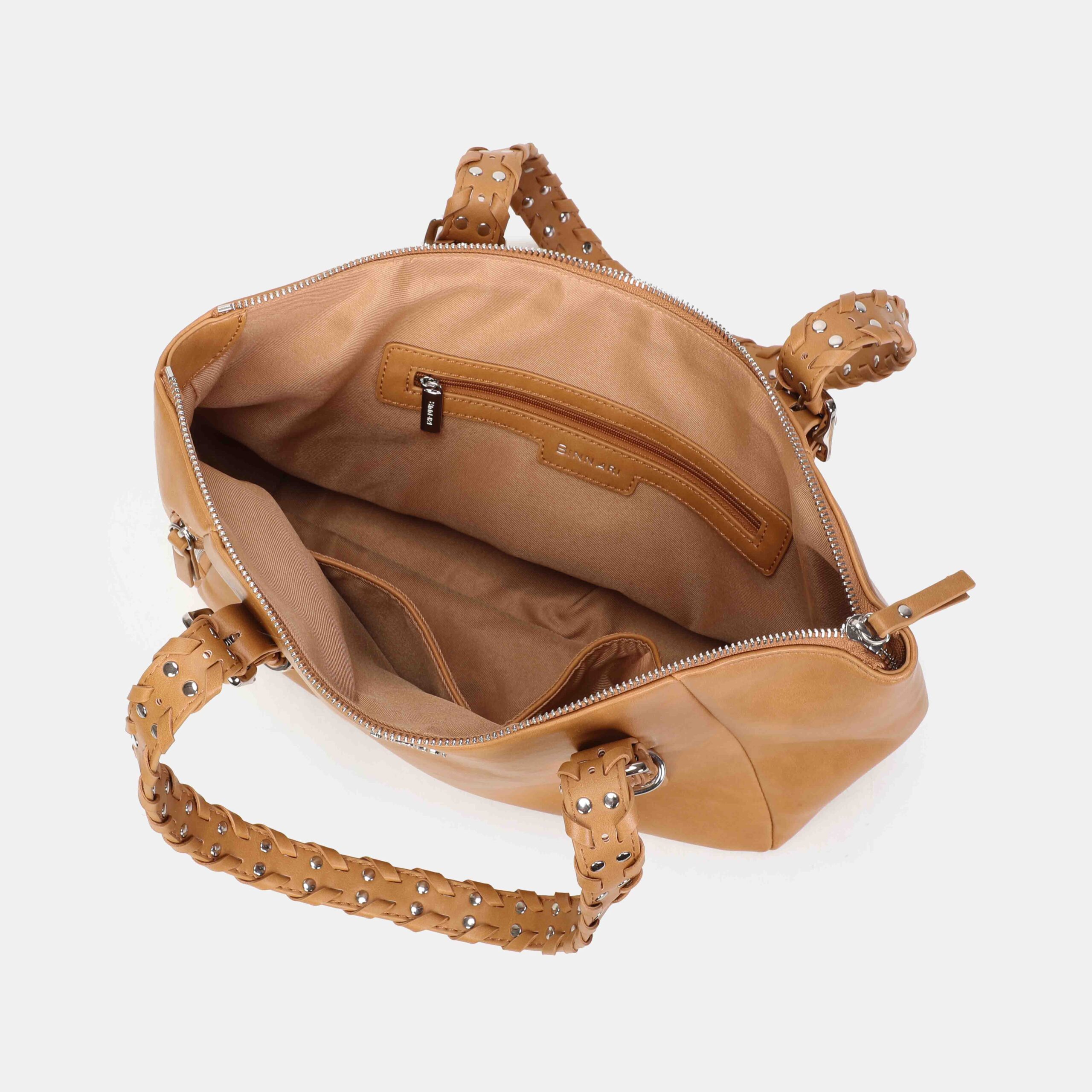 ¡Esta temporada las bolsos con detalles trenzados vienen pisando fuerte! Nuestro bolso 2 asas Isla está disponible en 3 colores. Tiene 1 bolsillo con cremallera Binnari en la parte trasera, así como un bolsillo grande que es el principal. Los detalles metálicos son de color nickel.