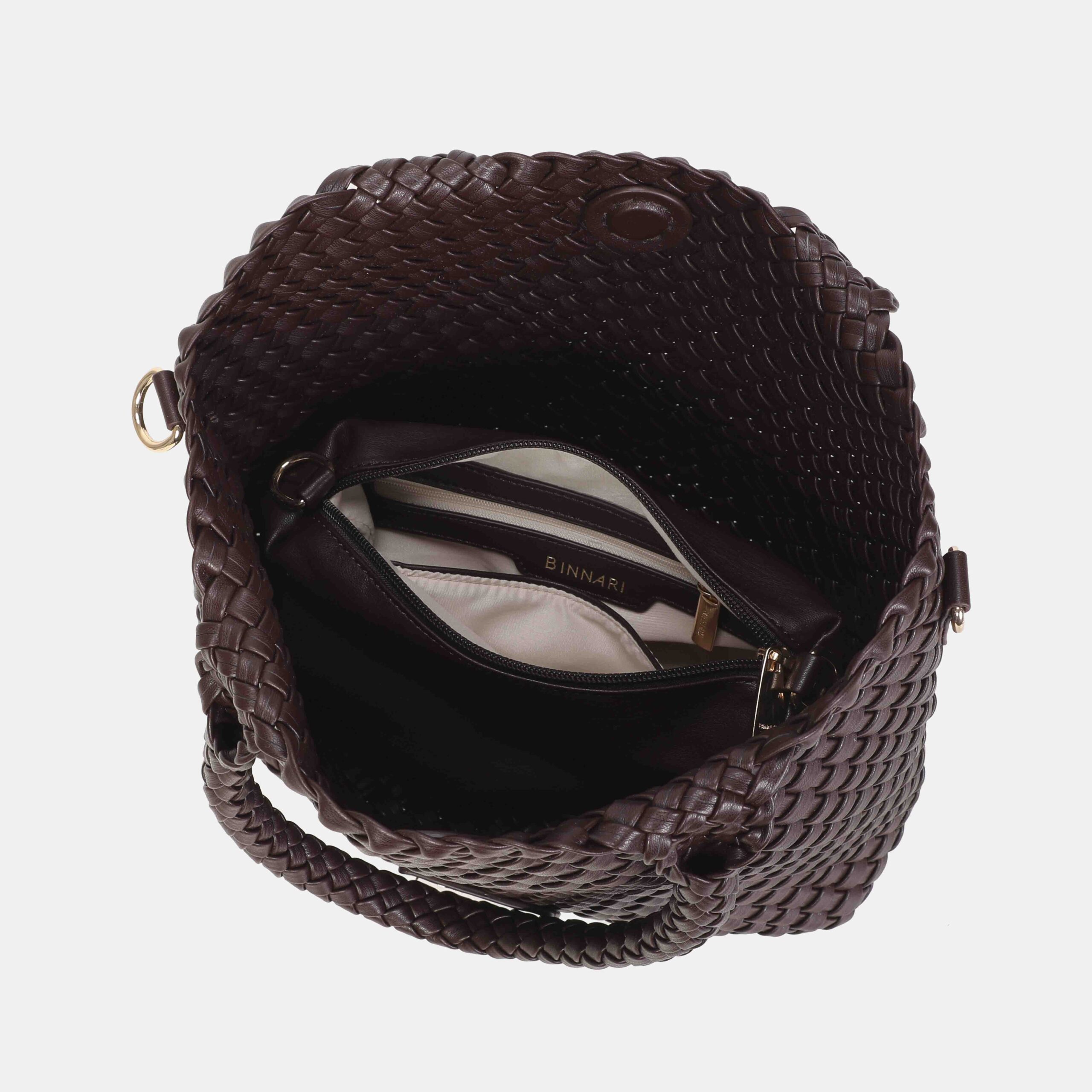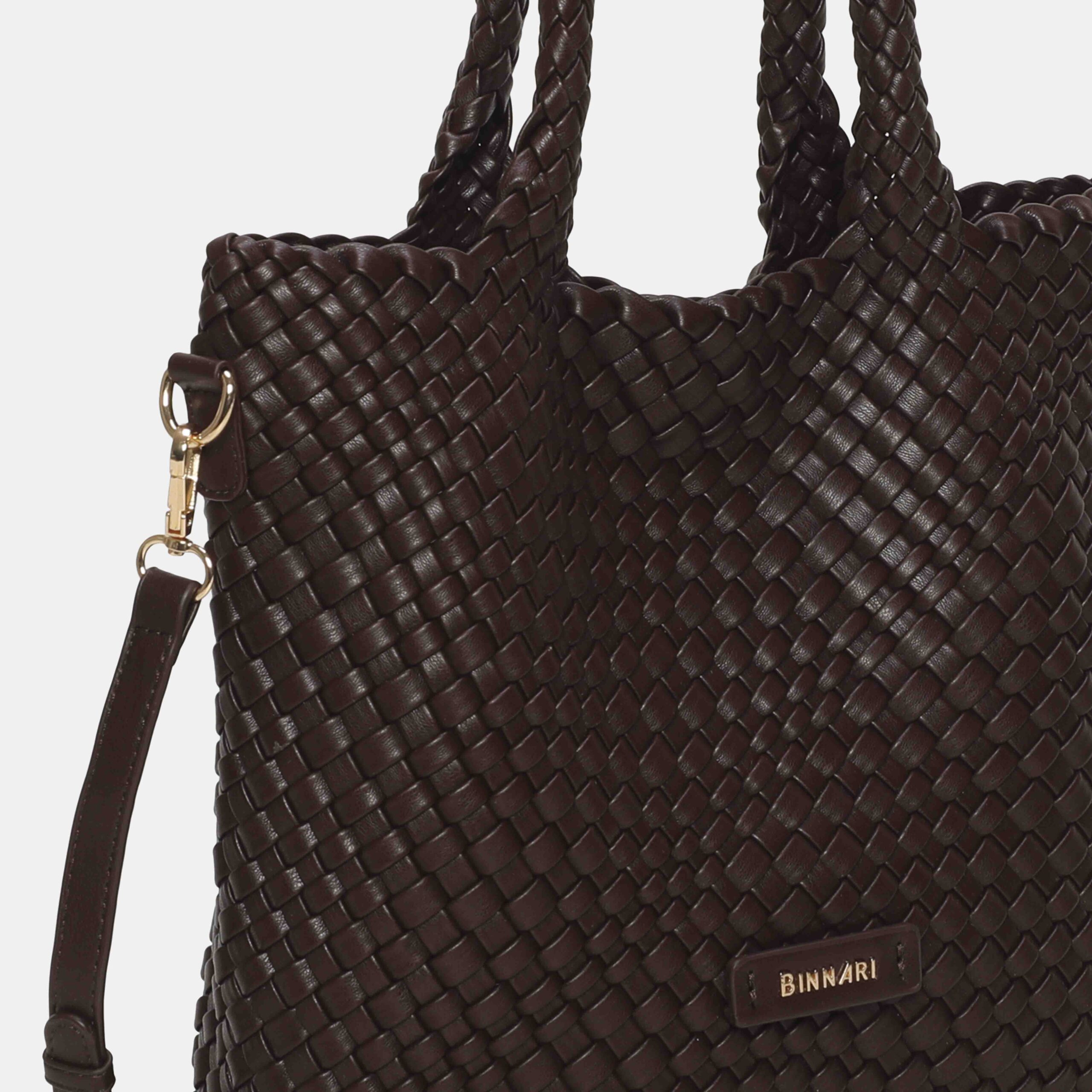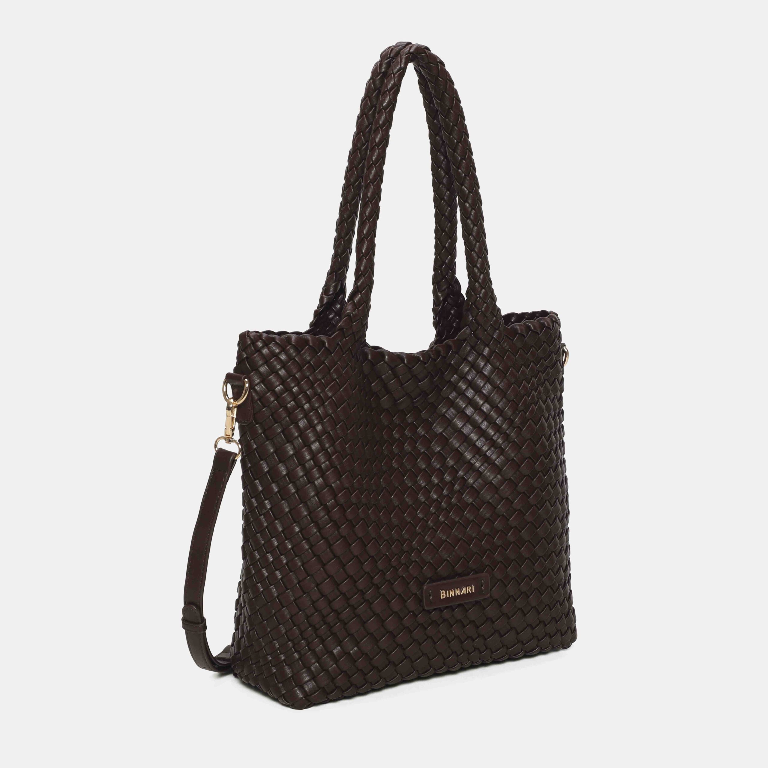 Bolso de tamaño mediano confeccionado en PU trenzado, con un diseño ligero, moderno y muy versátil. Cuenta con dos asas superiores para llevar al hombro y una correa ajustable y removible para usarlo como bandolera cuando lo necesites. Sus detalles metálicos en tono oro claro aportan un acabado elegante. ¡Un accesorio imprescindible para completar tus looks esta temporada!