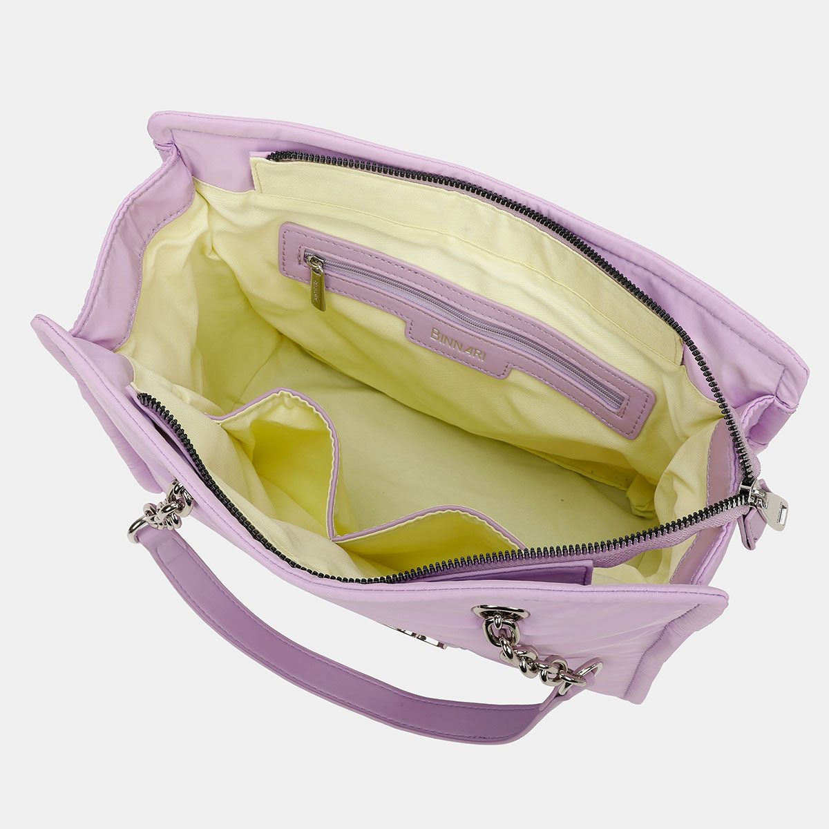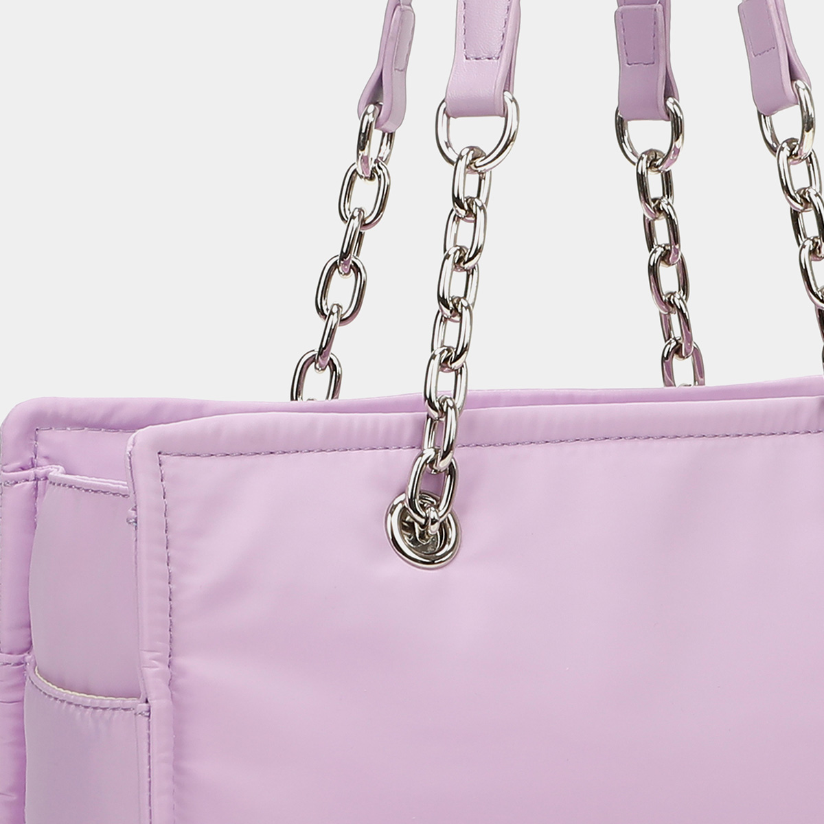 El bolso 2 asas Nora cuenta con un compartimento principal con cierre con cremallera superior. En su interior encontramos tres bolsillos adicionales, uno de ellos con cremallera.Las asas están hechas con eslabones que recorren toda la parte superior del bolso a través de ojales metálicos, con una parte en polipiel para mayor comodidad. Este shopper cuenta con gran capacidad en su interior para llevar todo lo que necesites contigo.