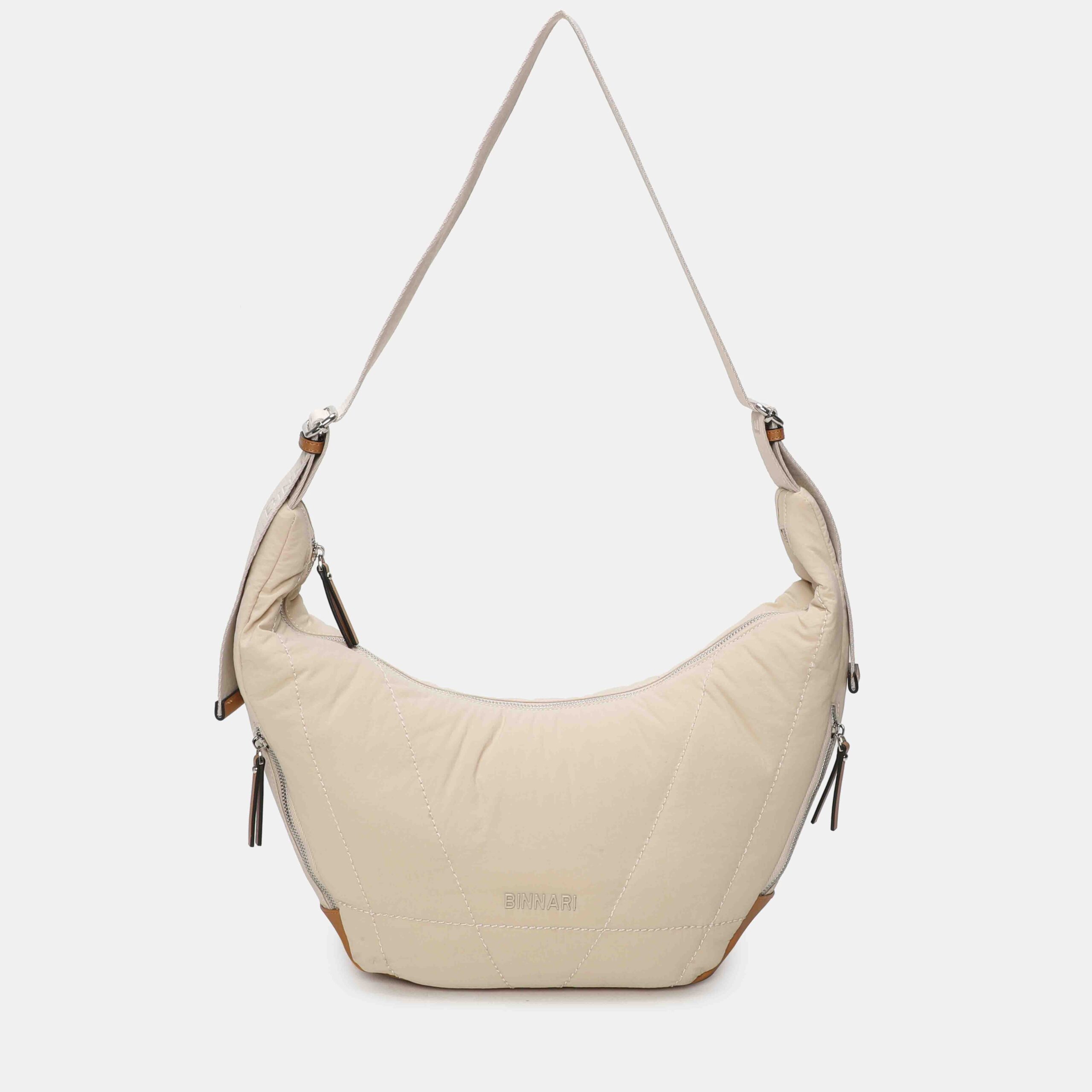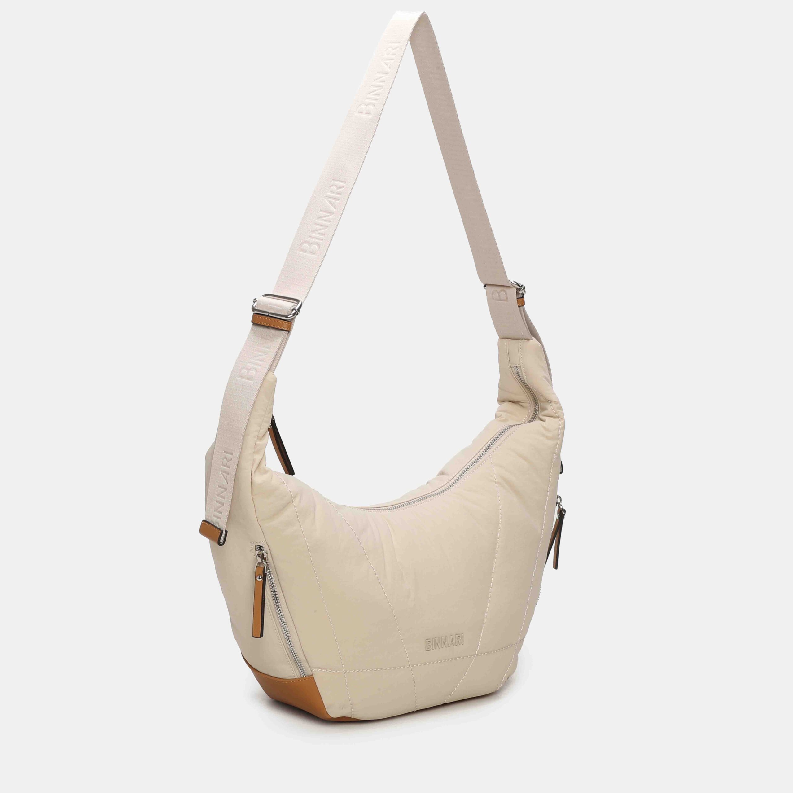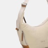 Este bolso hobo destaca por su silueta relajada y súper cómoda, confeccionado en nylon ligero con refuerzos en PU. Su diseño incluye bolsillos laterales con cremallera, perfectos para tener a mano lo esencial, y una correa ancha regulable que permite llevarlo al hombro o en bandolera. Práctico, espacioso y muy fácil de combinar, es un modelo ideal para el día a día.