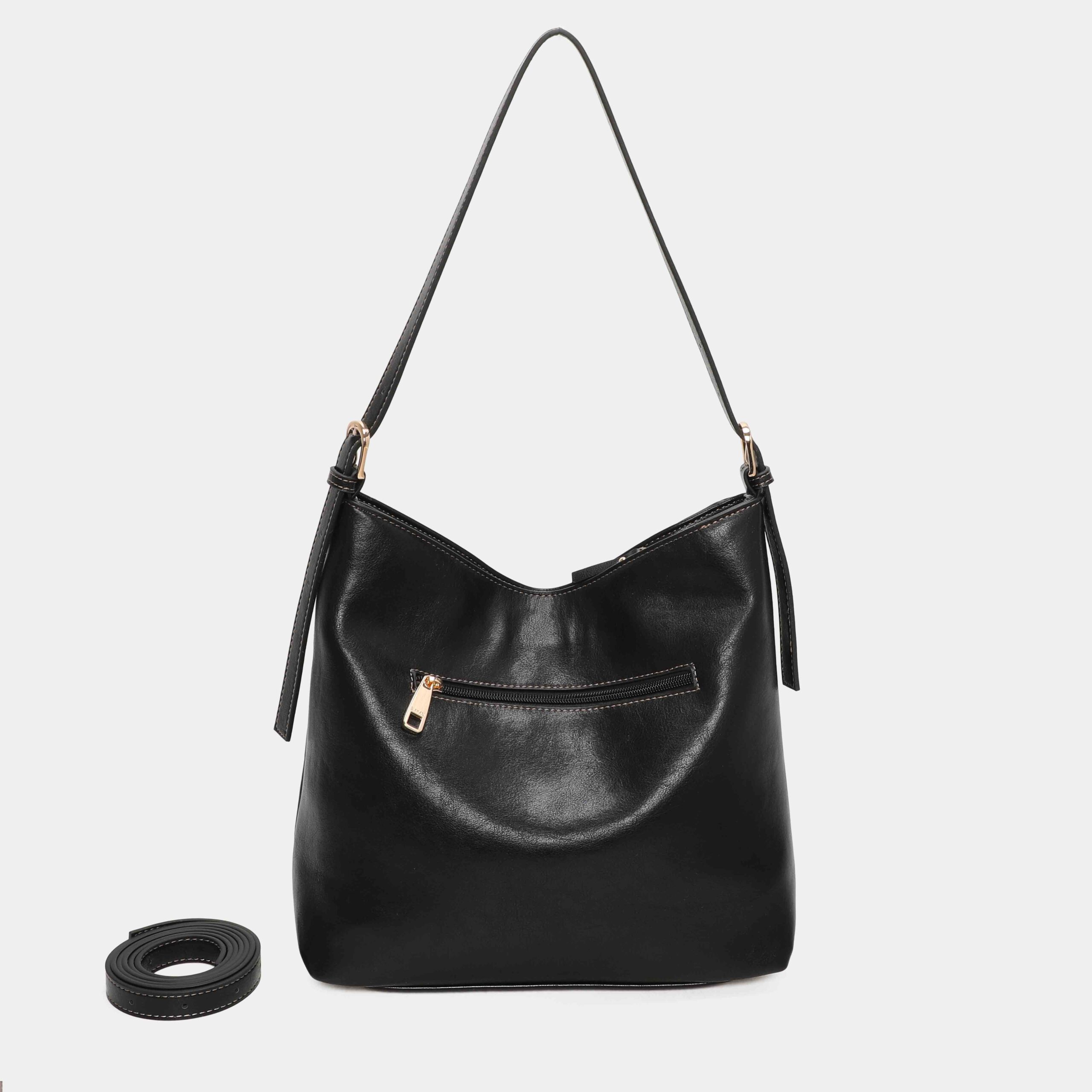 Bolso hombro Fanny confeccionado en pu de alta calidad. Está disponible en 3 colores.2 posciones; de hombro o como bandolera gracias al asa ajustable que lleva en su interior. Se accede al interior por medio de una solpa. En el encontramos un bolsillo con cremallera. Detalles decorativos en color oro claro.