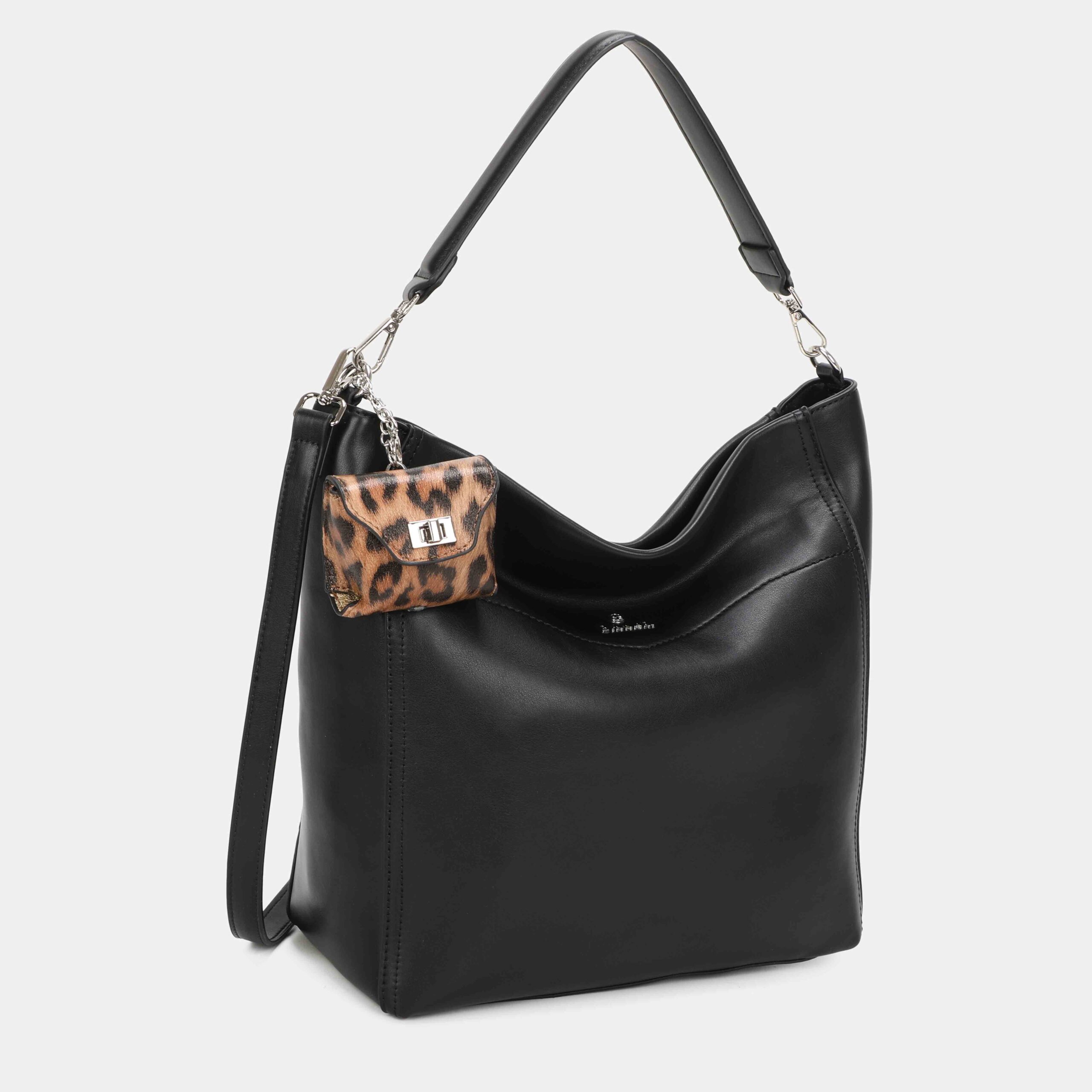El bolso de hombro Glen te sacará de cualquier apuro esta temporada. Bolso versátil y cómodo que lo podrás combinar con todos tus outfits de invierno.Se accede a su interior por medio de una cremallera superior en la cual encontraras diferentes bolsillos en su interior, un o de ellos con cremallera. En la parte frontal tiene un bolso extraible que podrás utilizarlo para guardas las llaves o auriculares. Está confeccionado en pu y antelina. Toda sus detalles matálicos son de color nickel.