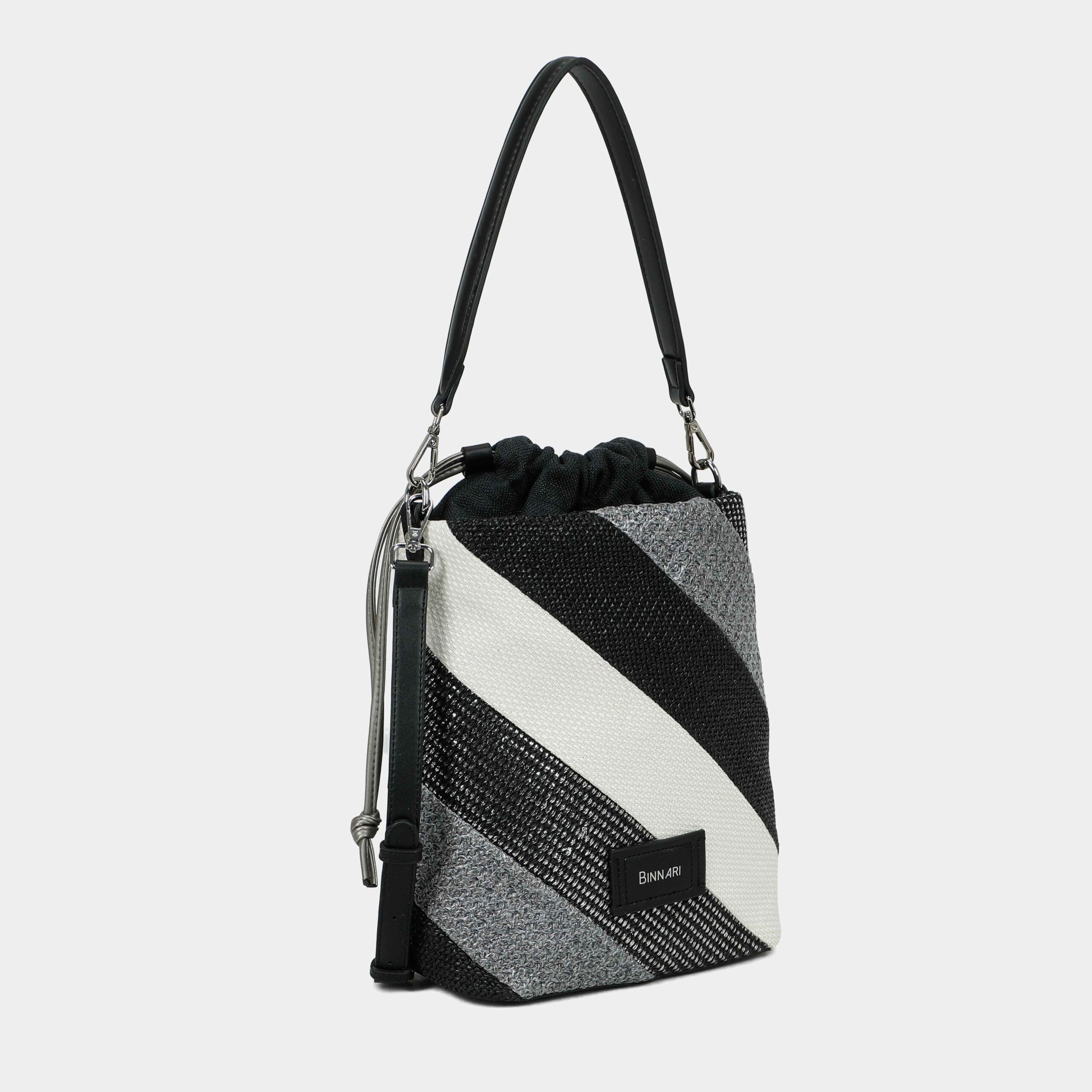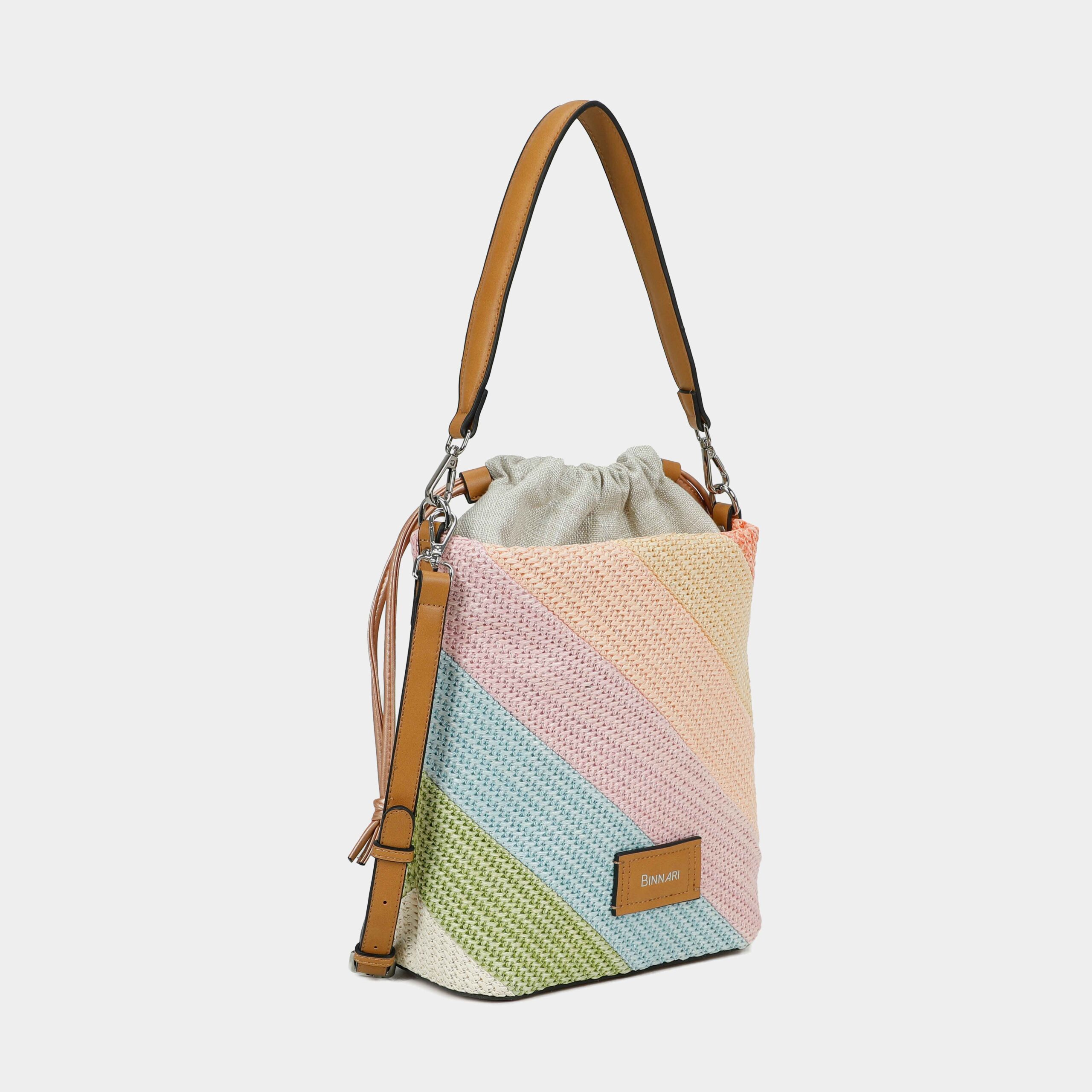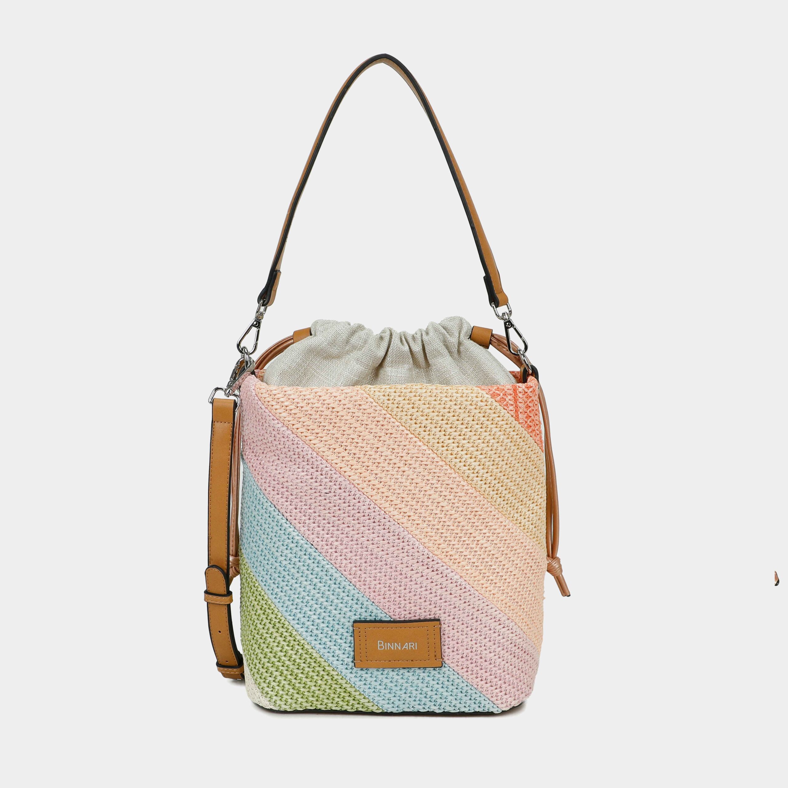 Bolso hombro Narcea confeccionado em rafia. Está disponible en 3 colores:multi color, multi metal y multi negrol . En el exterior tiene el chapón Binnari.Lleva en su interior una bolsa textil. Un bolso todoterreno que te podrá acompañar todos los días de verano.