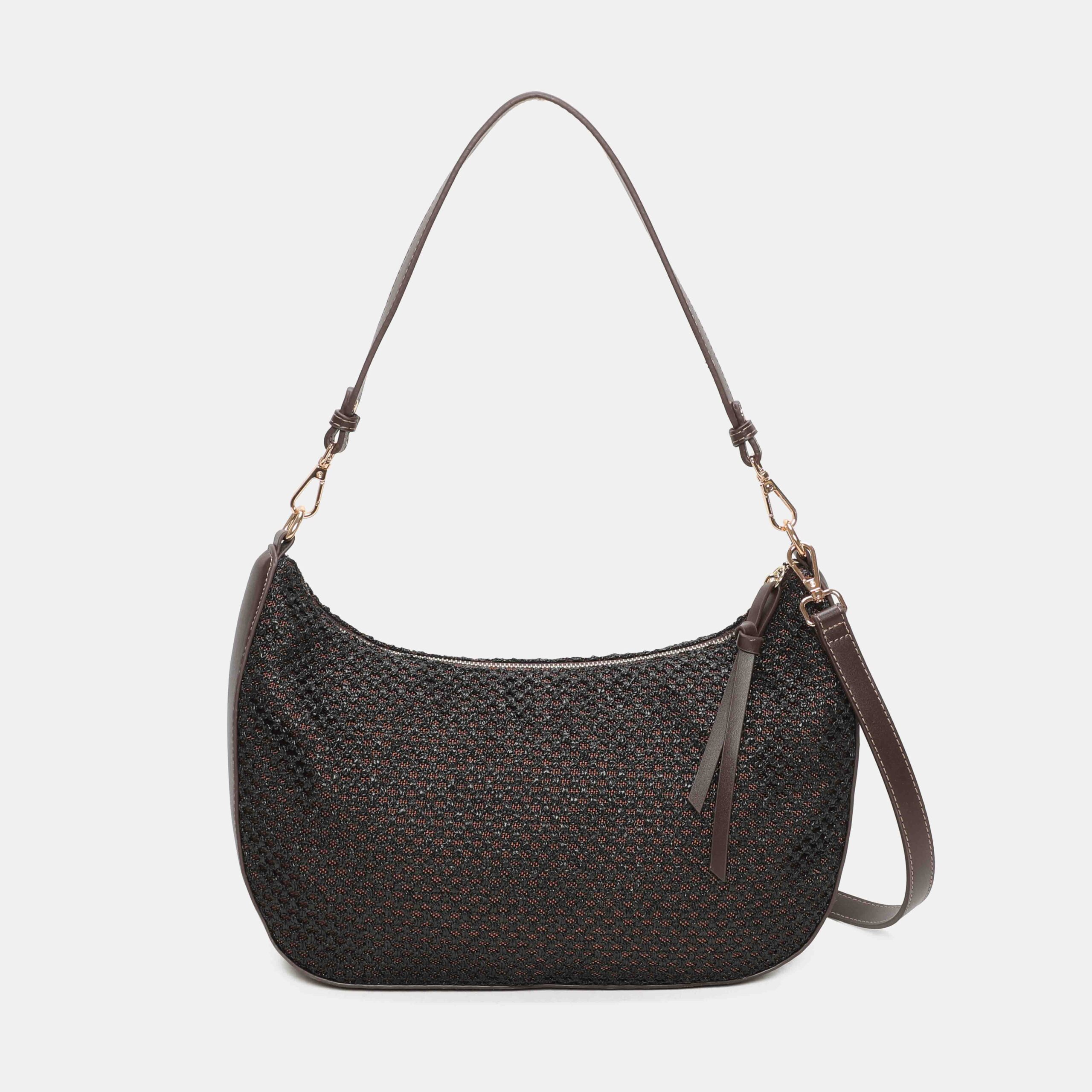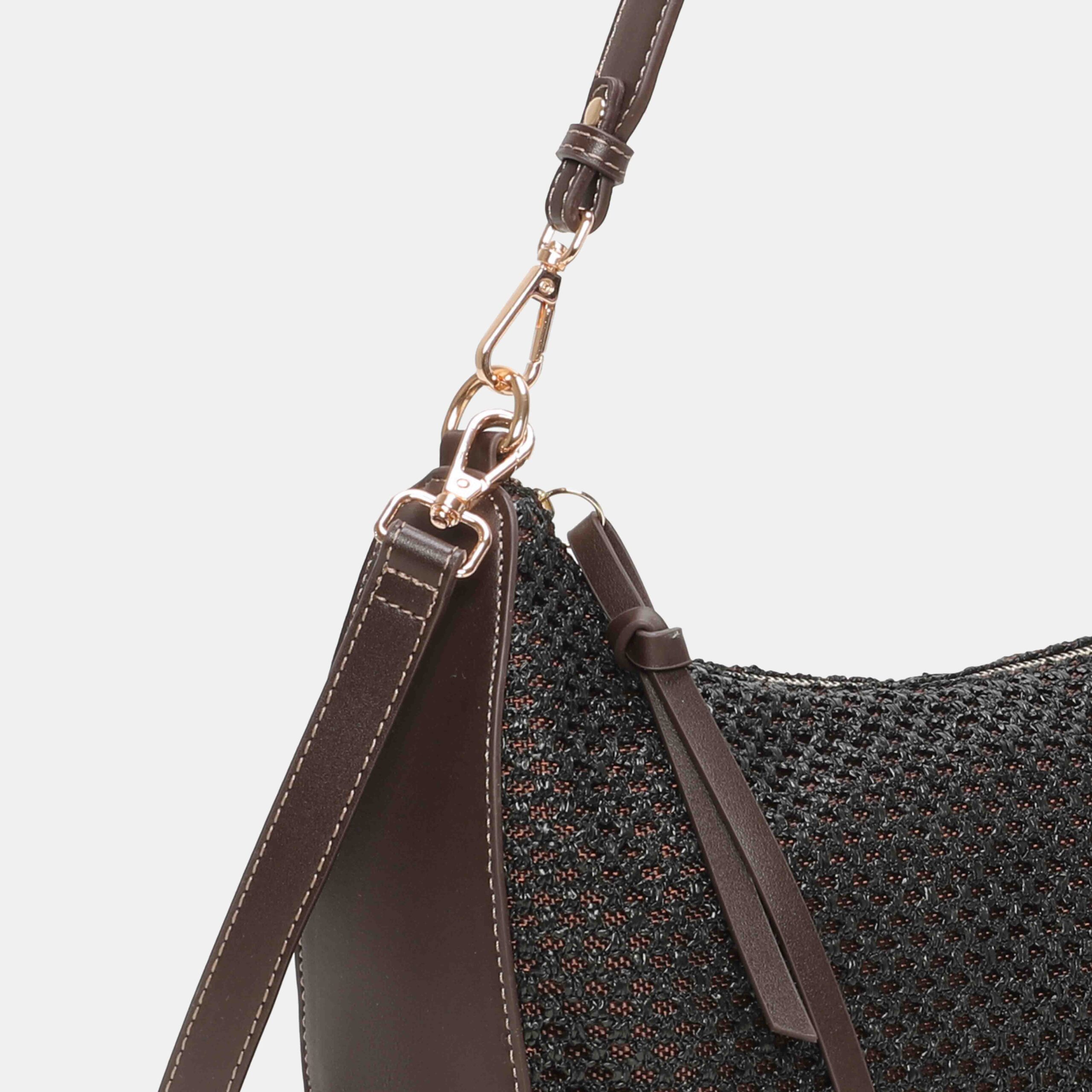 Bolso hombro pequeño Lia disponible en rafia y nylon, De tamaño mediano, tiene 2 posciones; hombro y bandolera gracias al asa ajustable de su interior. Se accede a su interior por medio de una cremallera. En él, encontramos 3 bolsillos, uno de ellos con cremallera.¿Qué te parece?