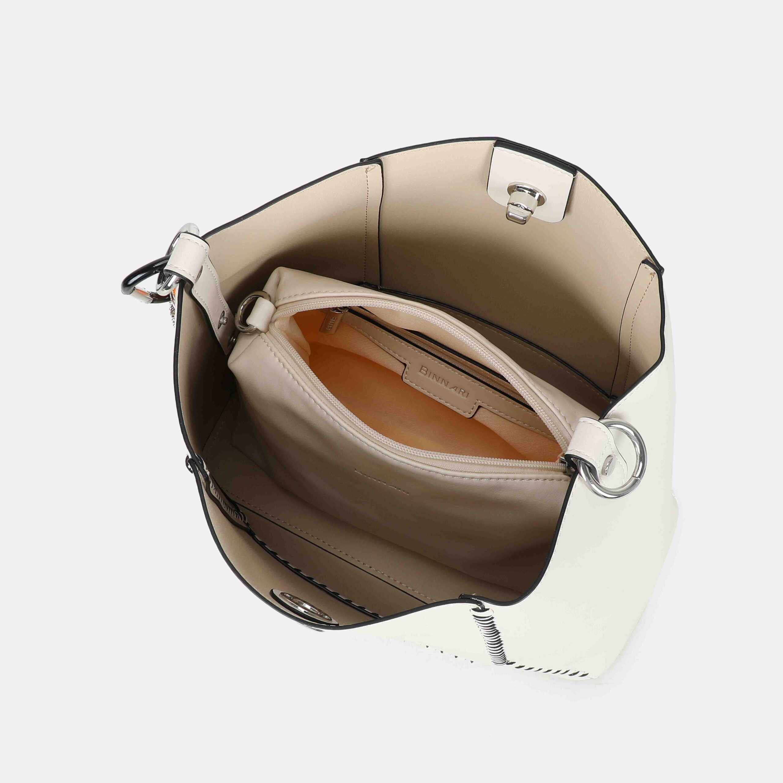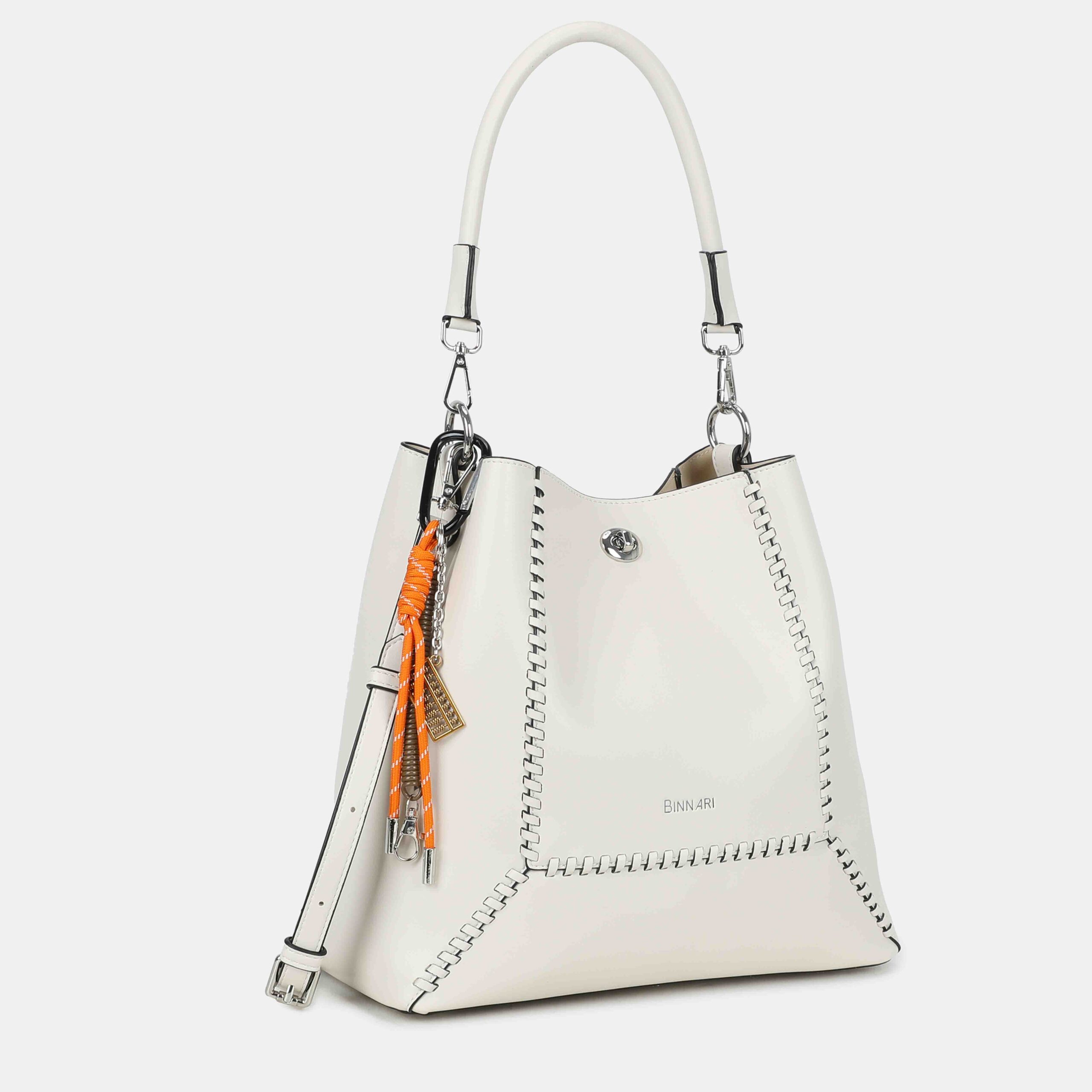 - Exterior: logo Binnari y colgante decorativo extraible