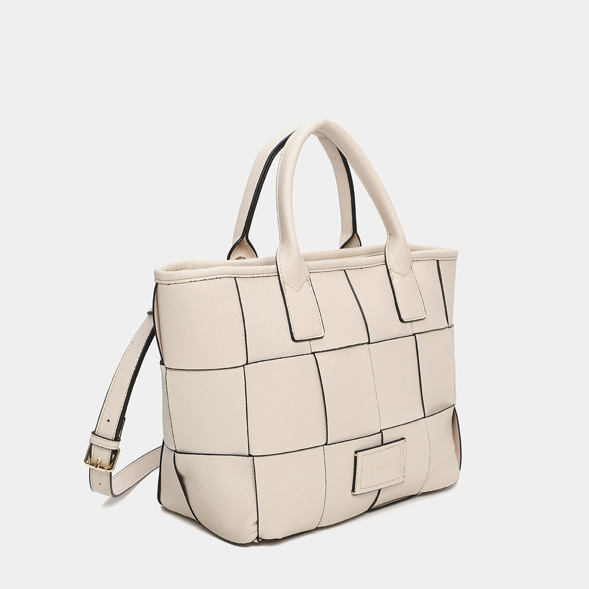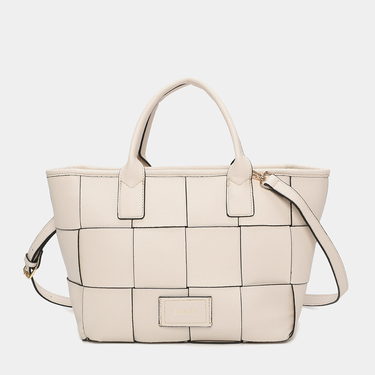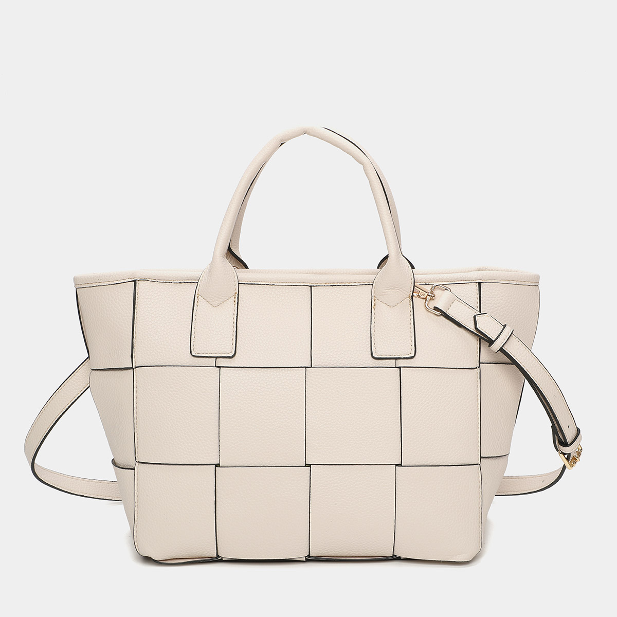 Bolso de mano Jara disponible en cava, hielo, multi y naturalr ¿con qué color te quedas tú? Es un bolso muy práctico que se puede llevar a cualquier parte.. Llévalo tanto de mano como también de bandolera. Esta confeccionado en pu tranzado. Los detalles metálicos son de color oro claro.