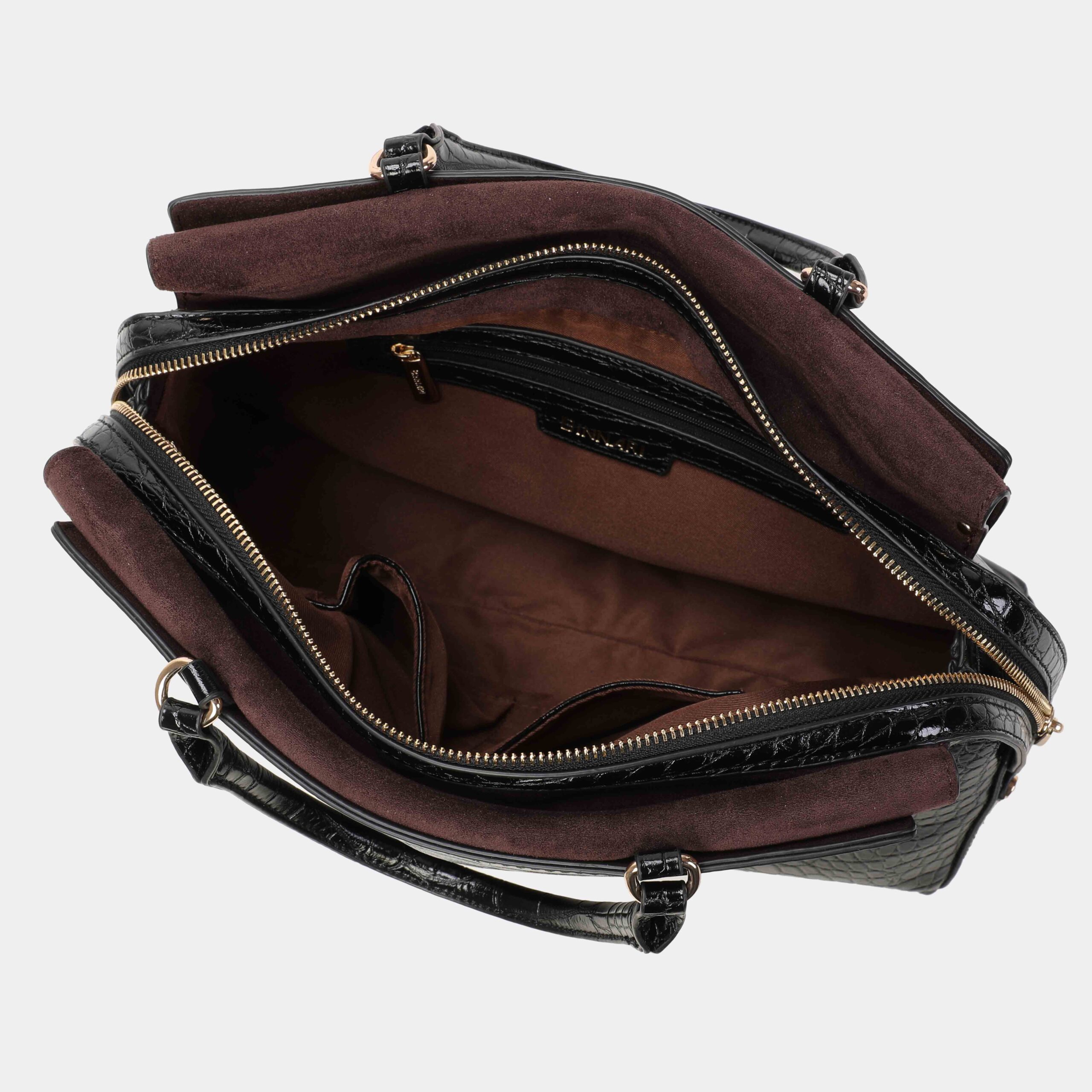 Bolso de mano Mandy confeccionado en coco sintético, además de detalles en antelina. Está disponible en color negro, cuero y marrón. De tamaño mediano pero capaz de guardar todo lo necesario. Bolso super práctico para el día a día. Se accede a su interior por medio de una cremallera . En él, encontramos 3 bolsillos, uno de ellos con cremallera.Cuenta con dos posiciones, mano y bandolera.