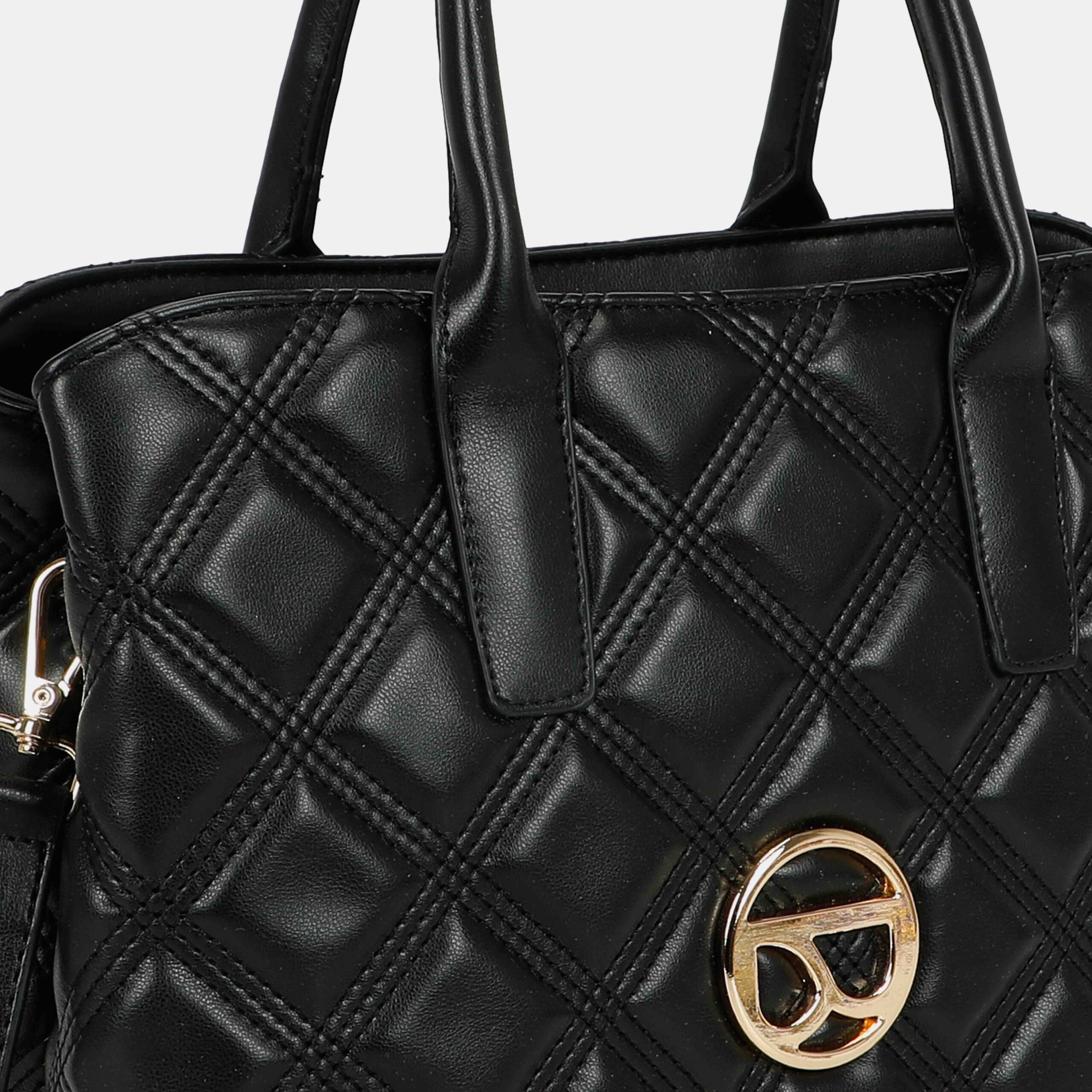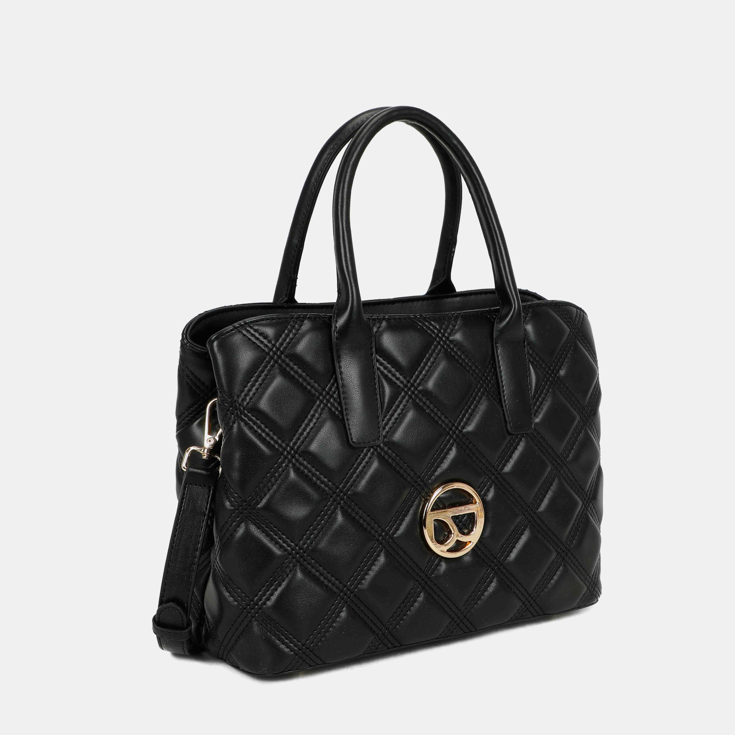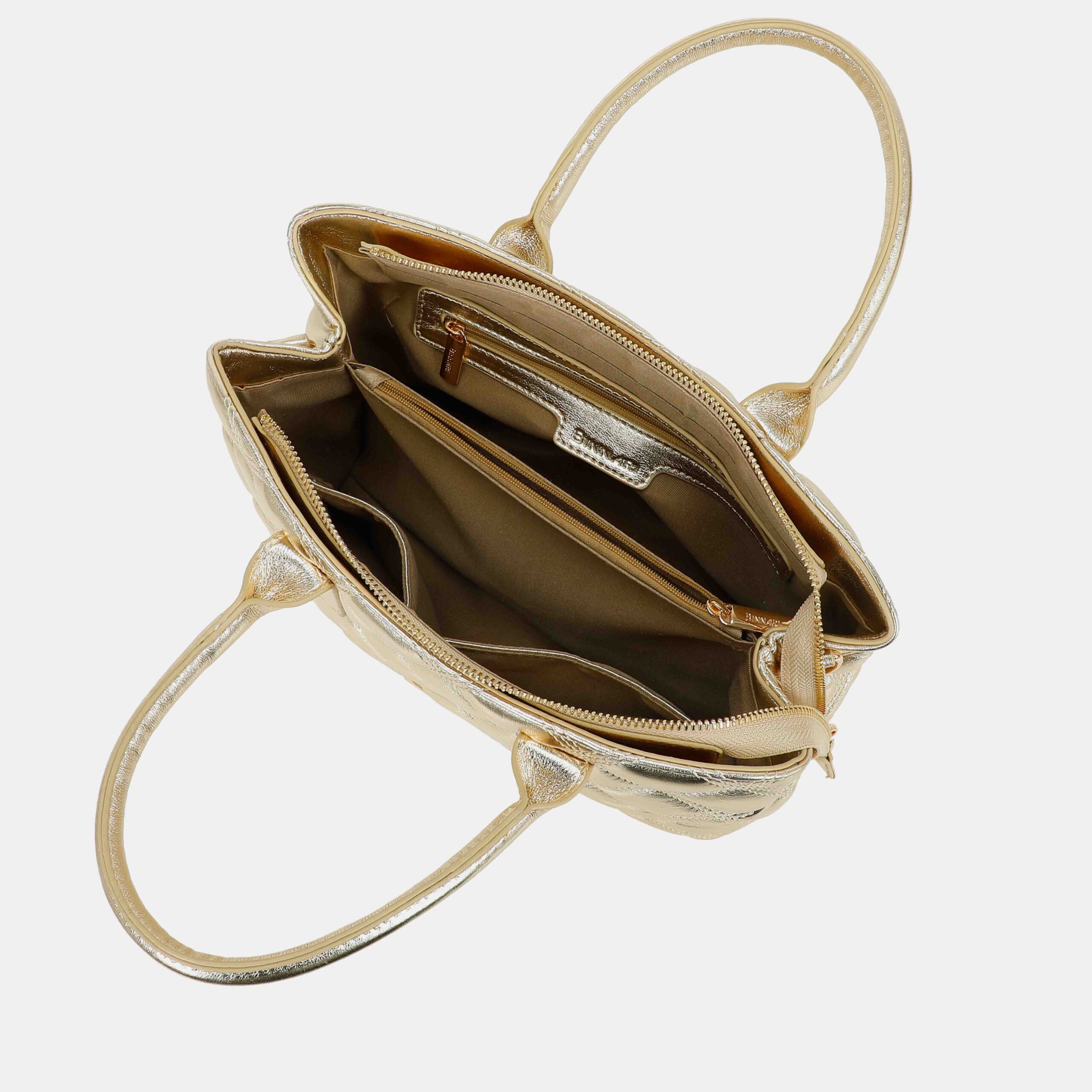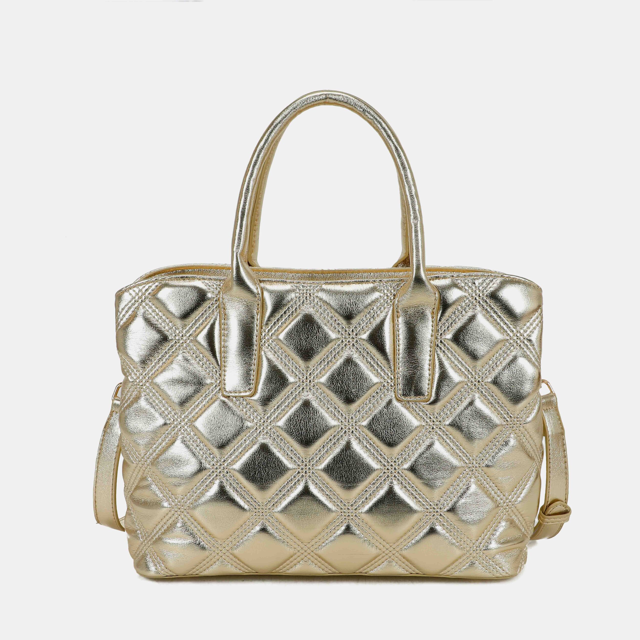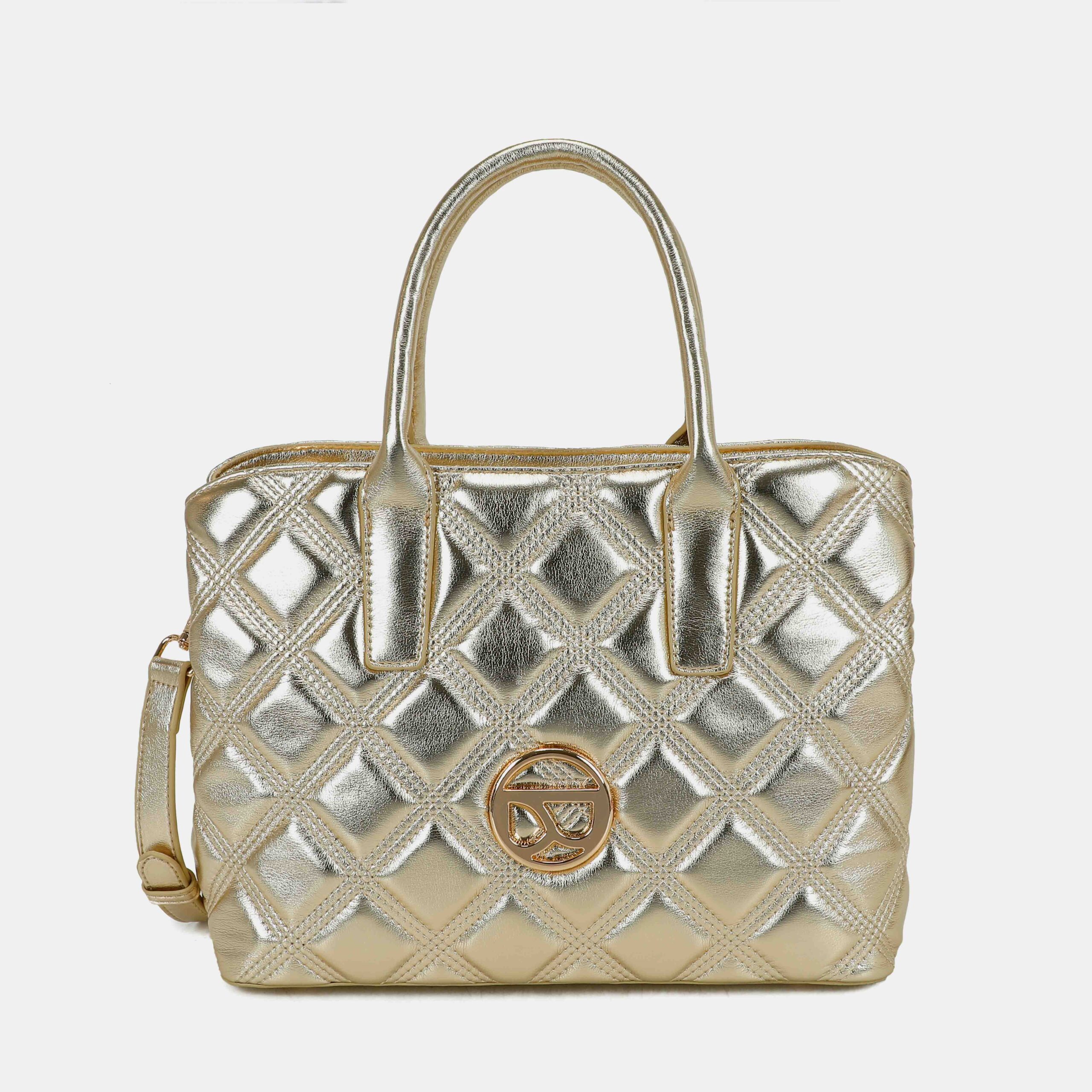 Bolso mano Tula confeccionado en pu acolchado de alta calidad. . Disponible en 3 colores. Tiene 3 compartiemntos en su interior, uno de ellos con cremallera, poatando así mayor seguridad.Además tiene un asa en su interior para poder llevarlo como bandolera, 2 en 1. Los detalles decorativos son de color oro claro.