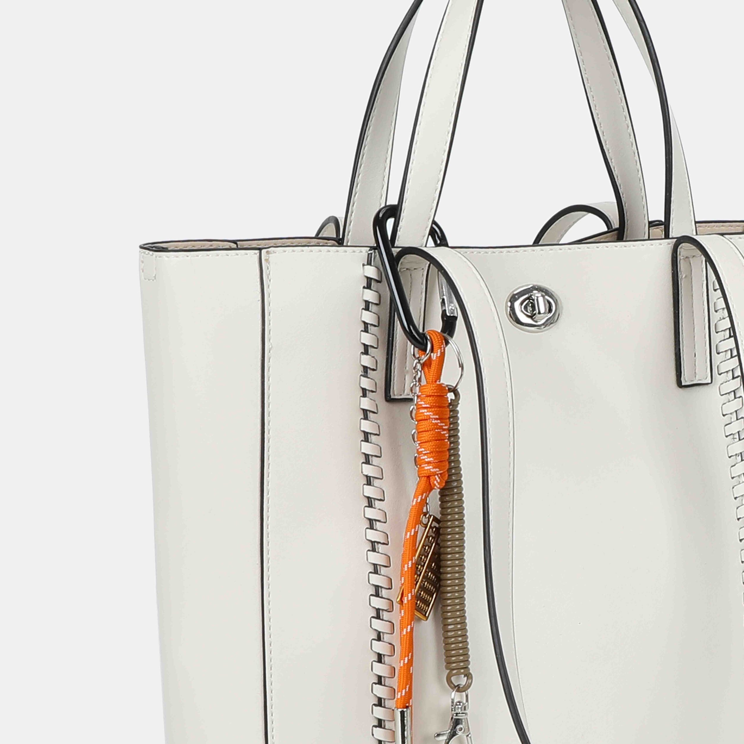 Con un aire muy actual y un acabado impecable, este bolso en PU de alta calidad destaca por su detalle trenzado que perfila toda la pieza con un toque artesanal. Lleva un colgante decorativo que suma personalidad y color. Cuenta con doble asa para llevarlo en la mano o al hombro, además de correa ajustable para bandolera. Un modelo amplio, resistente y perfecto para acompañarte en el día a día.
