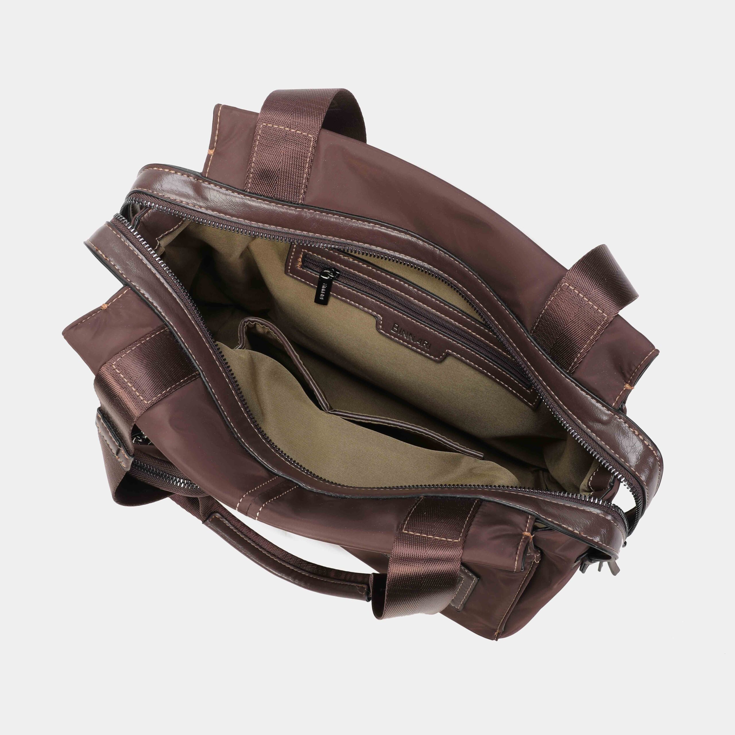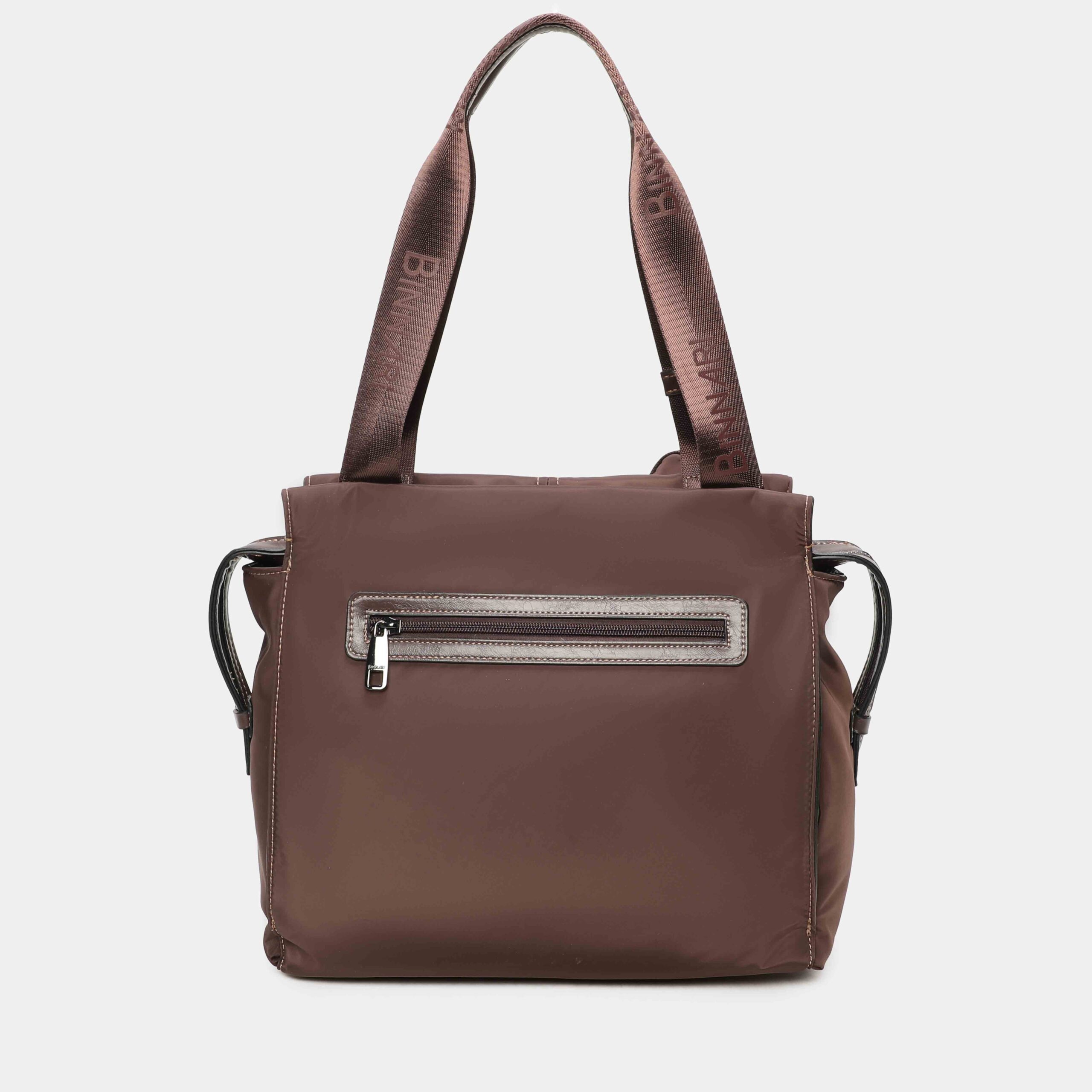 - Parte delantera:logo Binnari en cinta y bolsillo con cremallera