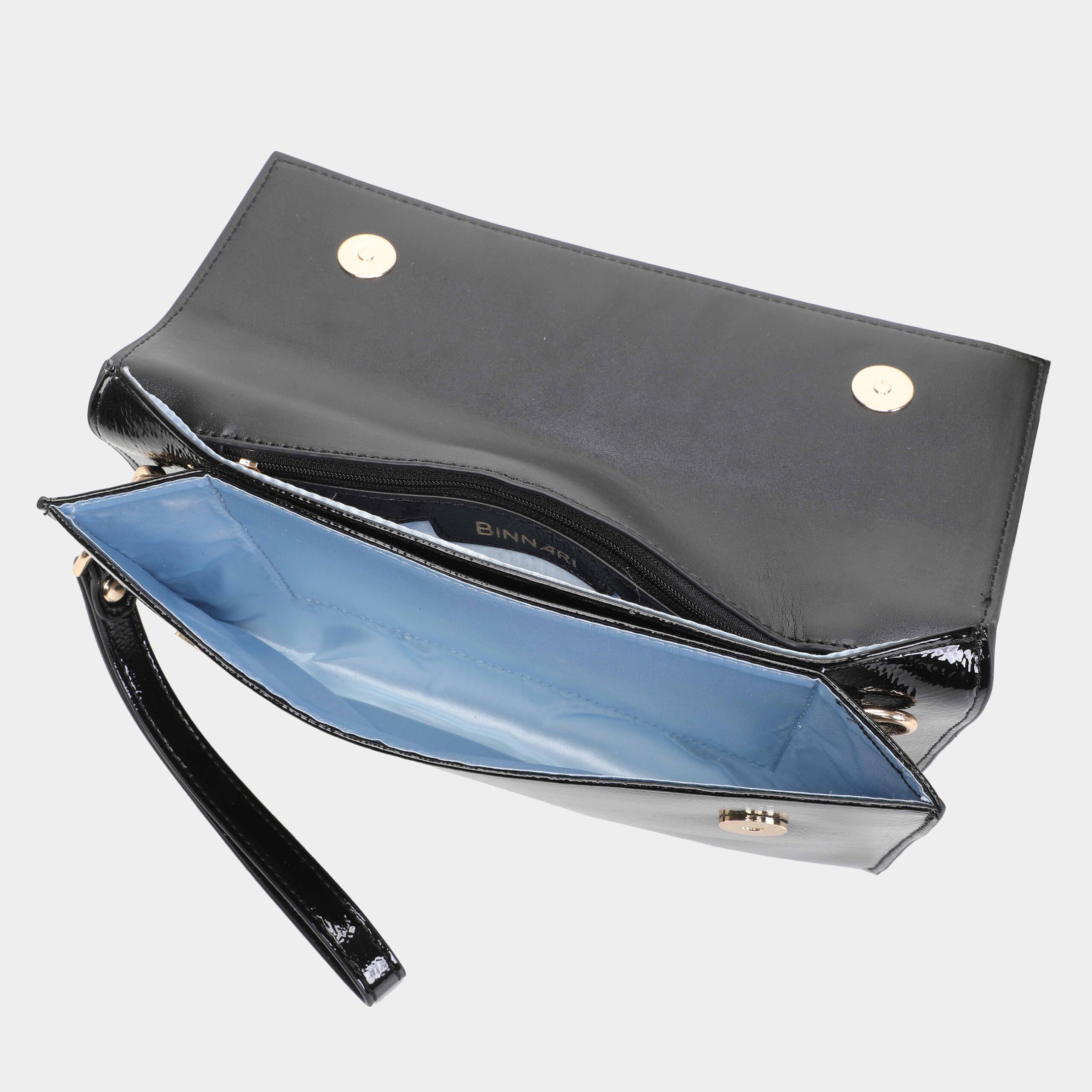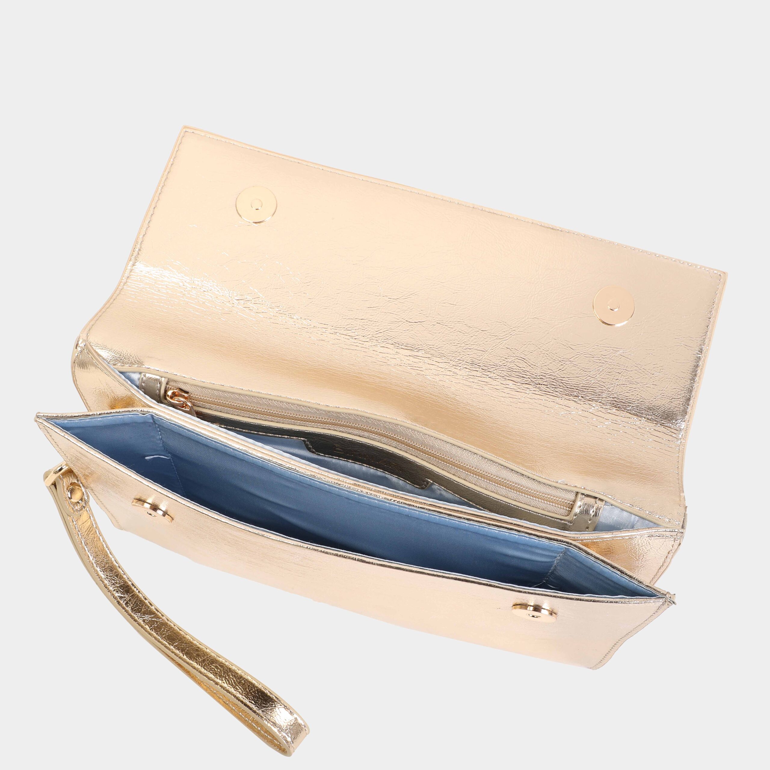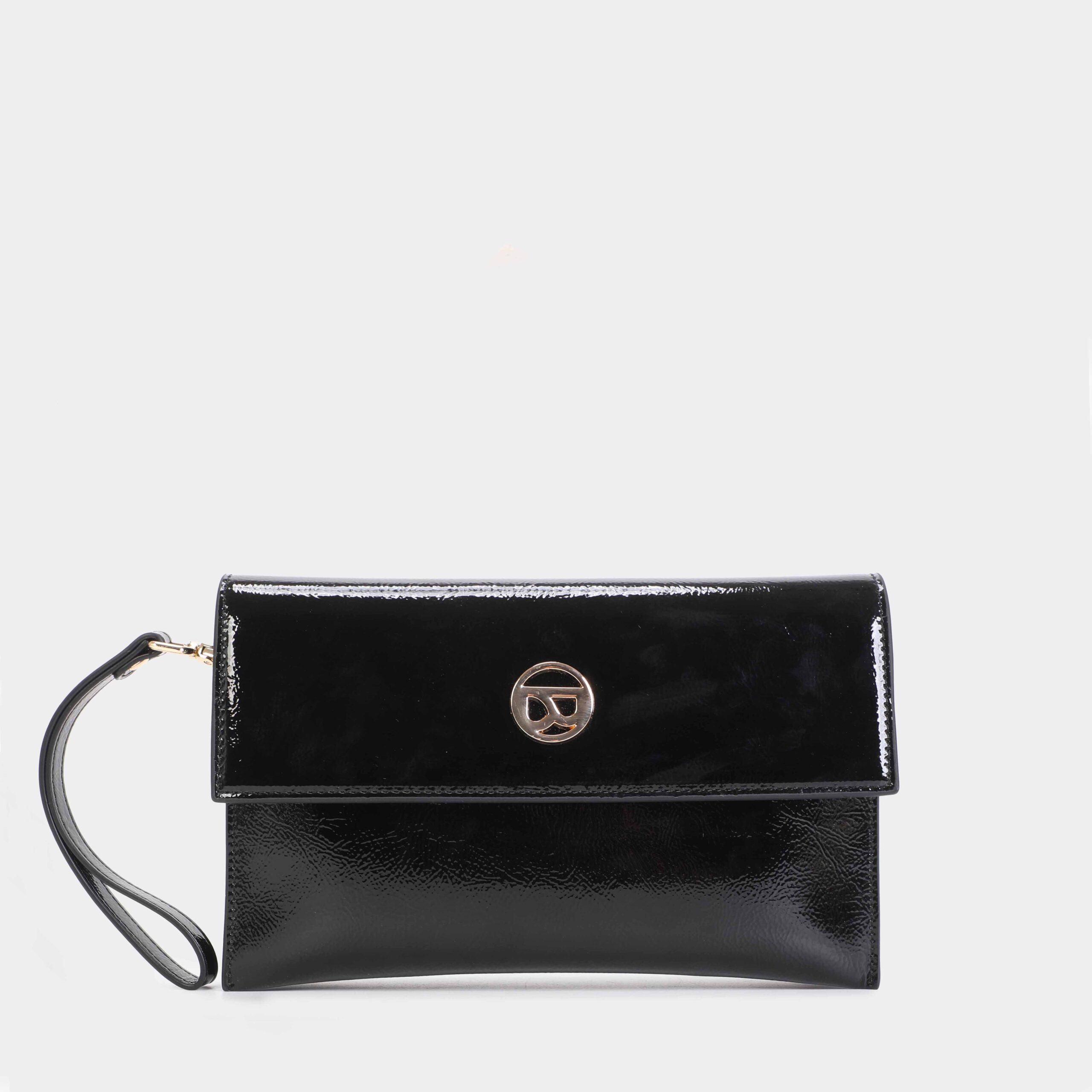 Cartera de mano Lisa disponible en dos materiales, charol y metalizado. Cuenta con una asa de mano en el lateral, así como una más larga en su interior para poder llevarla también como bandolera. Se accede a ella por medio de una solapa. En el interior encontramos diferentes bolsillo, uno de ellos con cremallera para una mayor seguridad. ¿Te gusta?