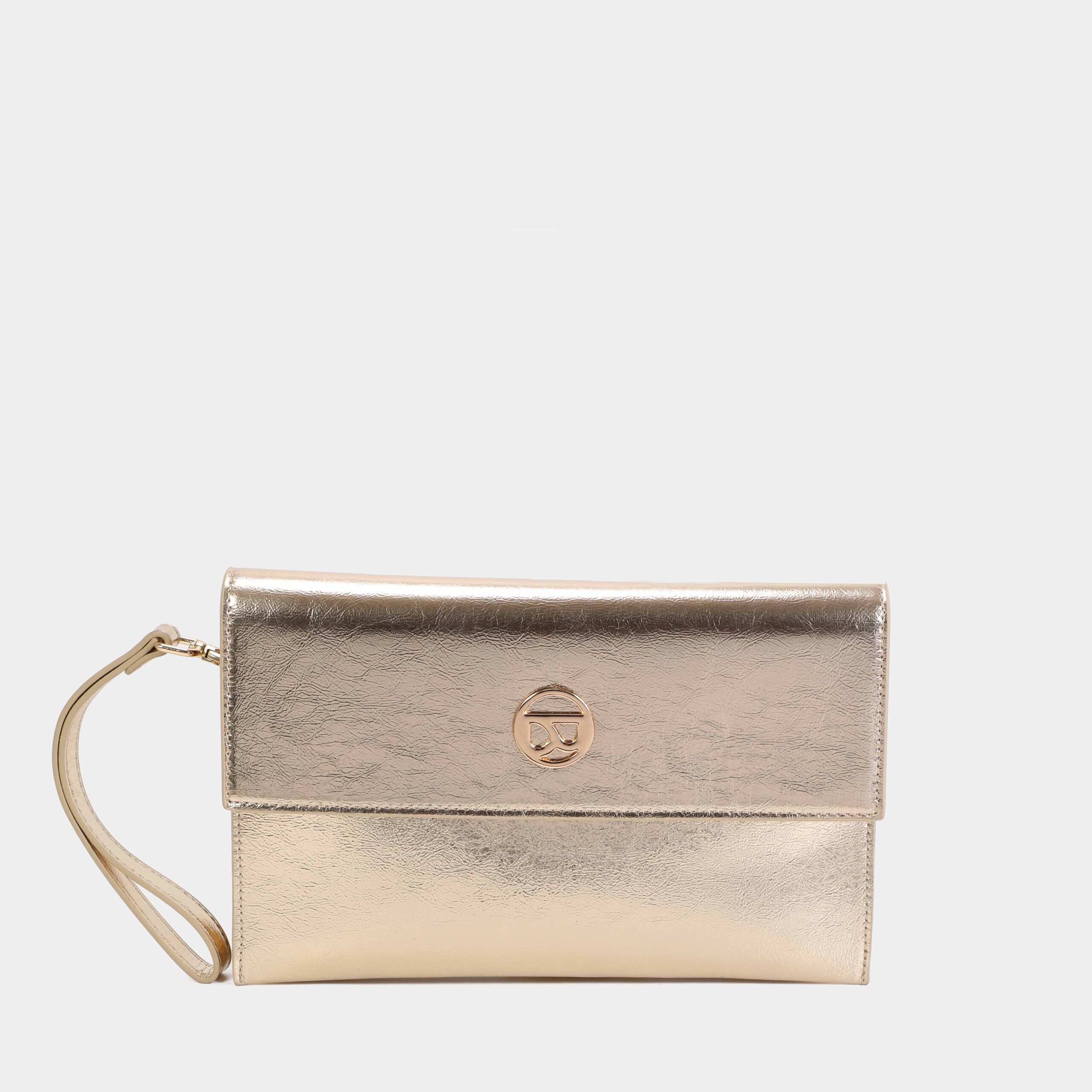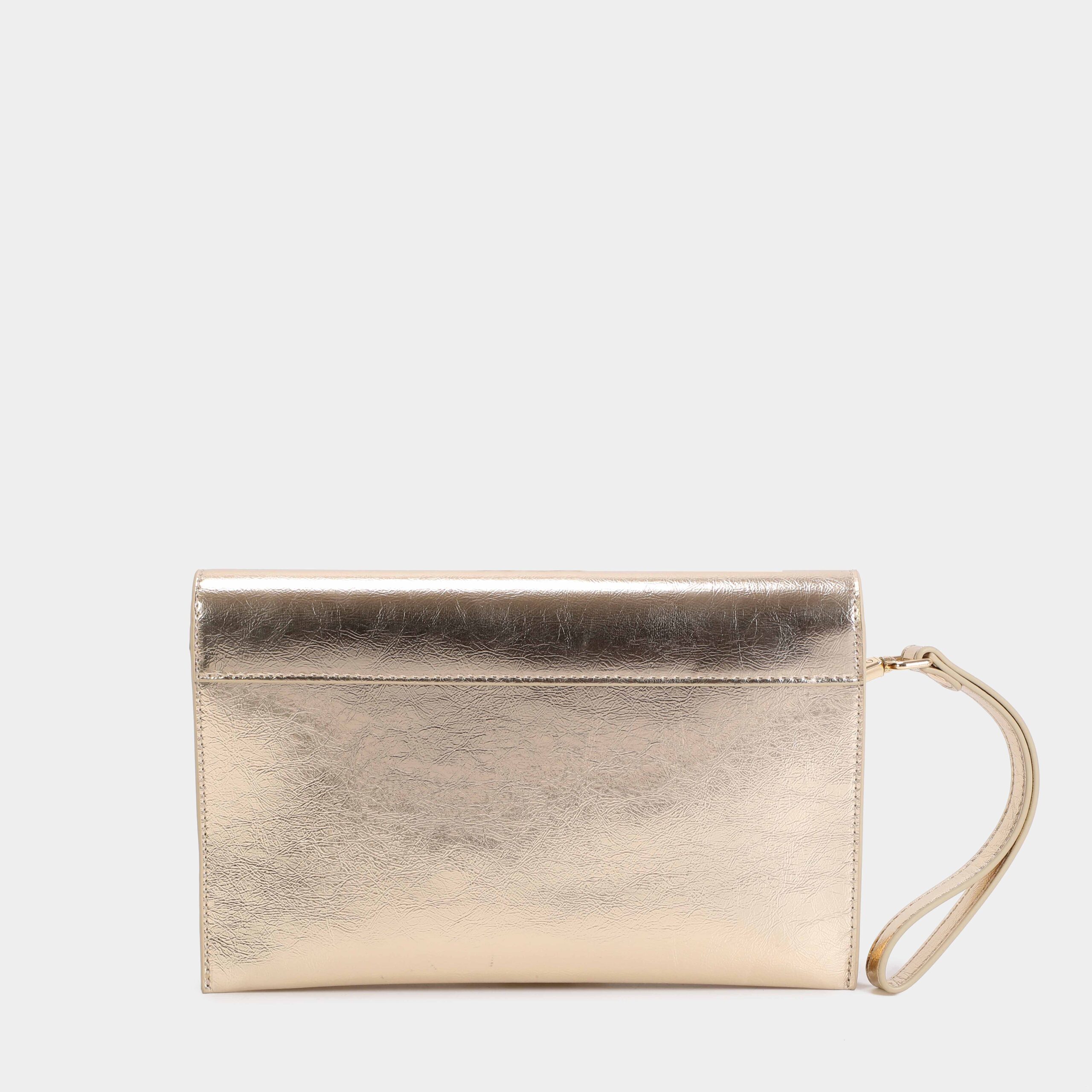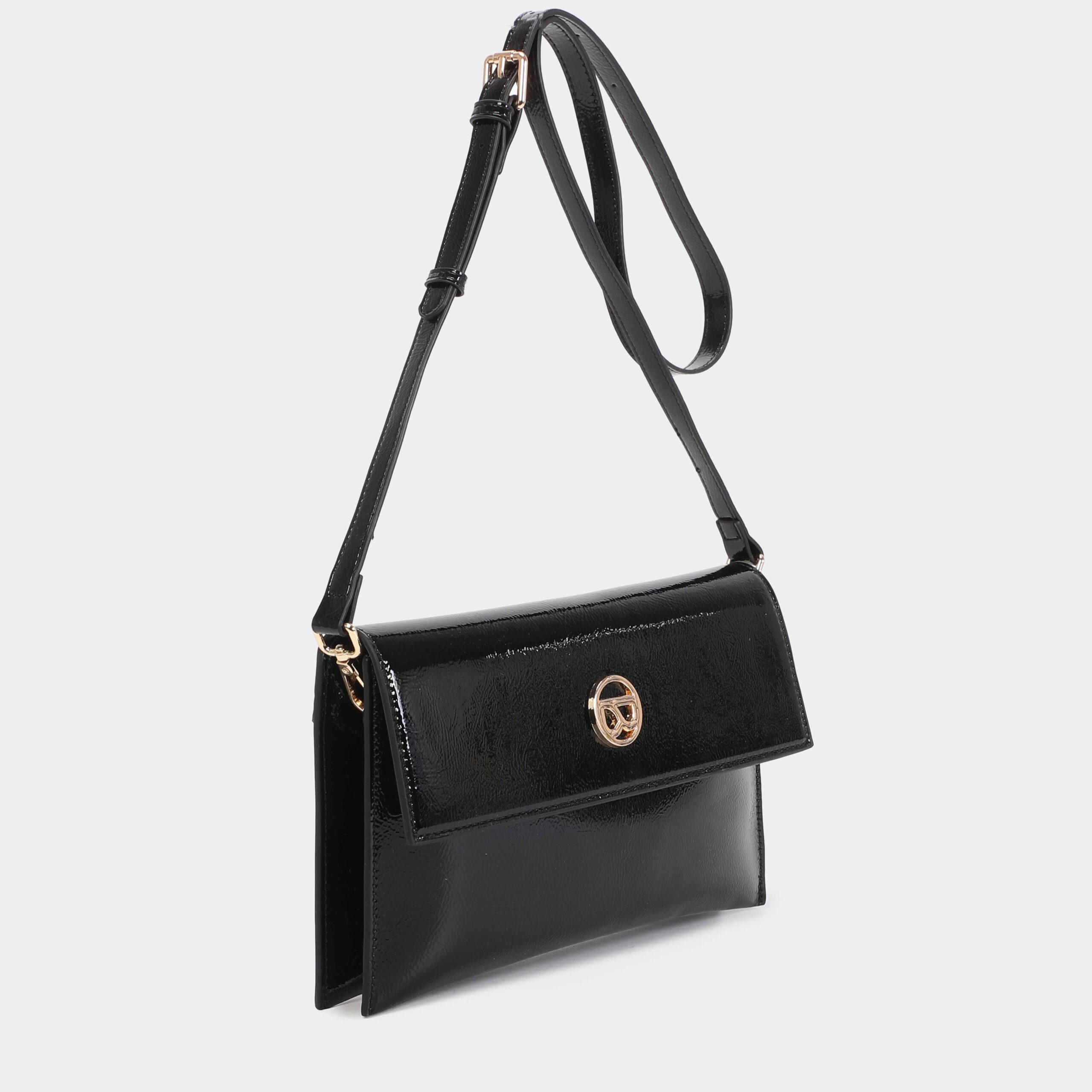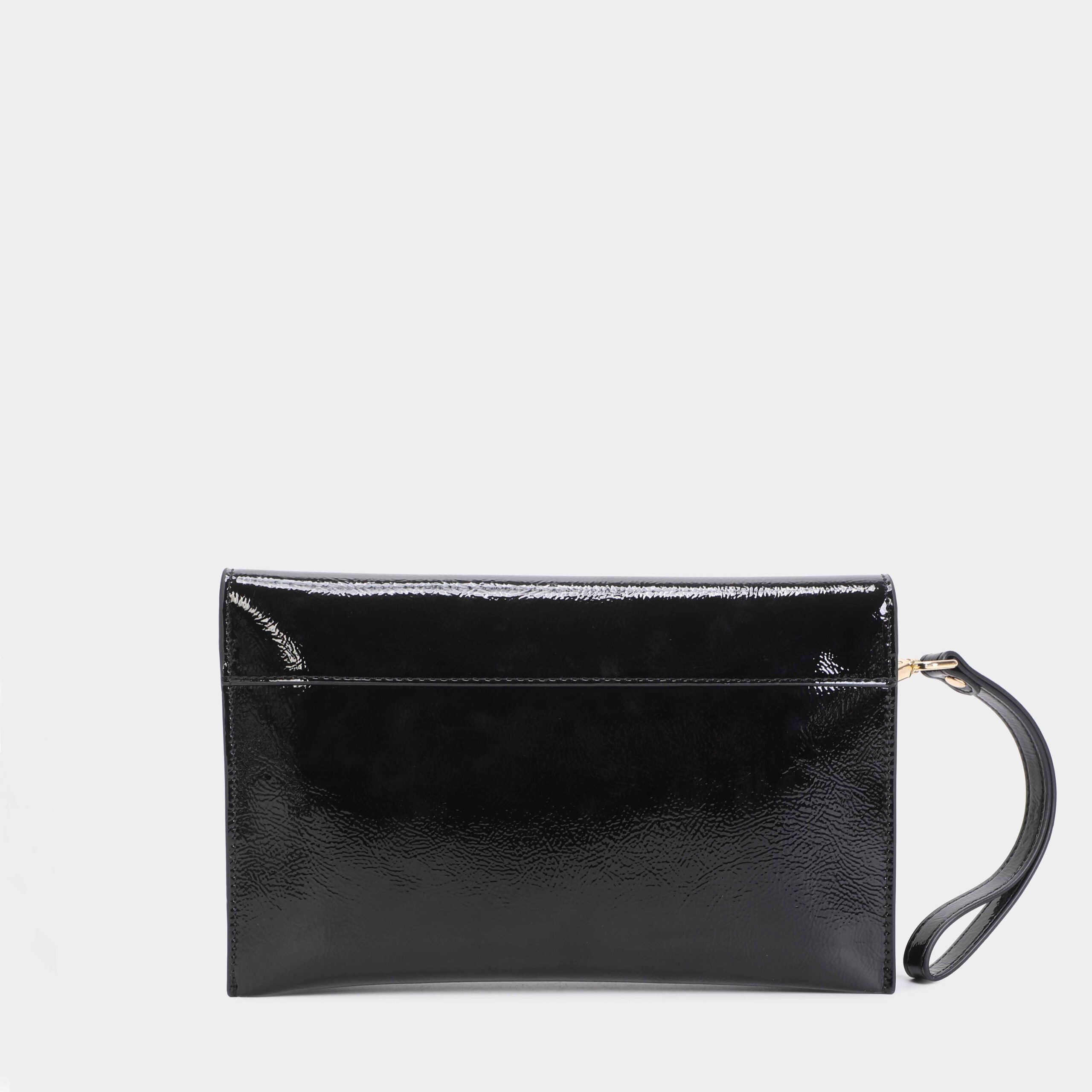 Cartera de mano Lisa disponible en dos materiales, charol y metalizado. Cuenta con una asa de mano en el lateral, así como una más larga en su interior para poder llevarla también como bandolera. Se accede a ella por medio de una solapa. En el interior encontramos diferentes bolsillo, uno de ellos con cremallera para una mayor seguridad. ¿Te gusta?