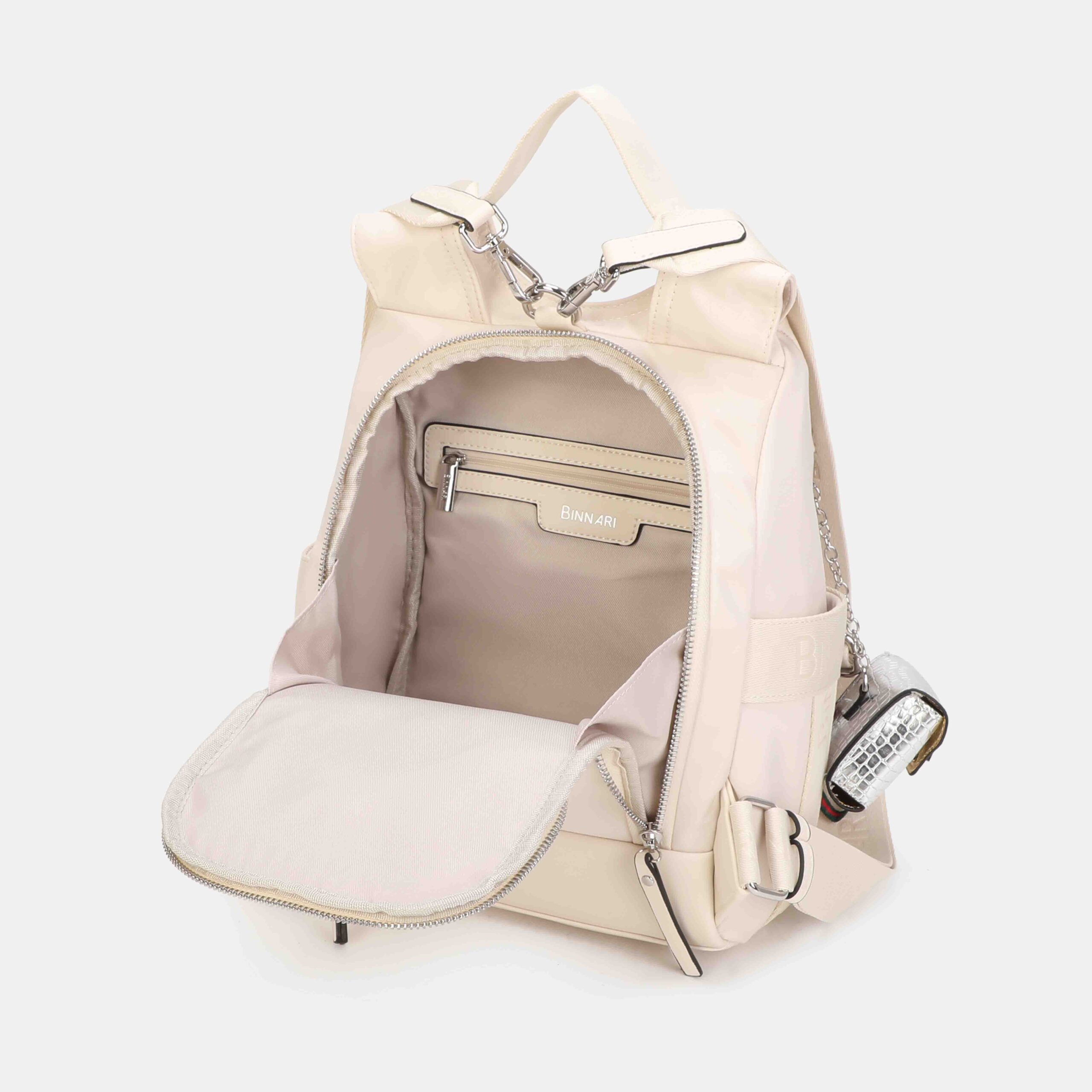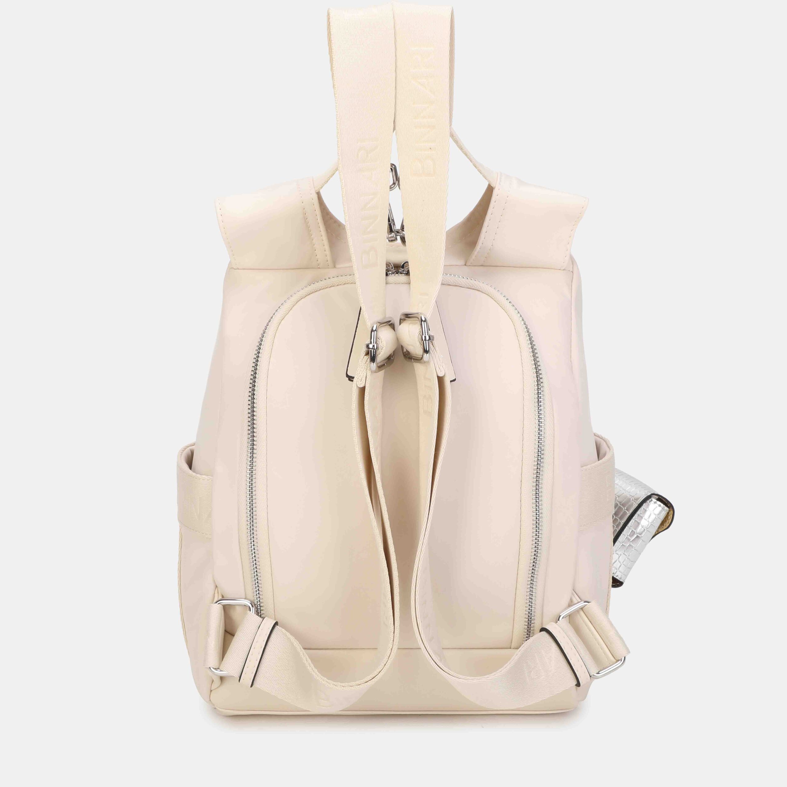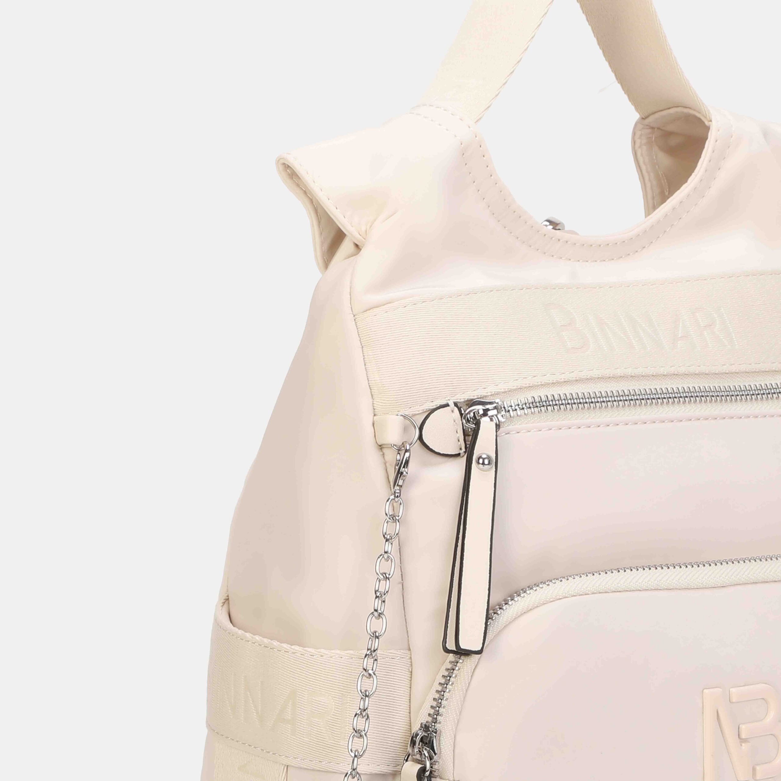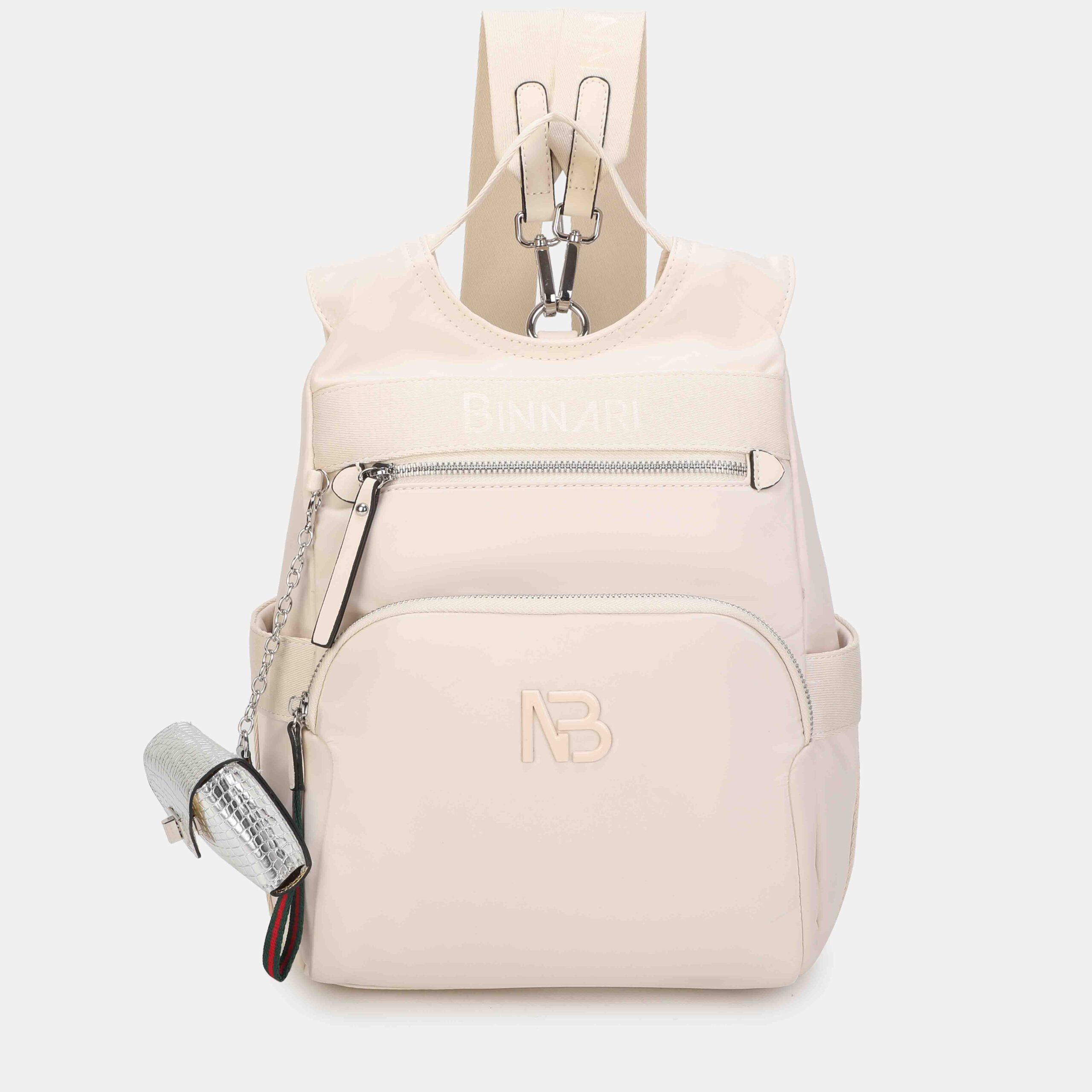 Esta mochila destaca por su diseño antirrobo, ya que la apertura principal está situada en la parte trasera, ofreciendo mayor seguridad en el día a día. Está confeccionada en nylon resistente con detalles en PU, e incorpora un bolsito pequeño extraíble con acabado efecto piel. El logo NB en tono a juego y los tirantes anchos regulables completan un modelo cómodo, moderno y muy práctico para cualquier ocasión.