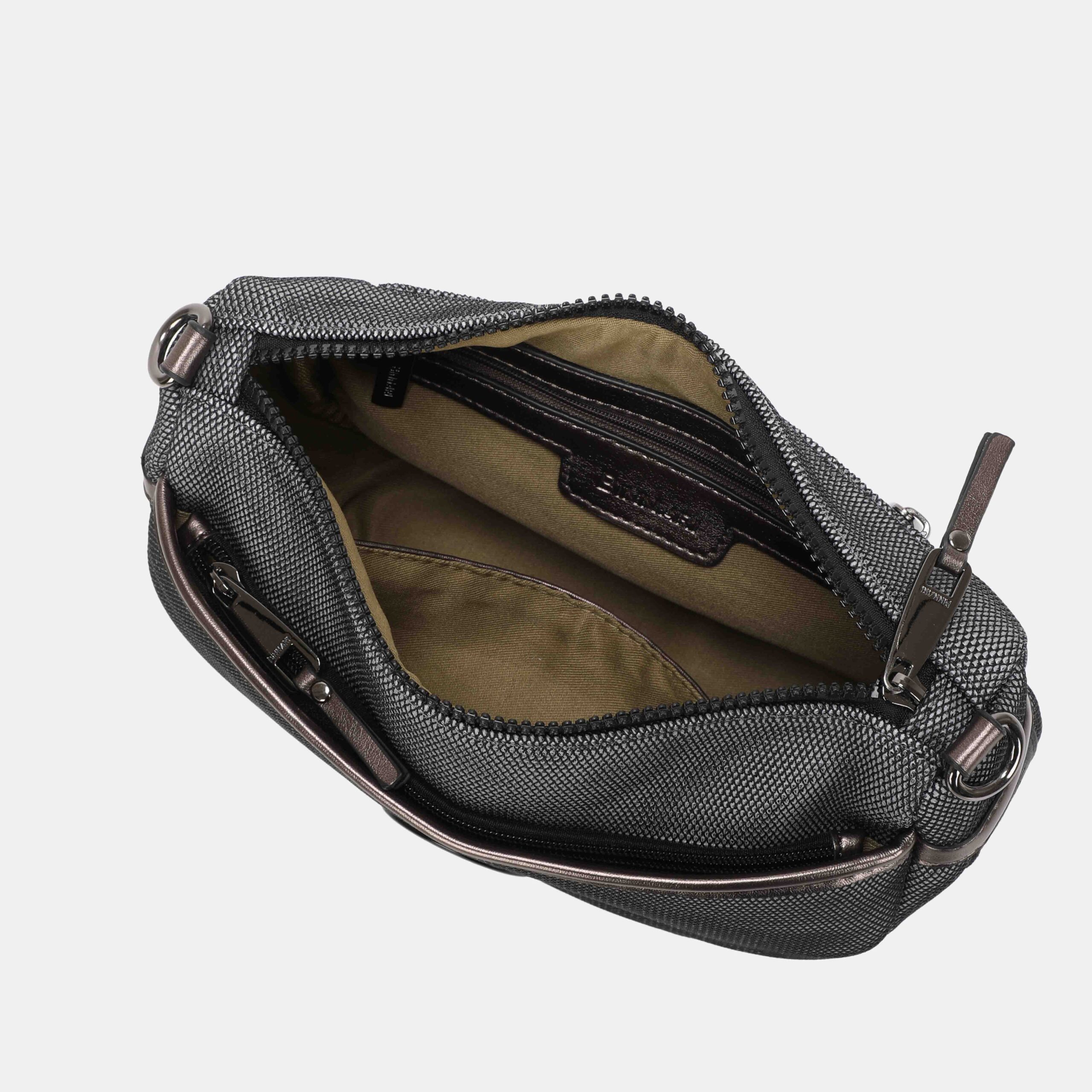 Bolsa Ebro hobo em tamanho médio. Está disponível em 4 cores. Tem 2 compartimentos. Além disso, a sua pega é ajustável e o acesso ao interior é feito através de um fecho deslizante superior. No interior, existem 3 bolsos, um dos quais com fecho de correr. Os detalhes metálicos são em cor de níquel.