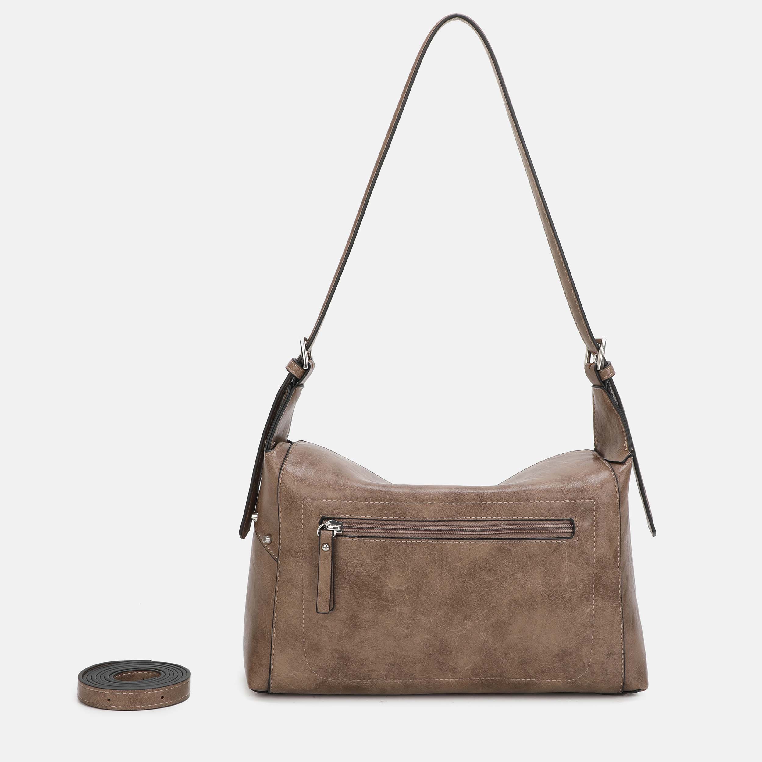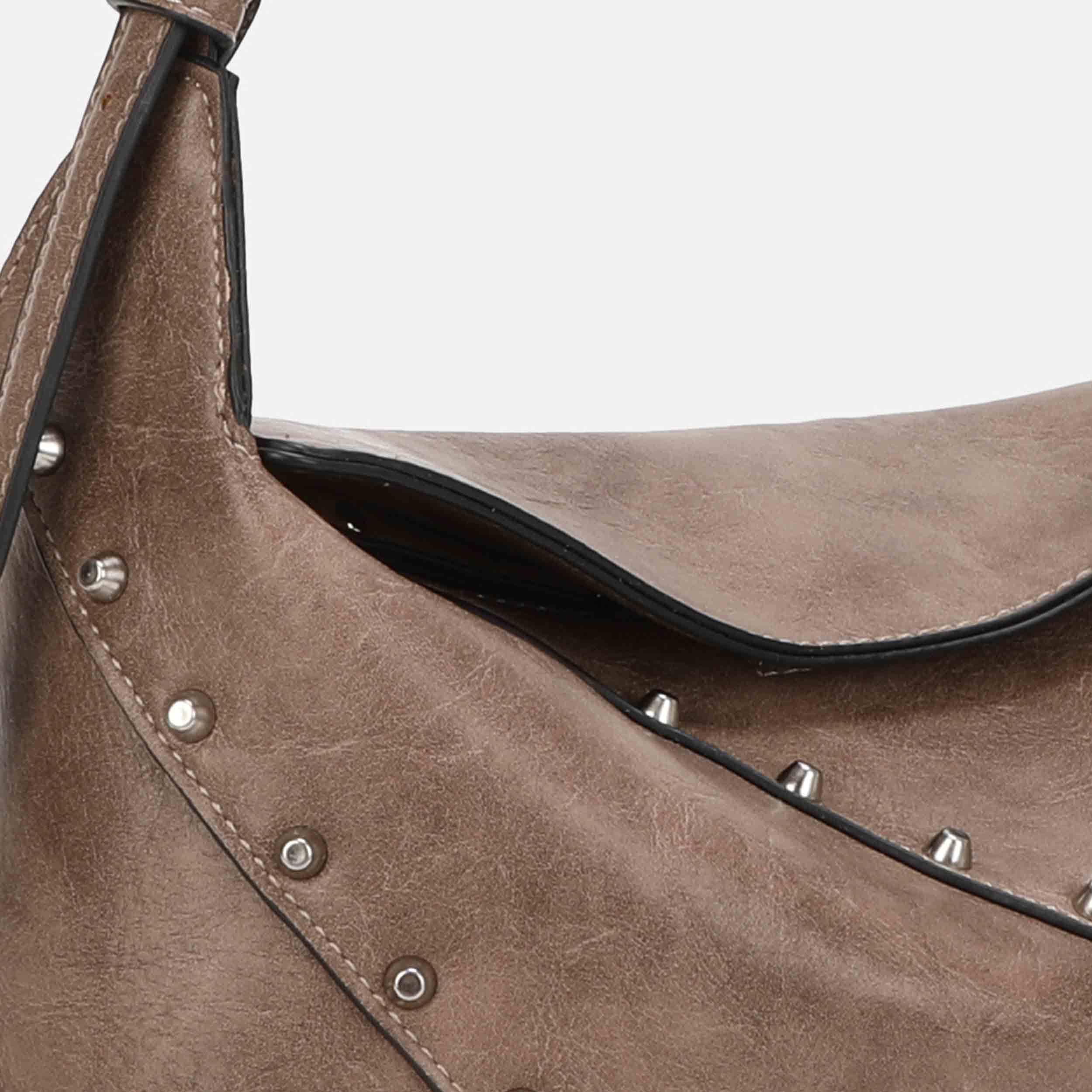 Bolsa Ebro hobo em tamanho médio. Está disponível em 4 cores. Tem 2 compartimentos. Além disso, a sua pega é ajustável e o acesso ao interior é feito através de um fecho deslizante superior. No interior, existem 3 bolsos, um dos quais com fecho de correr. Os detalhes metálicos são em cor de níquel.