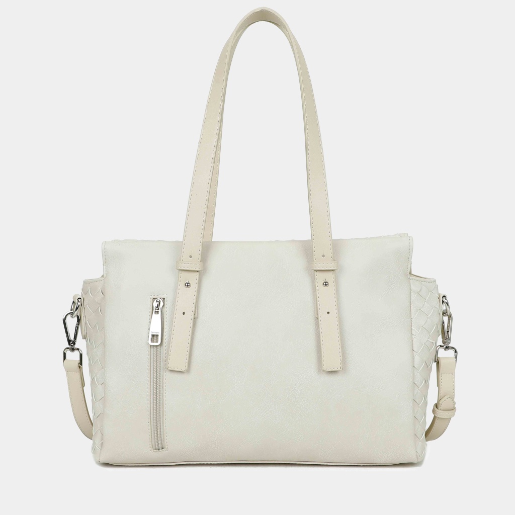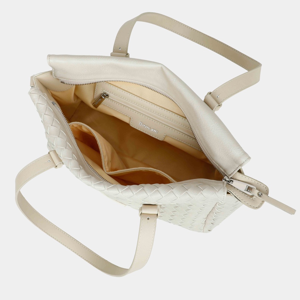 Esta estação, as bolsas entrançadas estão a chegar em força! A nossa bolsa de 2 alças Turia está disponível em 3 cores. Pode ser transportada ao ombro ou como tiracolo, graças alça no interior. Possui 1 bolso Binnari com fecho deslizante na parte de trás, bem como um bolso principal grande. Os detalhes metálicos são em cor de níquel.