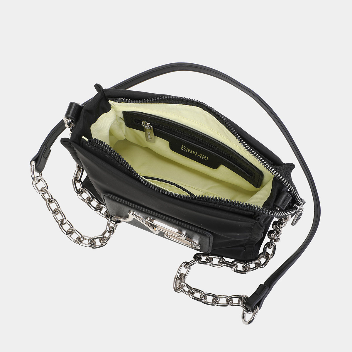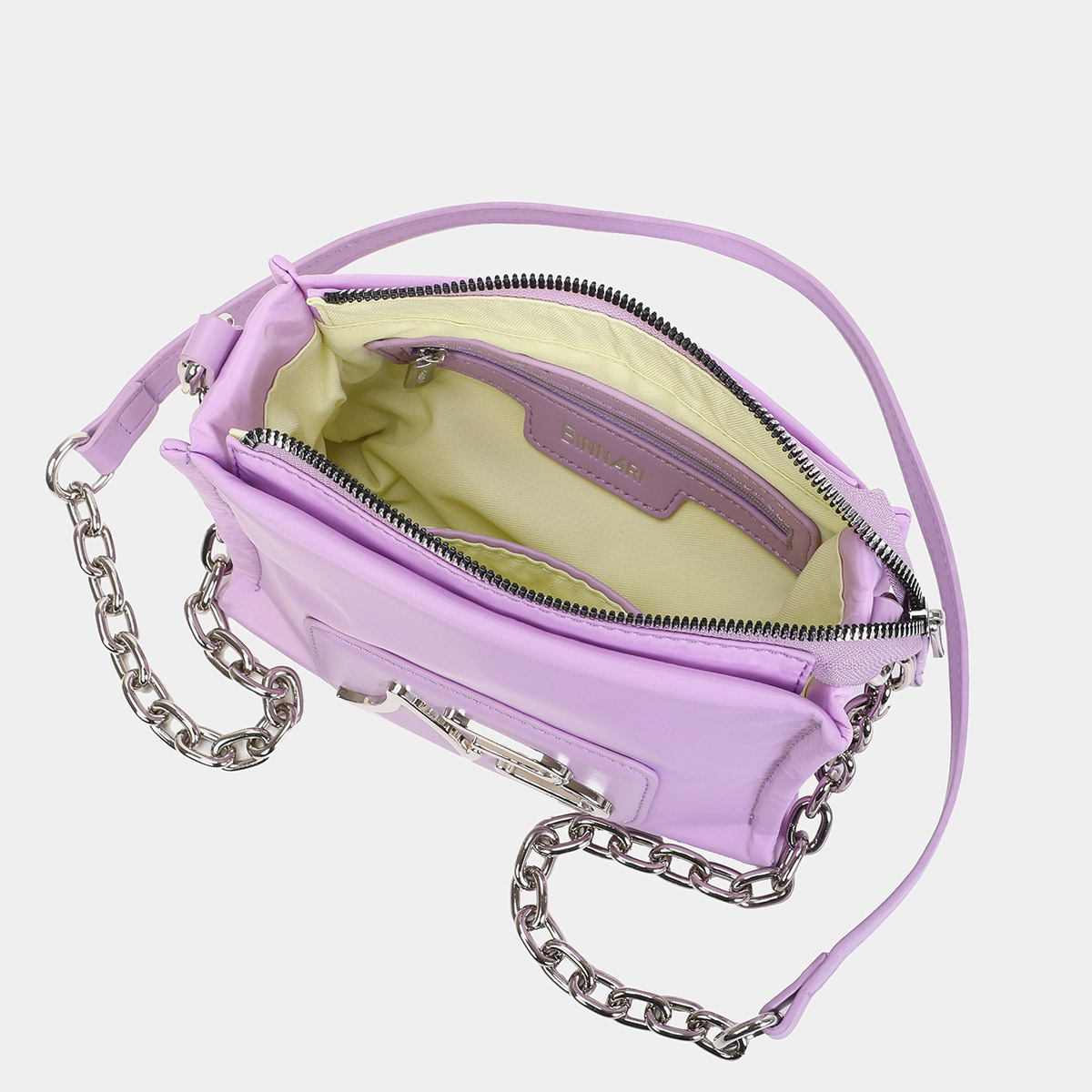 Bolsa tiracolo Nora feita de nylon reciclado e pu de alta qualidade. Disponível em 5 cores: preto, pedra, laranja, céu e lavanda. Na parte da frente, possui um etiqueta em pu com o logótipo NB Binnari. O acesso ao interior é feito através de um fecho deslizante superior. Existem vários bolsos. Os detalhes metálicos são em cor de níquel.